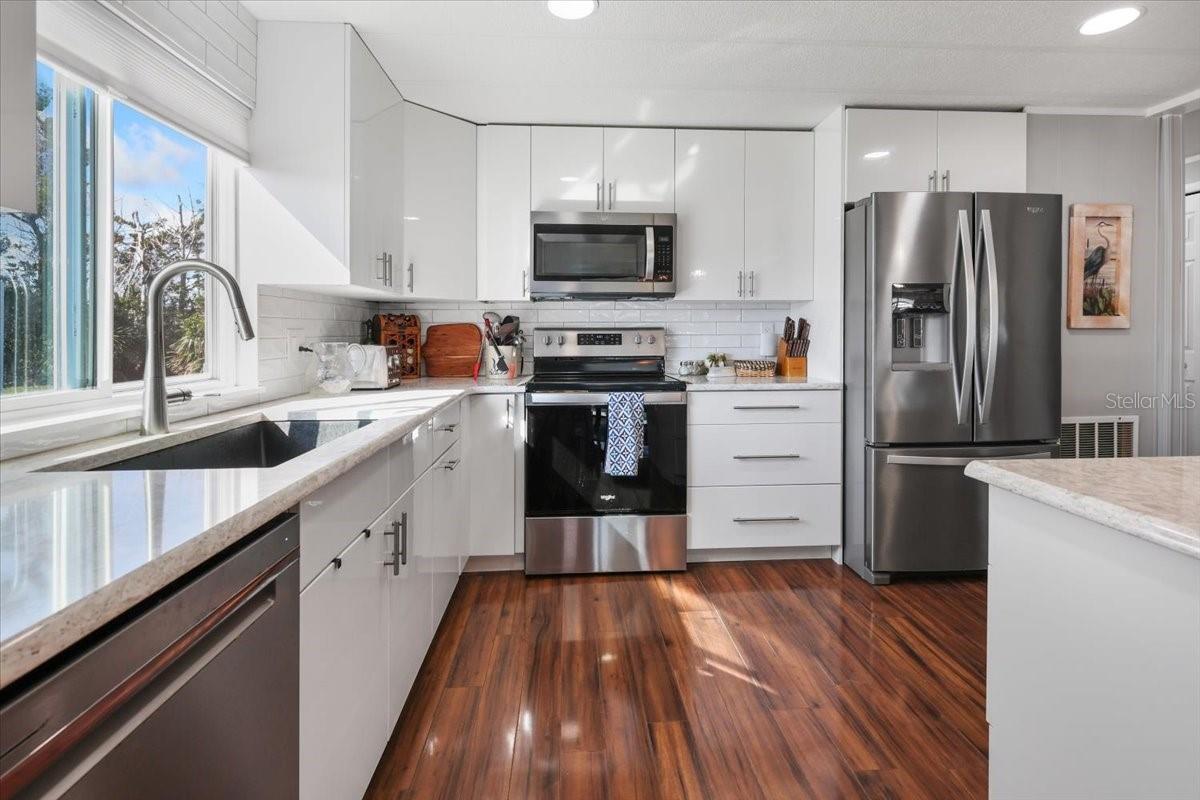 Welcome to Lemon Bay Isles, where your dream home awaits! This beautifully renovated 2-bedroom, 2-bathroom home has undergone so many updates that you truly have to see it to believe it. The modernized kitchen features sleek quartz countertops and high-end GE appliances, offering both style and functionality. Major updates include a fully renovated electric system, a brand new AC with new vents, and fresh paint inside and out for a bright, updated look. In 2021, a new Trex deck was added, creating the perfect outdoor space for relaxation or entertaining. More recently, in 2023-2024, the home received numerous additional updates, including new windows, new doors, new piers, new tie-downs, and a new roof membrane, ensuring long-term durability and peace of mind. You'll love the spacious living areas, as well as the inviting lanai off the master bedroom and a charming front lanai. The property is ideally located just a short distance from shopping, doctors, and restaurants, and is less than five miles from the stunning Gulf of Mexico. Take advantage of the community boat ramps for easy access to days of relaxation on the water. This age-qualified (55+) community has a low annual HOA fee, with an optional community fee that provides access to fantastic amenities such as the Club House, Tennis Courts, Shuffleboard, a Putting Green, and a sparkling Community Pool. Don’t miss out on this incredible opportunity to own a beautifully renovated home in one of the most sought-after communities in the area. Schedule a tour today!