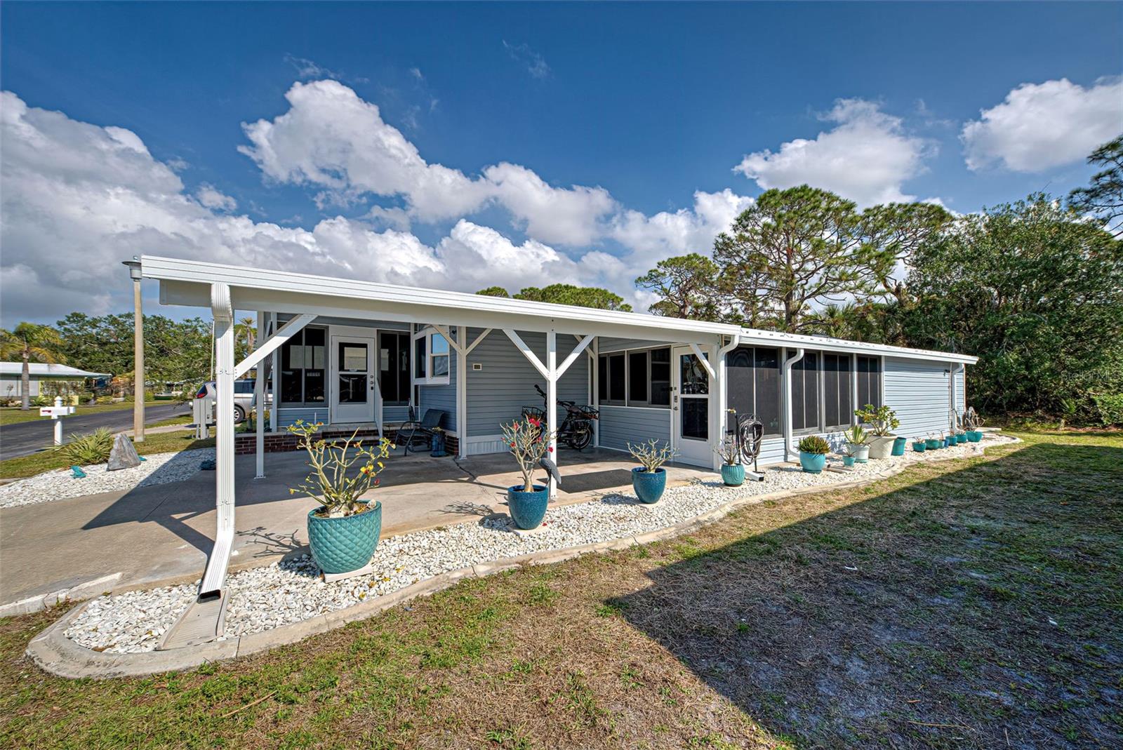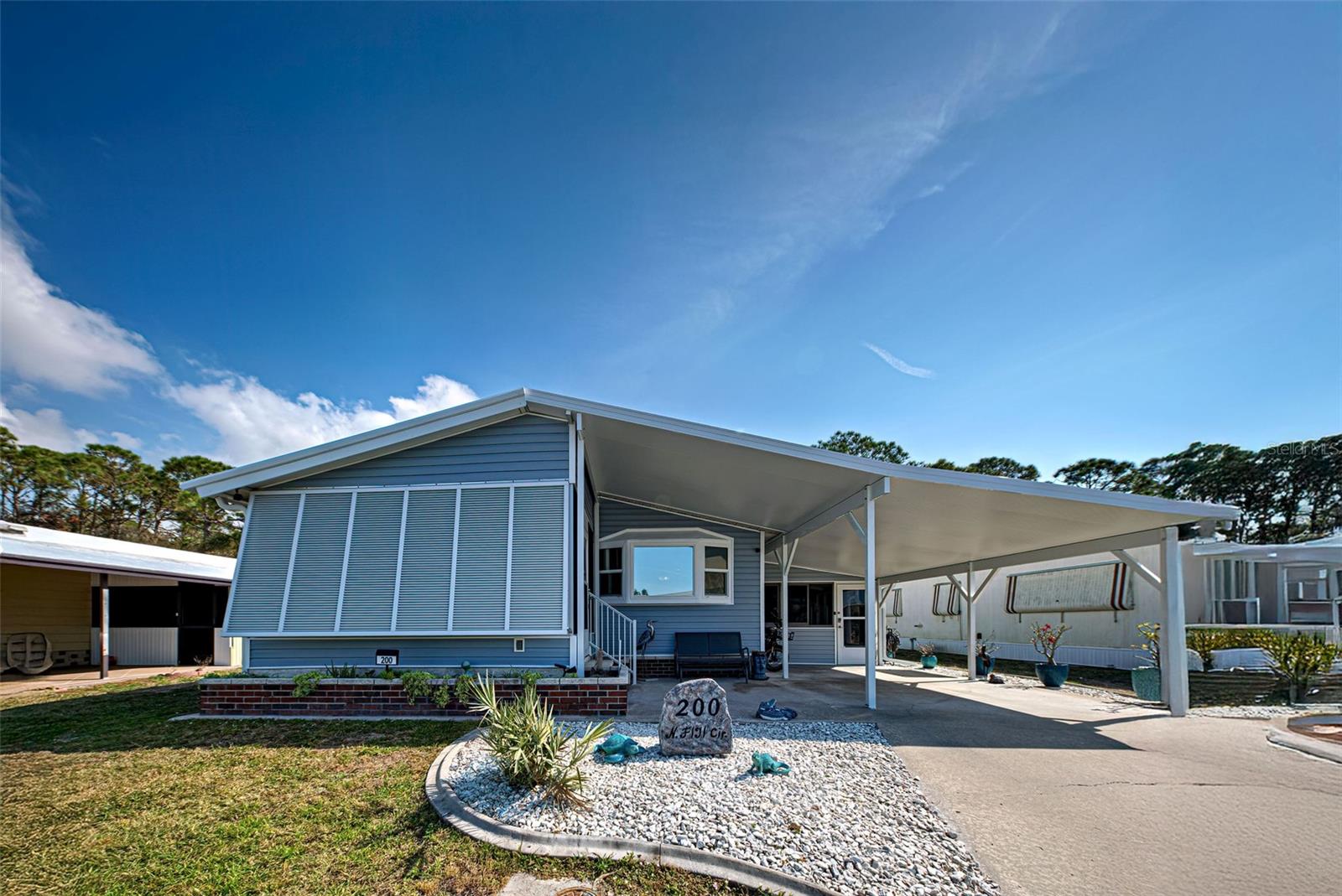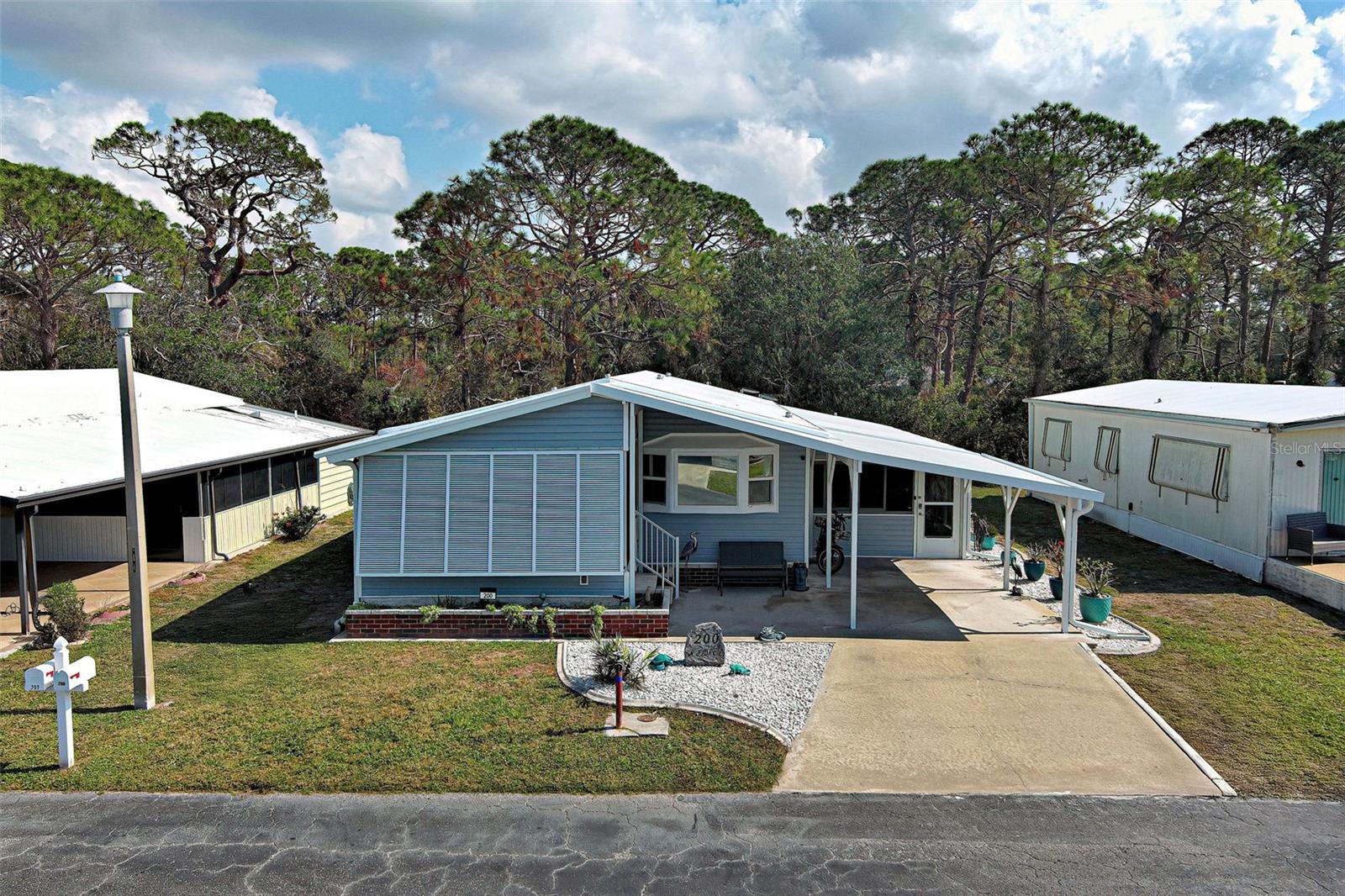 RESORT STYLE LIVING IN DESIRABLE POLYNESIAN VILLAGE - 55+ COMMUNITY TUCKED AWAY IN THE SARASOTA COUNTY PORTION OF ENGLEWOOD, FLORIDA. OFF THE BEATEN PATH - THIS UNIQUE LOCATION IS JUST ONE MILE FROM THE SCENIC BEACHES OF MANASOTA KEY. THIS IS REALLY A MUST SEE!! The upgrades here are premium and it feels like home the second you cross the threshold. The full-size gourmet kitchen has it all! Featuring beautiful quartz counter tops - all stainless appliances, refrigerator, range, dishwasher, built in microwave - ALL under 2 years old - Island / Breakfast Bar - Custom back splash, Tons of cabinets and the countertop goes on forever. Adjoining dinette area has an entire wall of custom built in cabinets that run floor to ceiling with pull out drawers. The living room is super cozy and leads out to the FLORIDA ROOM - ALL-WEATHER- BRIGHT AND CHEERY - a great place to just hang out all year round. Both bedrooms are good size with ample closets. Primary bedroom with ensuite and dual closets - room for a king bed. The guest bedroom has a built-in closet and a walk-in closet. Easily a multi-use room. The guest bathroom has been updated with sleek tile and all new. Let's step back outside to your second all-weather room measuring 18 x 12. FIVE FOOT HORIZONTAL SLIDING WINDOWS and TILE FLOORING gives a finished look to this room you just don't expect to see. Attached to this and all under one roof is a workshop and laundry combination room that is 16 x 12 and provides mixed use. Washer and dryer are also less that 2 years old - utility sink and a hidden private outdoor shower complete this unique space that you will greatly appreciate. GENERATOR READY. To complete your tour - step out to the back yard with a private wooded view. Your neighbors here consist of Florida wildlife and the sweet sound of the many songbirds. The 12 x 22 concrete pad will allow you to set up your own BBQ space and room for Al Fresco dining. Other important updates include New Roof in 2025 - New Carport in 2025 - New siding in 2025 - New AC in 2024 - Replacement of insulation, vapor barrier and skirting in 2024. There are many more amazing features in this home. THE SAVINGS WITH ALL OF THESE UPDATES AND IMPROVEMENTS MAKE THIS AN INCREDIBLE VALUE. DON'T OVERLOOK THIS ONE! COME CHECK OUT THIS FABULOUS HOME - SCHEDULE A PRIVATE SHOWING TODAY!