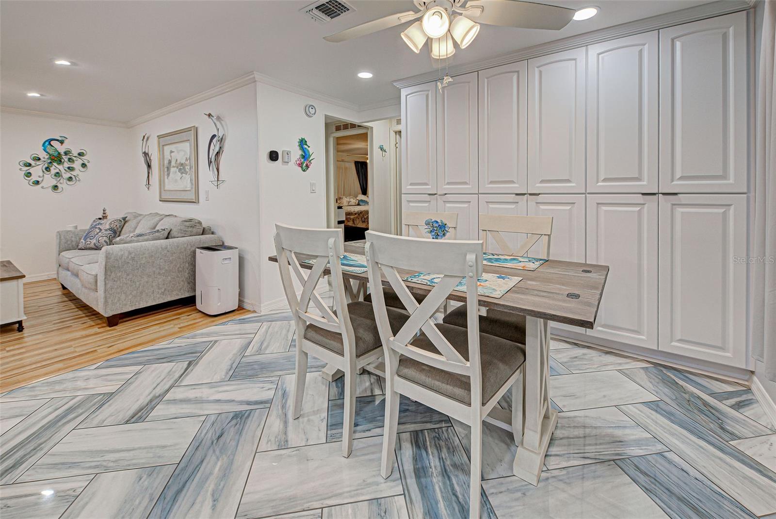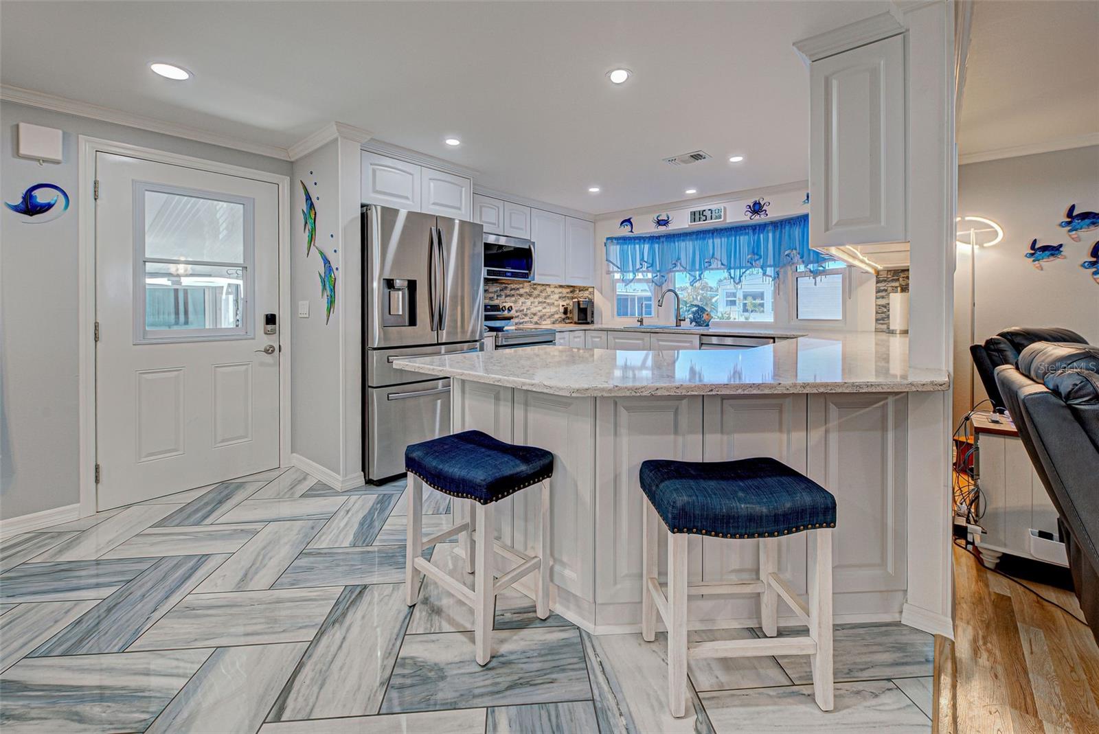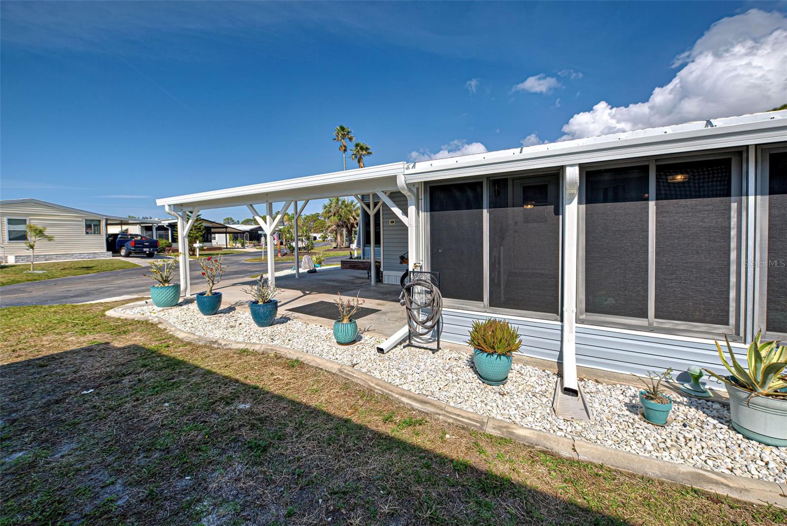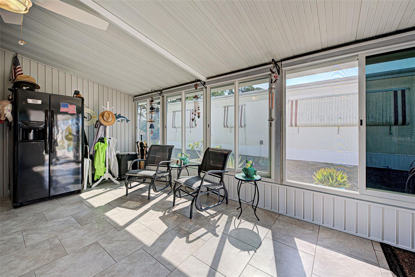 RESORT STYLE LIVING IN DESIRABLE POLYNESIAN VILLAGE - 55+ COMMUNITY TUCKED AWAY IN THE SARASOTA COUNTY PORTION OF ENGLEWOOD, FLORIDA. OFF THE BEATEN PATH - THIS UNIQUE LOCATION IS JUST ONE MILE FROM THE SCENIC BEACHES OF MANASOTA KEY. THIS IS REALLY A MUST SEE!! The upgrades here are premium and it feels like home the second you cross the threshold. The full-size gourmet kitchen has it all! Featuring beautiful quartz counter tops - all stainless appliances, refrigerator, range, dishwasher, built in microwave - ALL under 2 years old - Island / Breakfast Bar - Custom back splash, Tons of cabinets and the countertop goes on forever. Adjoining dinette area has an entire wall of custom built in cabinets that run floor to ceiling with pull out drawers. The living room is super cozy and leads out to the FLORIDA ROOM - ALL-WEATHER- BRIGHT AND CHEERY - a great place to just hang out all year round. Both bedrooms are good size with ample closets. Primary bedroom with ensuite and dual closets - room for a king bed. The guest bedroom has a built-in closet and a walk-in closet. Easily a multi-use room. The guest bathroom has been updated with sleek tile and all new. Let's step back outside to your second all-weather room measuring 18 x 12. FIVE FOOT HORIZONTAL SLIDING WINDOWS and TILE FLOORING gives a finished look to this room you just don't expect to see. Attached to this and all under one roof is a workshop and laundry combination room that is 16 x 12 and provides mixed use. Washer and dryer are also less that 2 years old - utility sink and a hidden private outdoor shower complete this unique space that you will greatly appreciate. GENERATOR READY. To complete your tour - step out to the back yard with a private wooded view. Your neighbors here consist of Florida wildlife and the sweet sound of the many songbirds. The 12 x 22 concrete pad will allow you to set up your own BBQ space and room for Al Fresco dining. Other important updates include New Roof in 2025 - New Carport in 2025 - New siding in 2025 - New AC in 2024 - Replacement of insulation, vapor barrier and skirting in 2024. There are many more amazing features in this home. THE SAVINGS WITH ALL OF THESE UPDATES AND IMPROVEMENTS MAKE THIS AN INCREDIBLE VALUE. DON'T OVERLOOK THIS ONE! COME CHECK OUT THIS FABULOUS HOME - SCHEDULE A PRIVATE SHOWING TODAY!