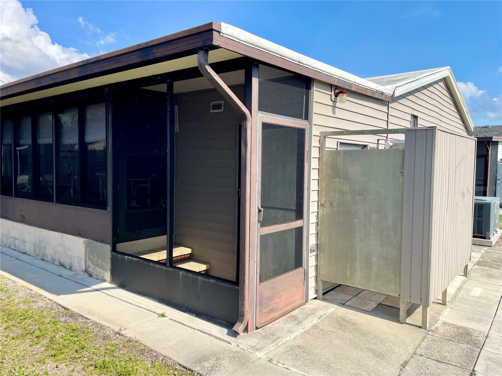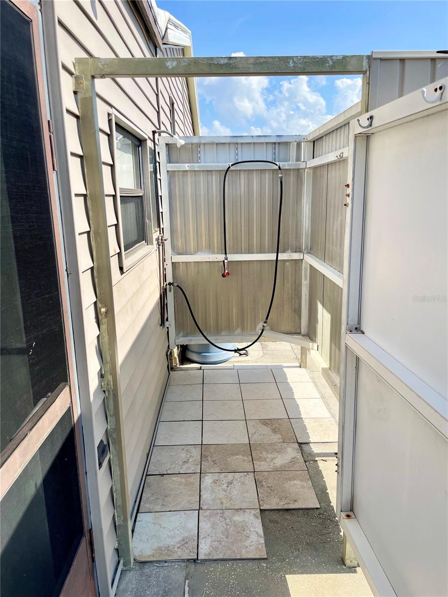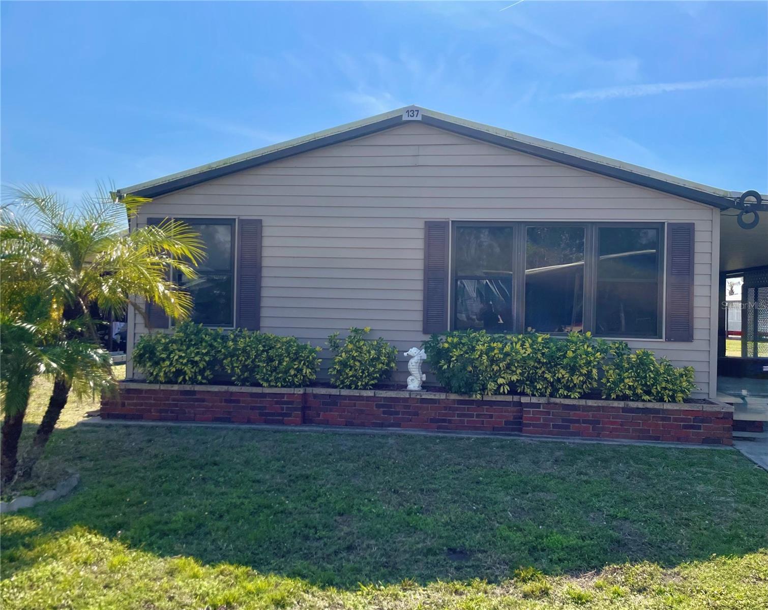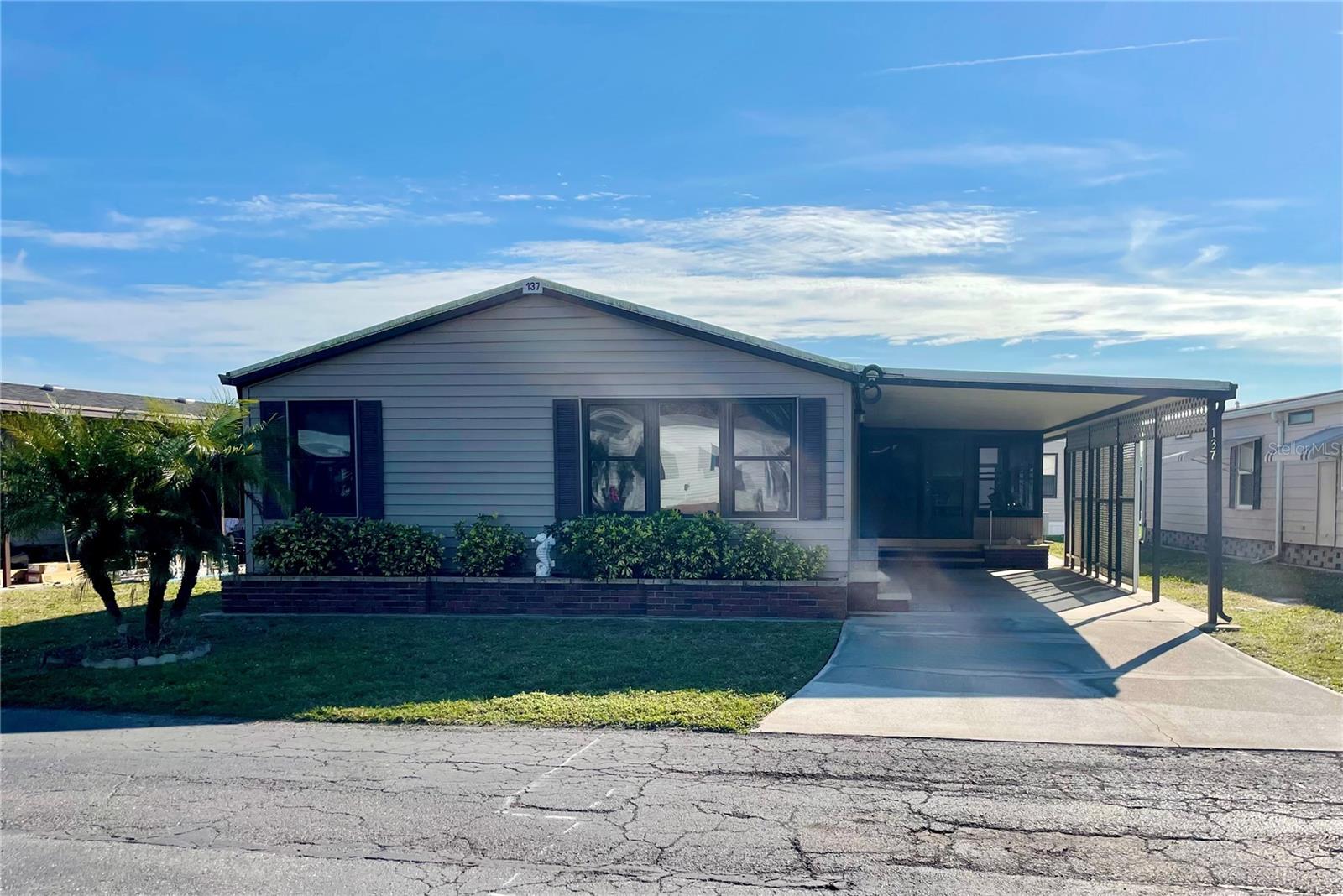 Welcome to Polynesian Village, a highly sought-after 55+ community just minutes from the Gulf! This spacious 2 bed, 2 bath double-wide is being sold turnkey furnished, making it easy to move right in and start enjoying the Florida lifestyle. The home features a large open-concept living room, kitchen, and dining area, along with a front sitting room that offers extra flexibility for a cozy lounge, reading nook, or office. Vaulted ceilings enhance the bright and airy feel, while the large Florida room provides additional space to relax and unwind. One of the only units in Polynesian Village with a split-bedroom layout providing extra privacy with bedrooms on opposite sides of the home. Enjoy the convenience of an outdoor shower—perfect after a beach day! Plus, the AC is only 4 years old, giving you peace of mind. This charming coastal retreat is ready for you to call home. Schedule your showing today!