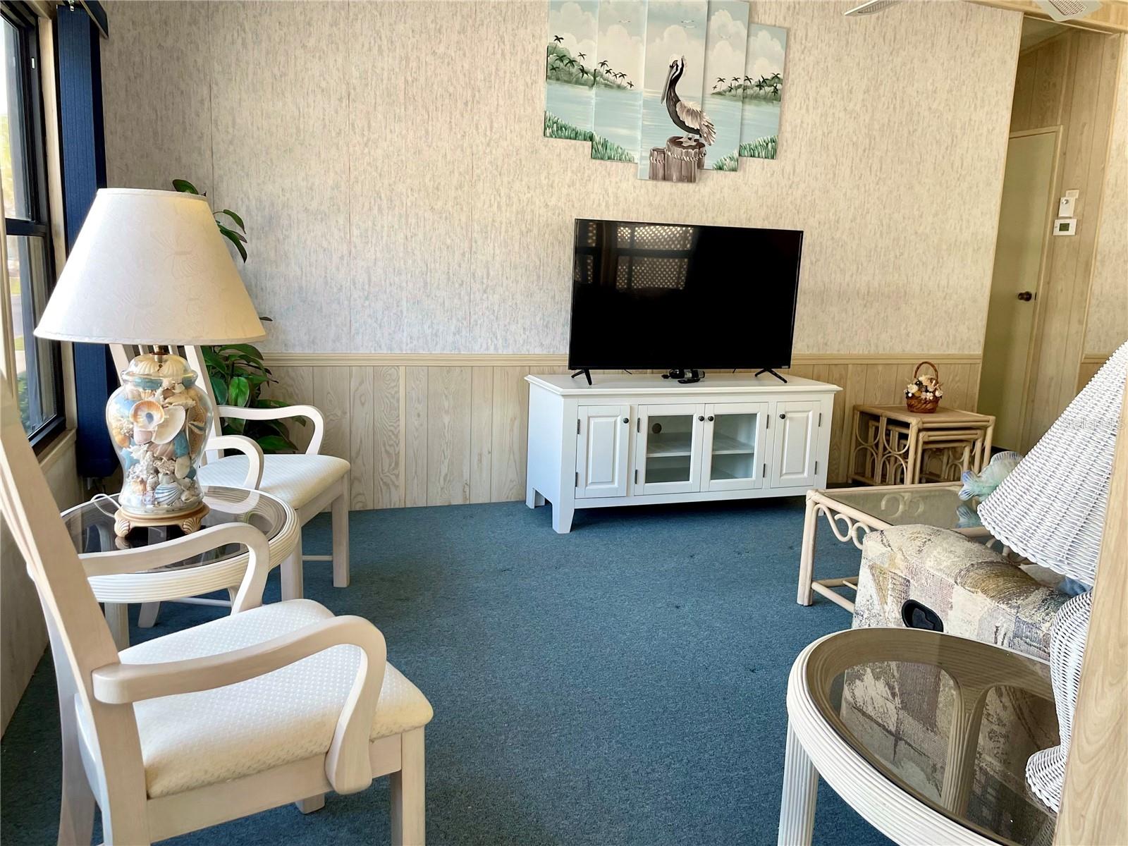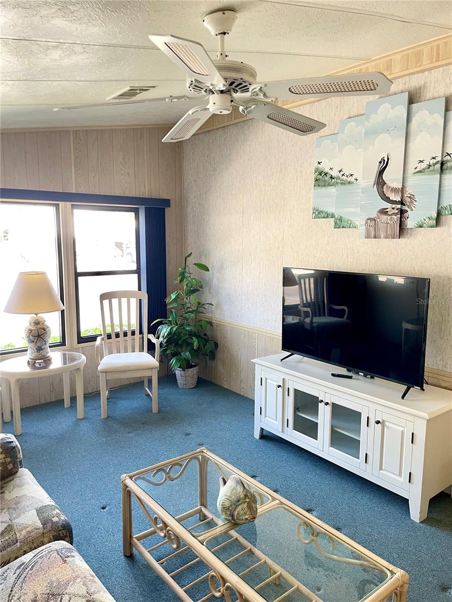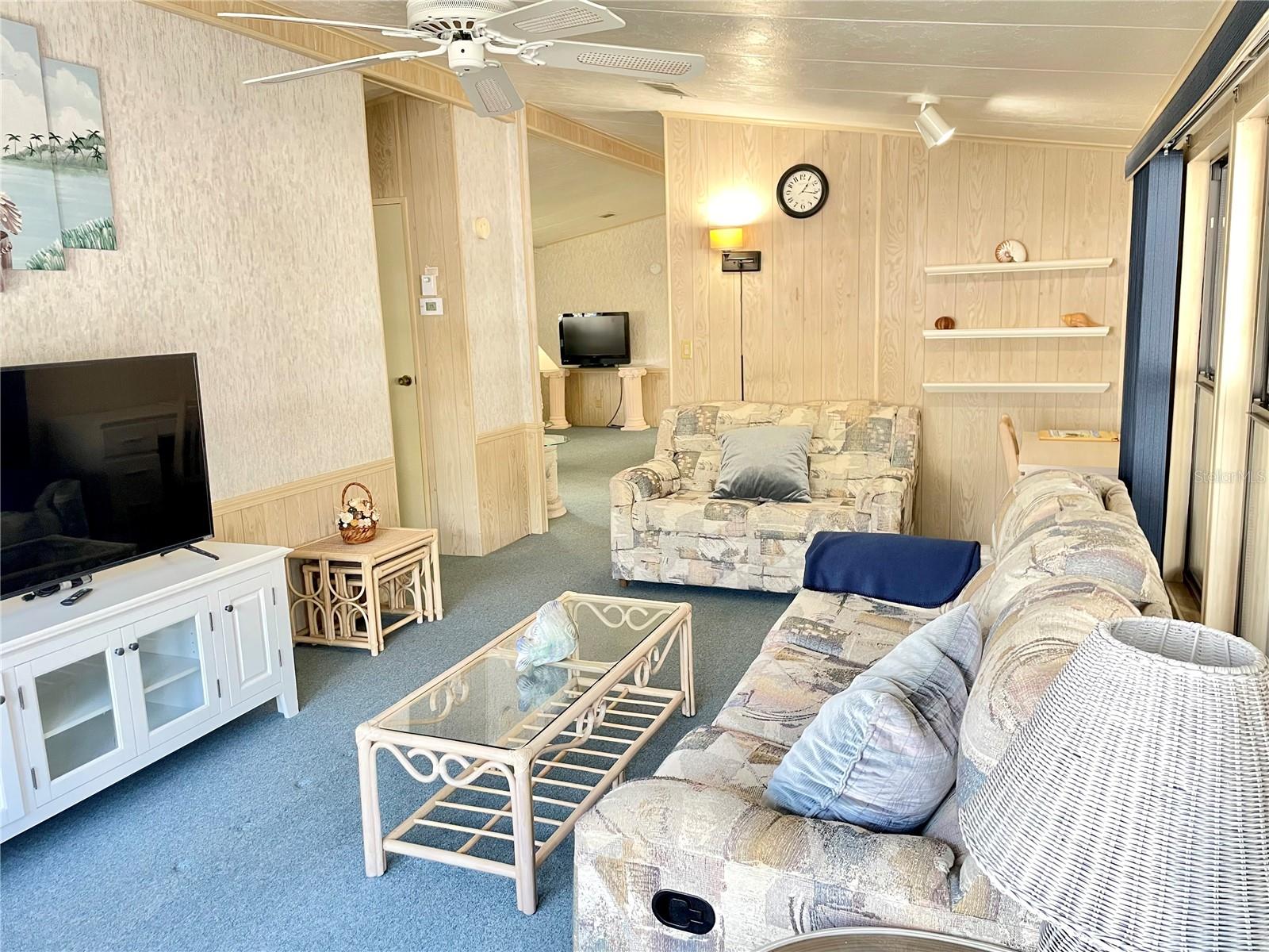 Welcome to Polynesian Village, a highly sought-after 55+ community just minutes from the Gulf! This spacious 2 bed, 2 bath double-wide is being sold turnkey furnished, making it easy to move right in and start enjoying the Florida lifestyle. The home features a large open-concept living room, kitchen, and dining area, along with a front sitting room that offers extra flexibility for a cozy lounge, reading nook, or office. Vaulted ceilings enhance the bright and airy feel, while the large Florida room provides additional space to relax and unwind. One of the only units in Polynesian Village with a split-bedroom layout providing extra privacy with bedrooms on opposite sides of the home. Enjoy the convenience of an outdoor shower—perfect after a beach day! Plus, the AC is only 4 years old, giving you peace of mind. This charming coastal retreat is ready for you to call home. Schedule your showing today!