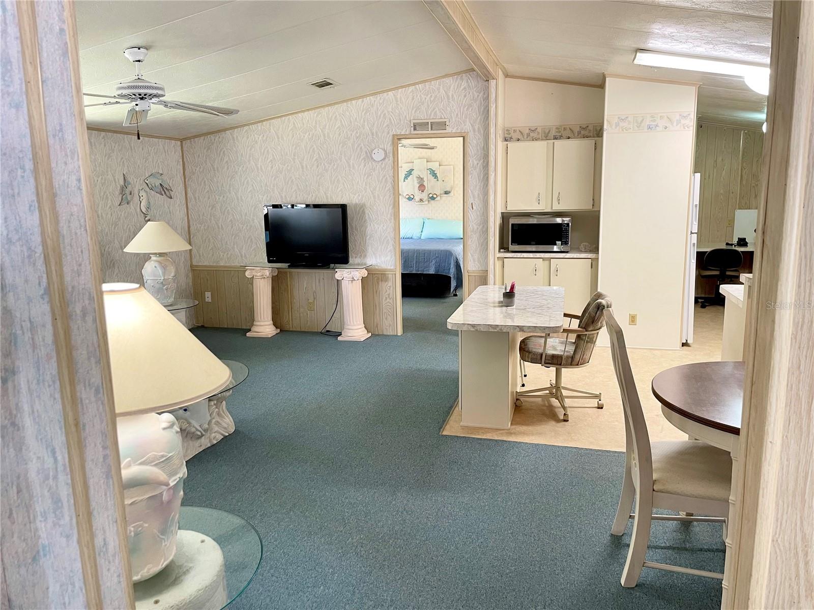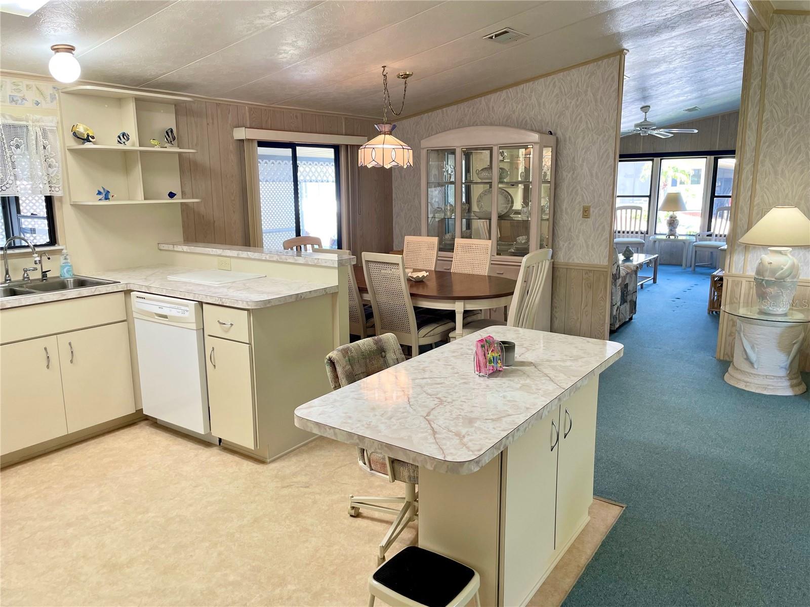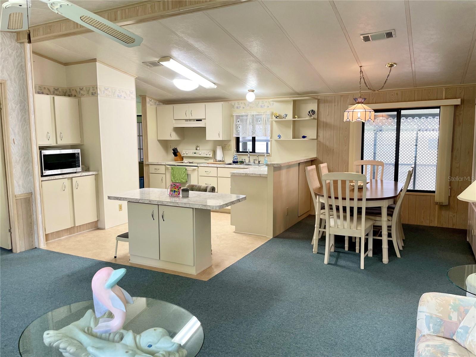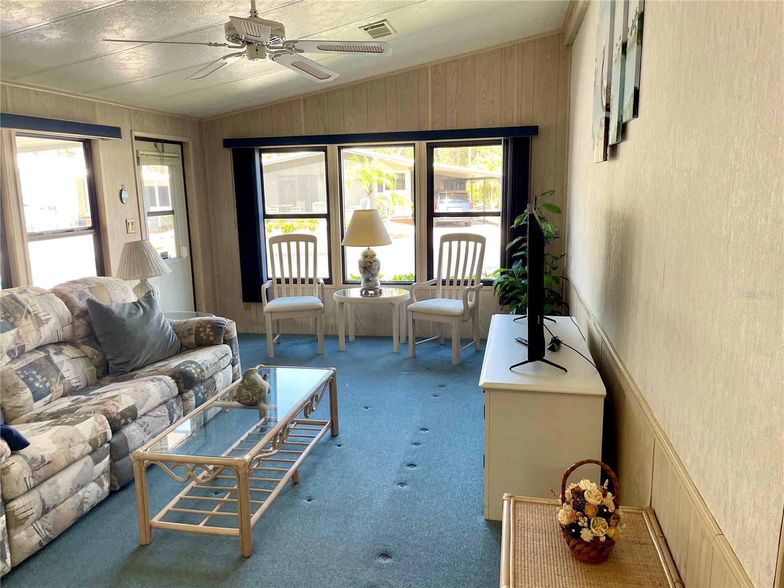 Welcome to Polynesian Village, a highly sought-after 55+ community just minutes from the Gulf! This spacious 2 bed, 2 bath double-wide is being sold turnkey furnished, making it easy to move right in and start enjoying the Florida lifestyle. The home features a large open-concept living room, kitchen, and dining area, along with a front sitting room that offers extra flexibility for a cozy lounge, reading nook, or office. Vaulted ceilings enhance the bright and airy feel, while the large Florida room provides additional space to relax and unwind. One of the only units in Polynesian Village with a split-bedroom layout providing extra privacy with bedrooms on opposite sides of the home. Enjoy the convenience of an outdoor shower—perfect after a beach day! Plus, the AC is only 4 years old, giving you peace of mind. This charming coastal retreat is ready for you to call home. Schedule your showing today!