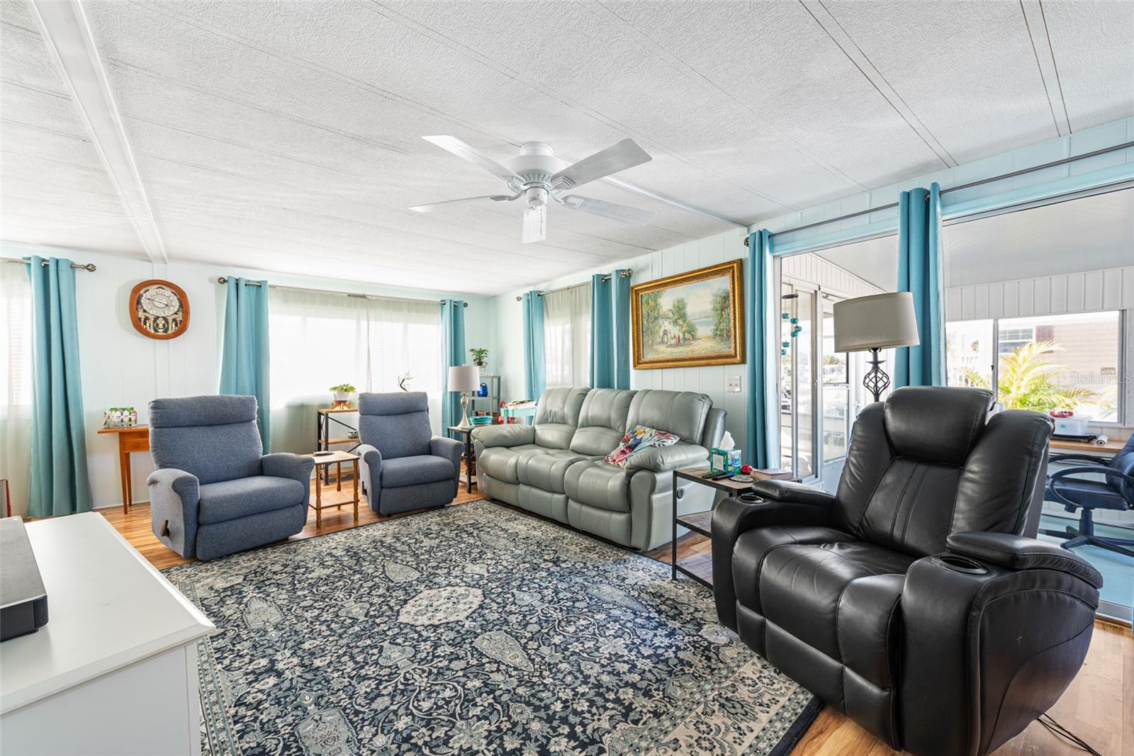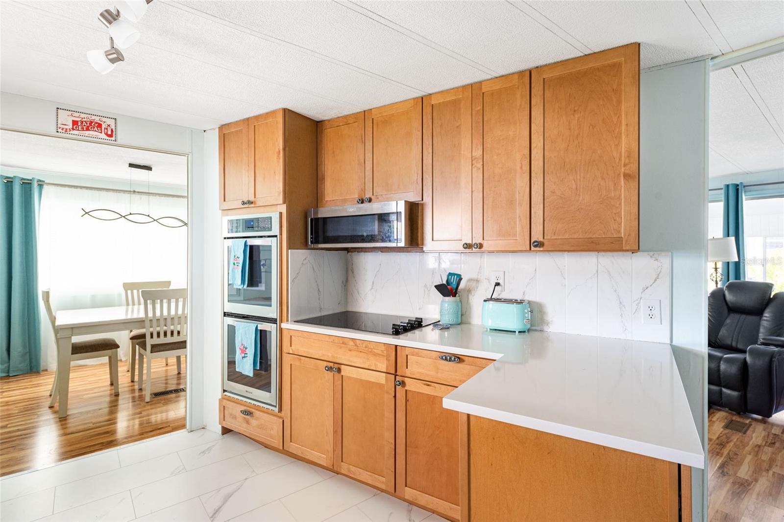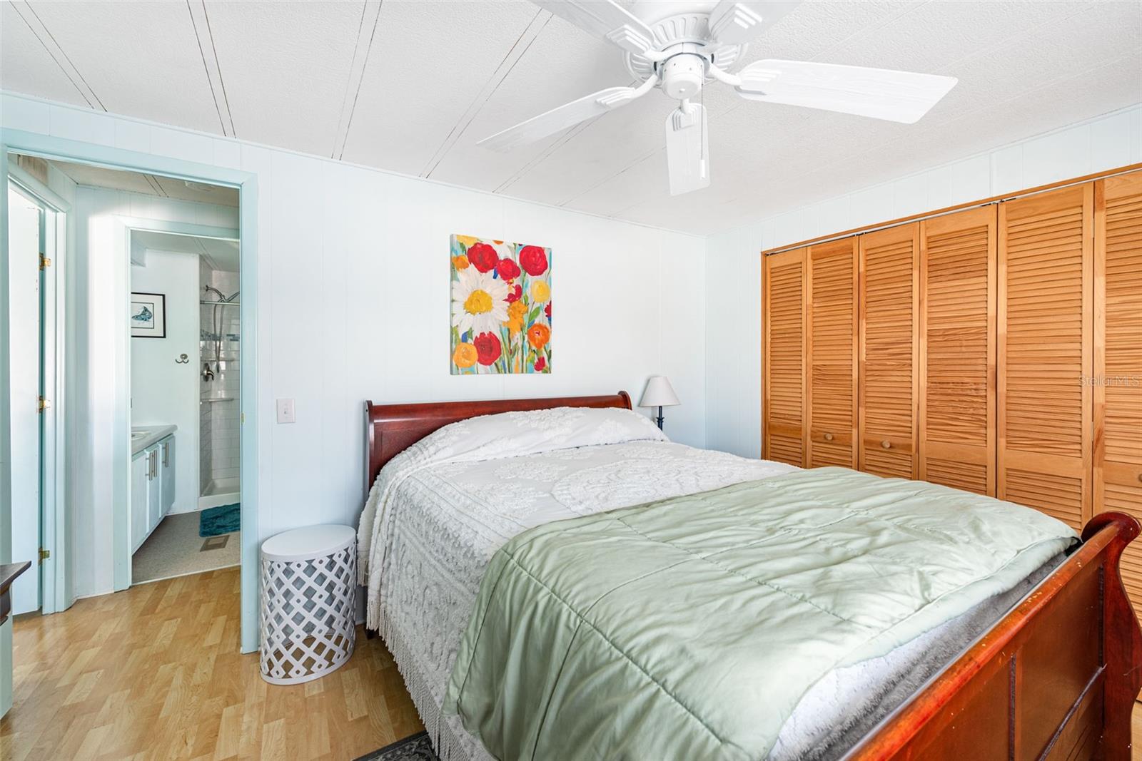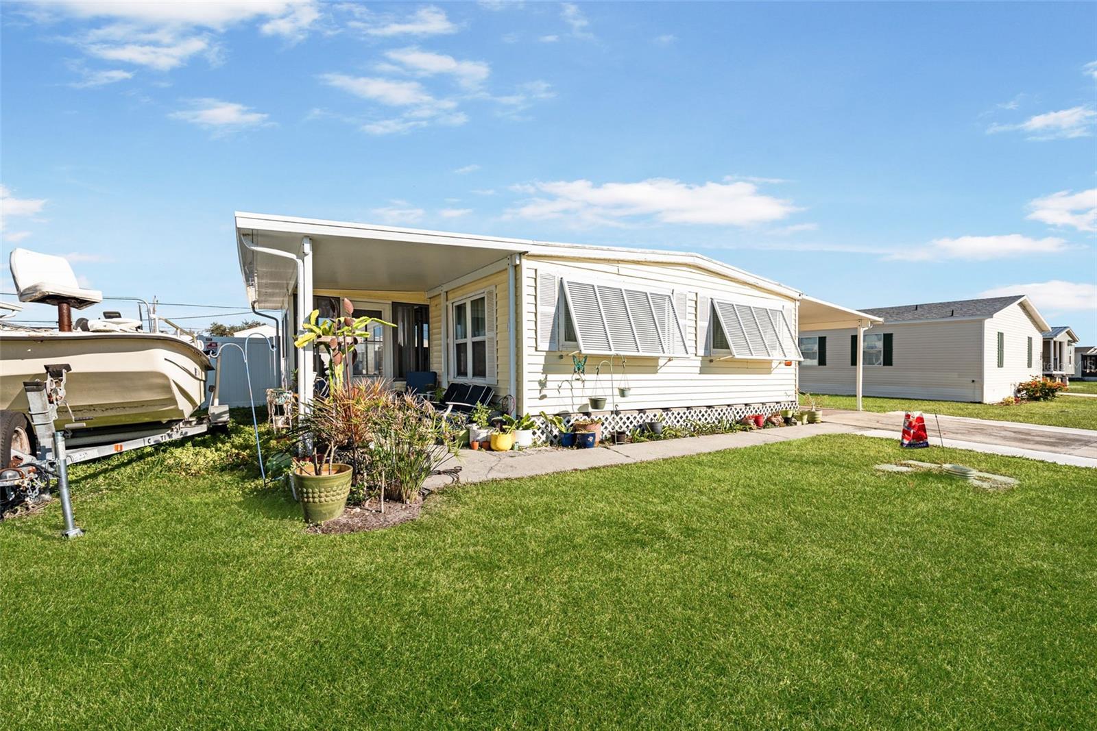 Welcome to your furnished POOL HOME in the vibrant Manatee Cove community, where an array of activities awaits. This beautifully updated two-bedroom, two-bathroom home offers the perfect blend of relaxation and convenience. Step into a private, peaceful retreat featuring a sparkling SALTWATER POOL, installed in 2023, surrounded by a new white PRIVACY FENCE, also added in 2023. The home's exterior is enhanced by stylish Bahama shutters, adding both charm and hurricane protection. Inside, you'll find a bright and spacious living room, perfect for entertaining or simply unwinding. The kitchen has been fully renovated in 2022, boasting all-new appliances, a farmhouse sink, a large pantry, and a double oven – a chef's dream. New vinyl flooring flows seamlessly through the kitchen and bedrooms, installed in 2023, while both bathrooms were tastefully updated in 2022 with new flooring, showers, and sinks. The entire home was freshly painted in 2022, creating a light and airy atmosphere. The master bedroom is a true sanctuary, featuring a king-size bed with additional storage beneath, a makeup table, and a walk-in closet. The second bedroom also offers ample closet space. Recent updates in 2023 include a reframed and resealed roof for added peace of mind, as well as a roofed and sided pool patio, creating an even more private outdoor haven. Enjoy your morning coffee on the bright side porch. This home's prime location puts you close to everything you need, from shopping and doctors' offices to a variety of restaurants, and just a short 10-minute drive to the beach. This home in in a 55+ community.
