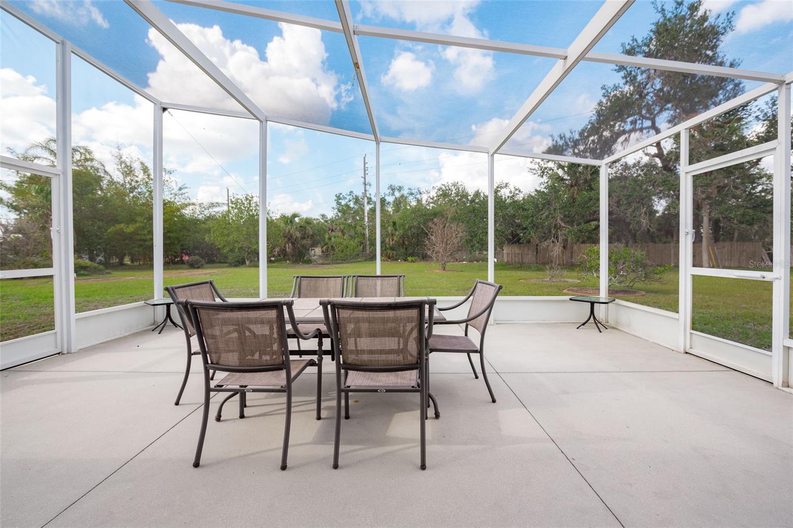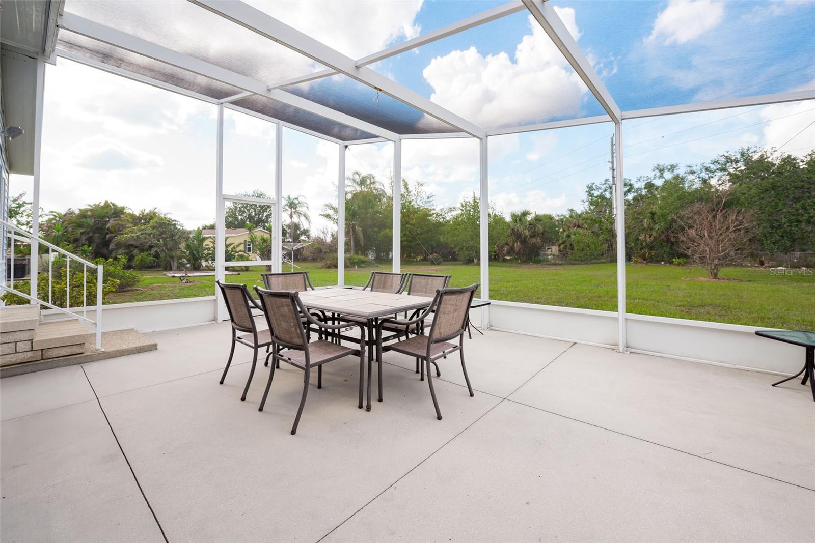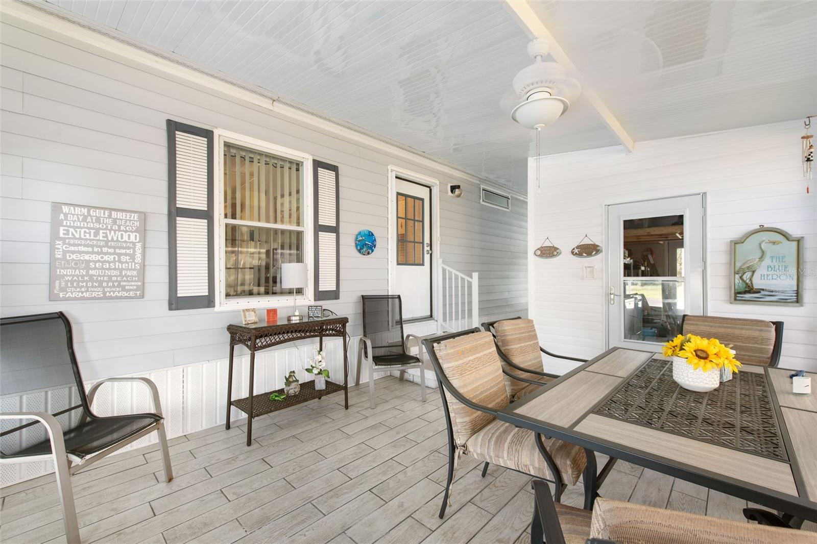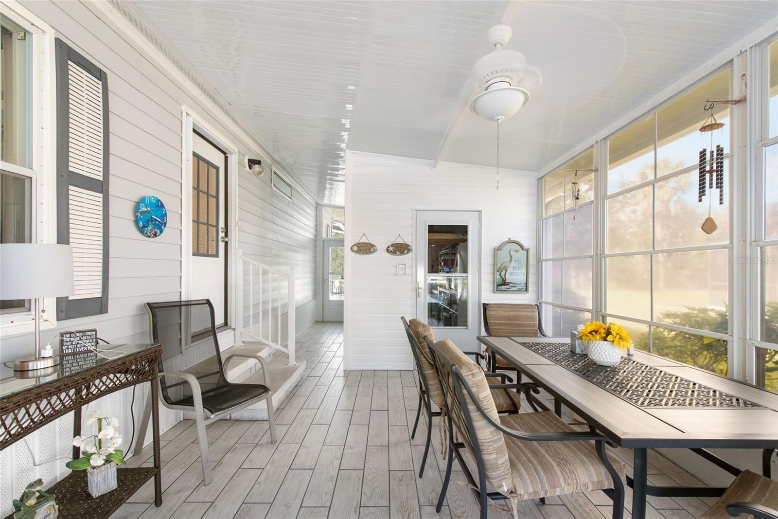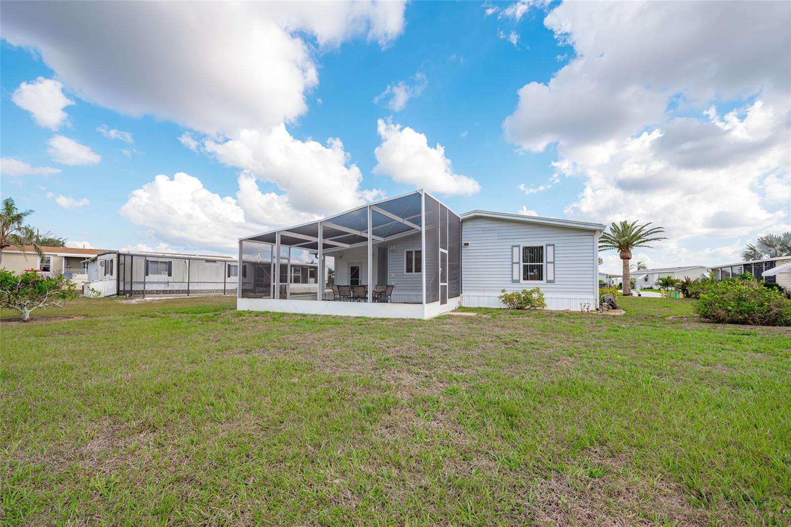 Welcome to your charming new turn-key furnished home in the desirable 55+ community of Holiday Estates III! This delightful residence offers a comfortable and inviting atmosphere, perfect for those seeking a relaxed and active lifestyle. Step inside and be greeted by a bright and open living space, enhanced by the airy feel of cathedral ceilings that extend through the living room and both bedrooms. The coastal-inspired paint palette evokes the tranquility of the Florida lifestyle, creating a warm and welcoming ambiance. Enjoy the easy maintenance of pergo flooring in the living room and bedrooms, while the kitchen and bathrooms feature durable and attractive tile. The beautifully updated kitchen boasts brand-new, stylish wood cabinetry, a new refrigerator, dishwasher, and disposal – all replaced in 2022 – offering modern convenience and a fresh, contemporary feel. The well-designed layout includes two bedrooms, two bathrooms and a bonus room, providing ample space for residents and guests. The master bedroom is a true retreat, boasting a private door leading out to the screened lanai, perfect for enjoying the Florida sunshine and gentle breezes. The master bath is thoughtfully appointed with a shower, a separate soaking tub, and a granite-topped vanity, offering both luxury and convenience. The bonus room can be utilized as a sitting room, office, or third bedroom. A dedicated laundry/utility room adds practicality to this well-maintained home. Step outside and discover two inviting patios. The front patio, fully tiled and enclosed, offers a tranquil escape. The screened-in back patio provides a comfortable outdoor retreat, ideal for barbecues and enjoying the sunshine without the bugs. The expansive backyard, bordered by mature trees, offers a sense of privacy and tranquility. Peace of mind comes with knowing this home has been recently repiped and features a brand new AC unit and electrical panel installed in 2023. A one-car carport and an oversized driveway ensure ample parking for you and your guests. This home is nestled within a vibrant, golf cart-friendly community where residents own their spacious lots. Holiday Estates III is known for its active social scene, centered around the Edgewater Club. Enjoy a wealth of amenities, including a refreshing pool, tennis and pickleball courts, shuffleboard, and bocce ball. The clubhouse hosts a variety of events, from weekly music and sing-alongs by the pool to monthly dinners. With countless social gatherings, you'll find it easy to connect with neighbors and make new friends. Edgewater Club serves the residents Holiday Estates III, offering a true sense of community and belonging. Don't miss this opportunity to embrace the Florida lifestyle in this wonderful home!