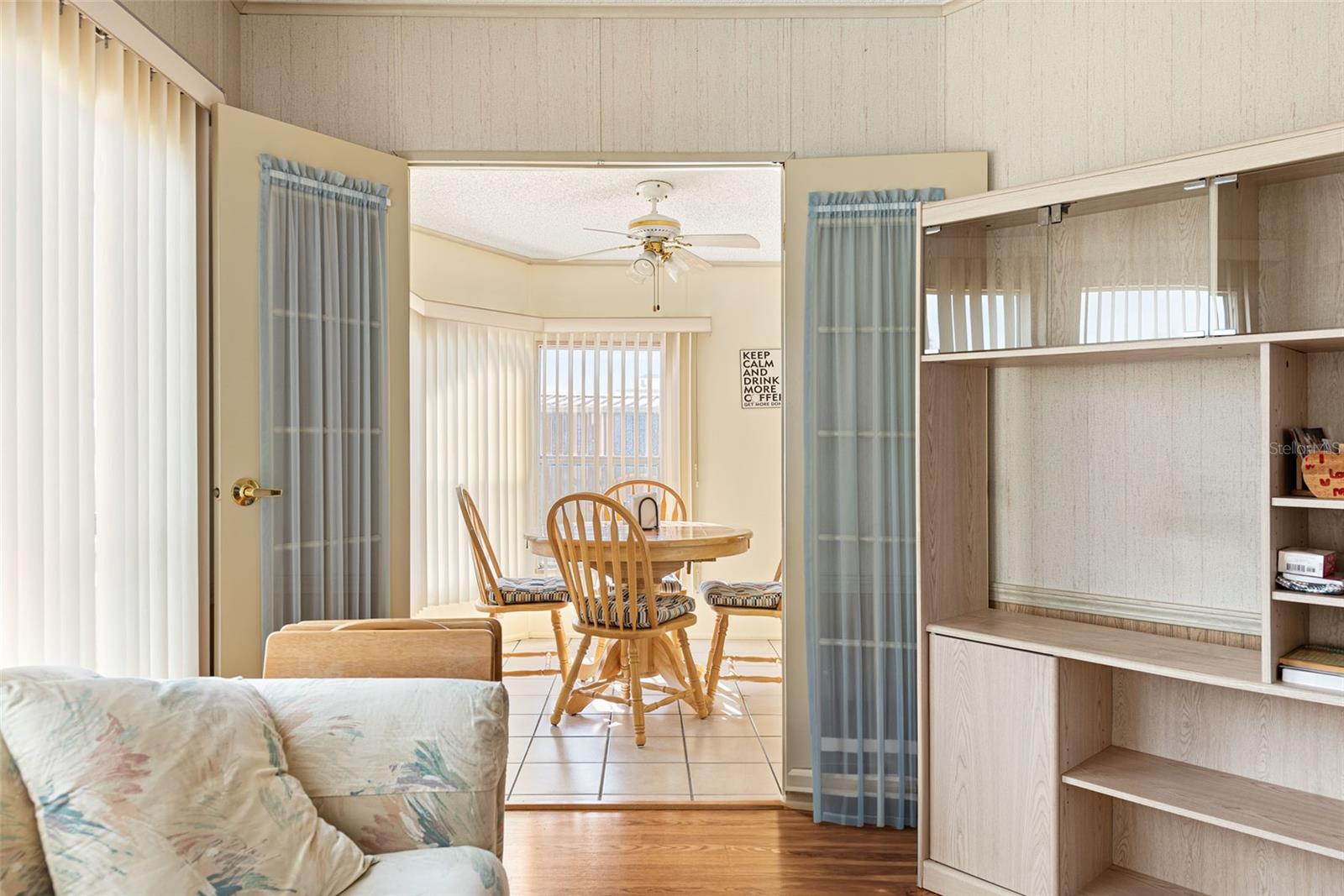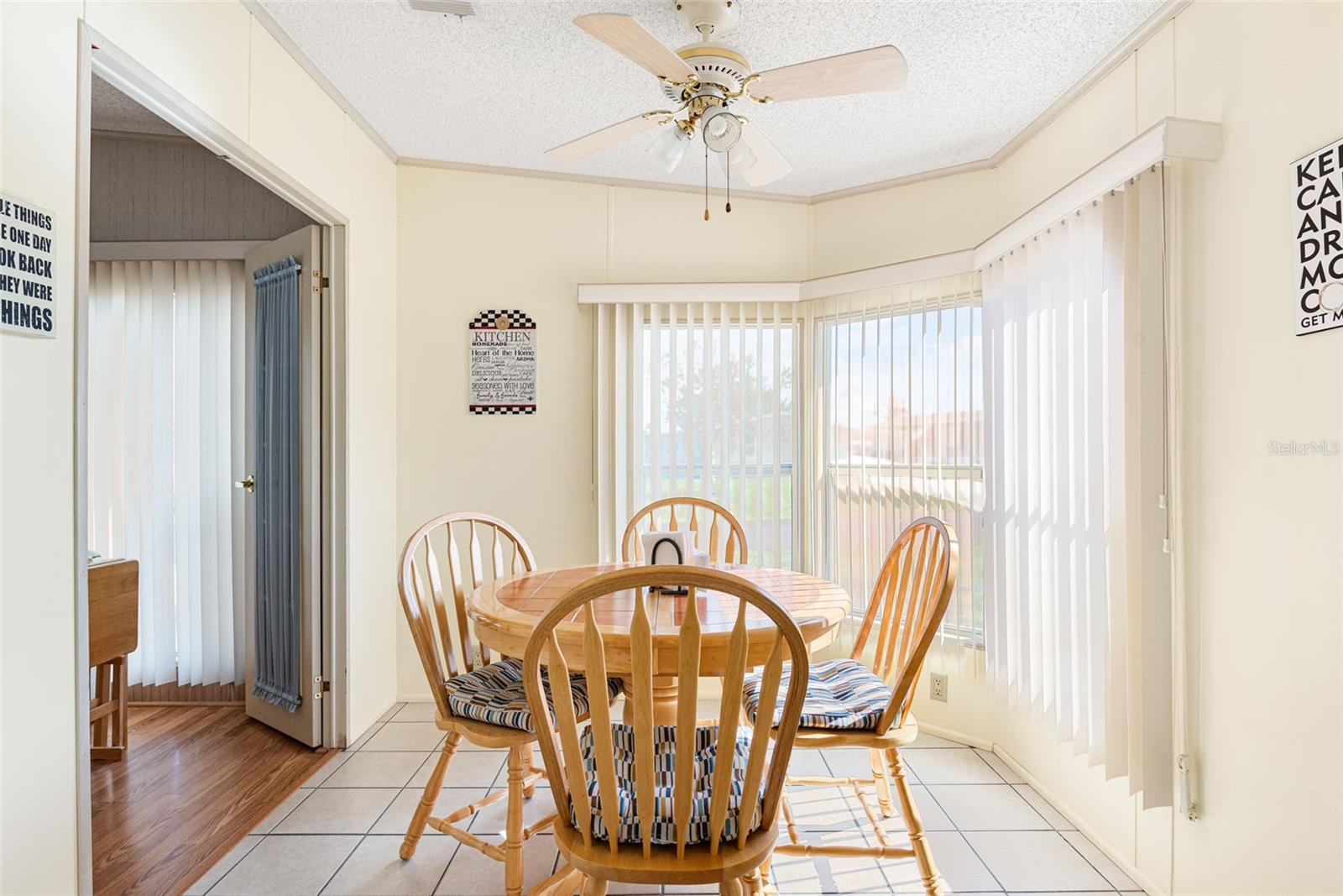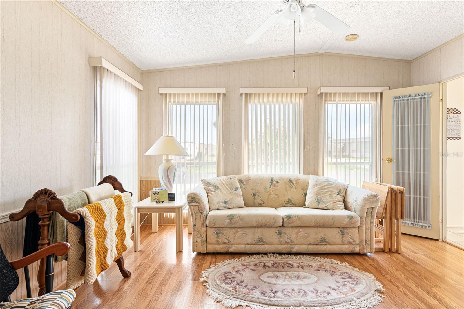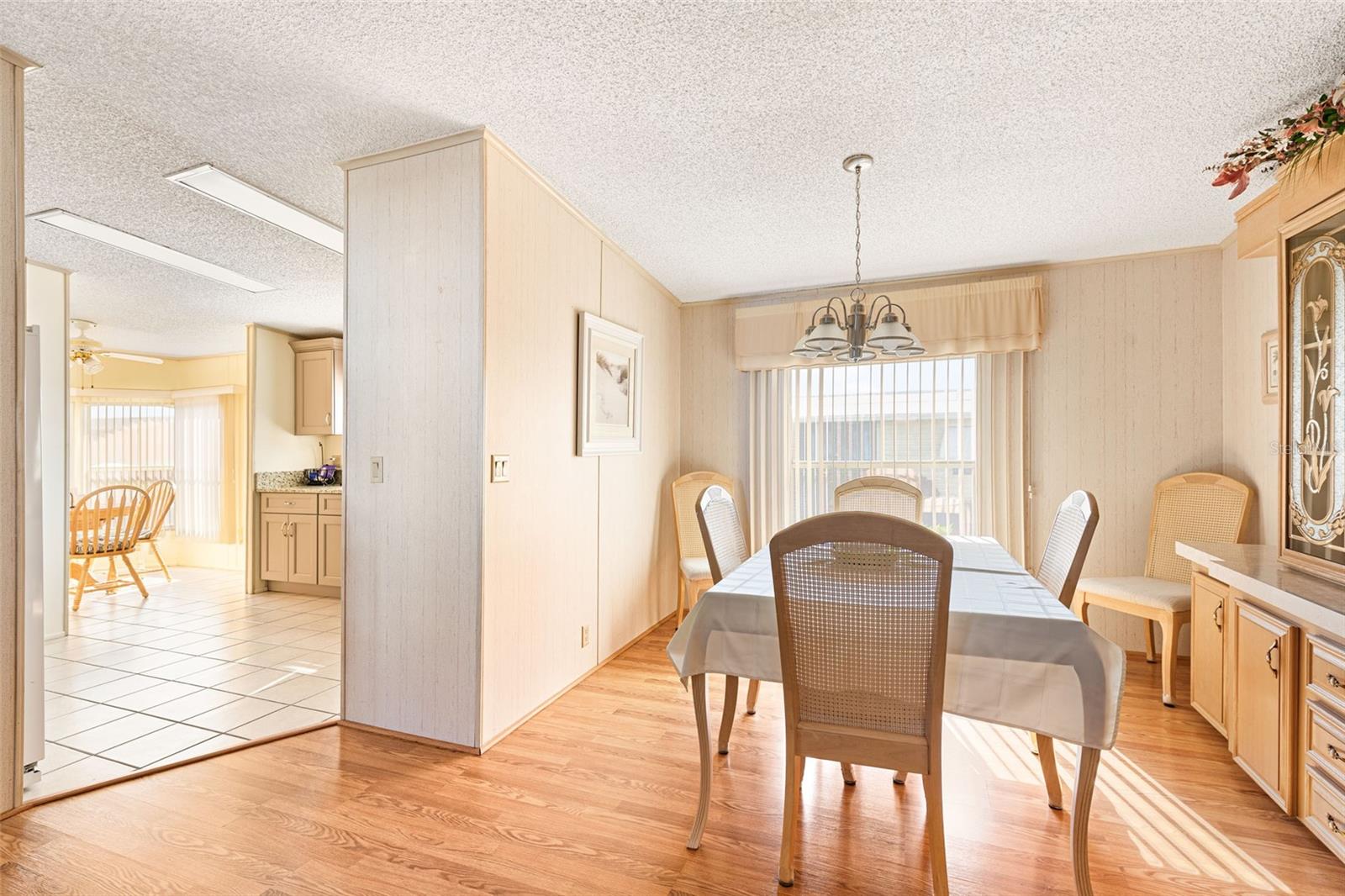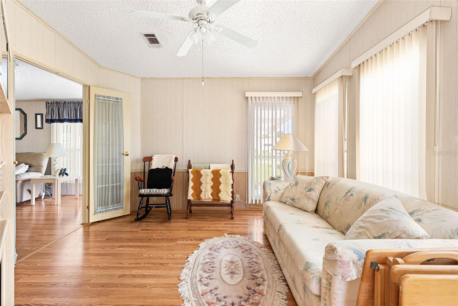 Welcome to your charming new turn-key furnished home in the desirable 55+ community of Holiday Estates III! This delightful residence offers a comfortable and inviting atmosphere, perfect for those seeking a relaxed and active lifestyle. Step inside and be greeted by a bright and open living space, enhanced by the airy feel of cathedral ceilings that extend through the living room and both bedrooms. The coastal-inspired paint palette evokes the tranquility of the Florida lifestyle, creating a warm and welcoming ambiance. Enjoy the easy maintenance of pergo flooring in the living room and bedrooms, while the kitchen and bathrooms feature durable and attractive tile. The beautifully updated kitchen boasts brand-new, stylish wood cabinetry, a new refrigerator, dishwasher, and disposal – all replaced in 2022 – offering modern convenience and a fresh, contemporary feel. The well-designed layout includes two bedrooms, two bathrooms and a bonus room, providing ample space for residents and guests. The master bedroom is a true retreat, boasting a private door leading out to the screened lanai, perfect for enjoying the Florida sunshine and gentle breezes. The master bath is thoughtfully appointed with a shower, a separate soaking tub, and a granite-topped vanity, offering both luxury and convenience. The bonus room can be utilized as a sitting room, office, or third bedroom. A dedicated laundry/utility room adds practicality to this well-maintained home. Step outside and discover two inviting patios. The front patio, fully tiled and enclosed, offers a tranquil escape. The screened-in back patio provides a comfortable outdoor retreat, ideal for barbecues and enjoying the sunshine without the bugs. The expansive backyard, bordered by mature trees, offers a sense of privacy and tranquility. Peace of mind comes with knowing this home has been recently repiped and features a brand new AC unit and electrical panel installed in 2023. A one-car carport and an oversized driveway ensure ample parking for you and your guests. This home is nestled within a vibrant, golf cart-friendly community where residents own their spacious lots. Holiday Estates III is known for its active social scene, centered around the Edgewater Club. Enjoy a wealth of amenities, including a refreshing pool, tennis and pickleball courts, shuffleboard, and bocce ball. The clubhouse hosts a variety of events, from weekly music and sing-alongs by the pool to monthly dinners. With countless social gatherings, you'll find it easy to connect with neighbors and make new friends. Edgewater Club serves the residents Holiday Estates III, offering a true sense of community and belonging. Don't miss this opportunity to embrace the Florida lifestyle in this wonderful home!
