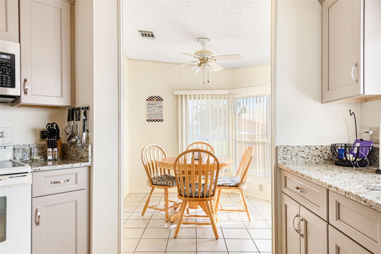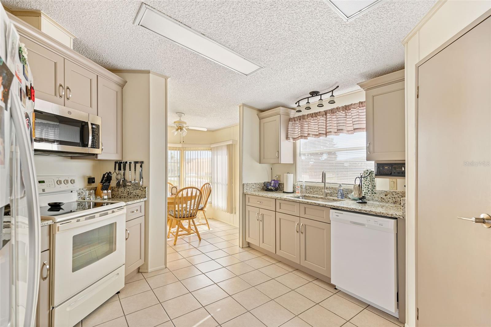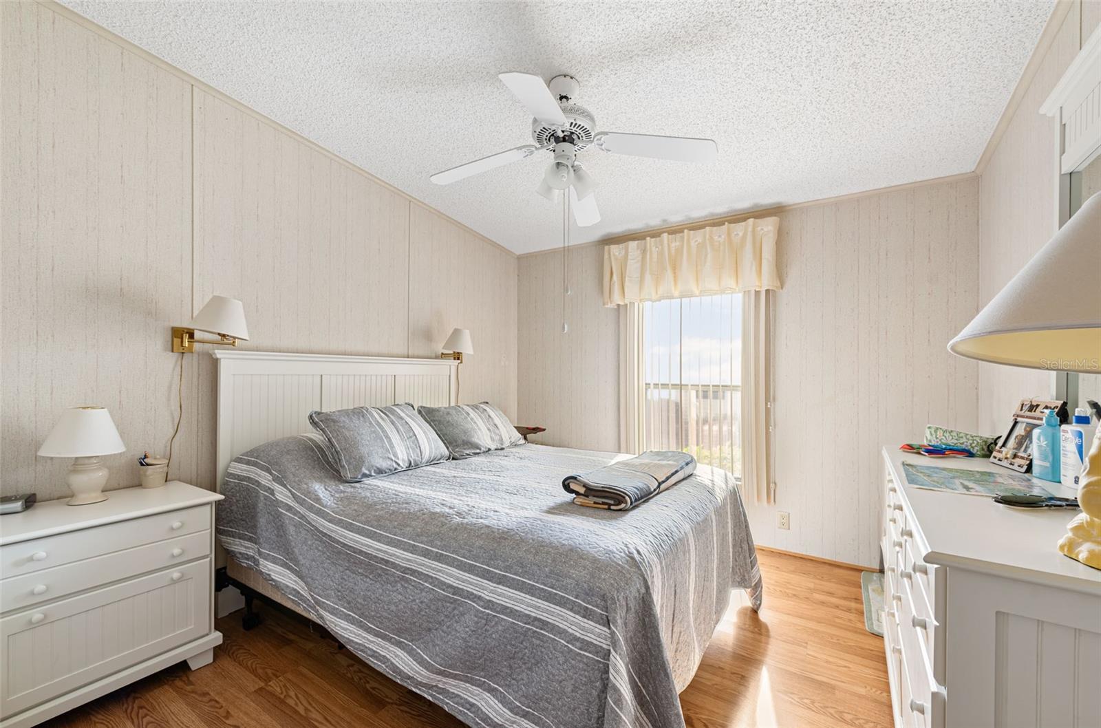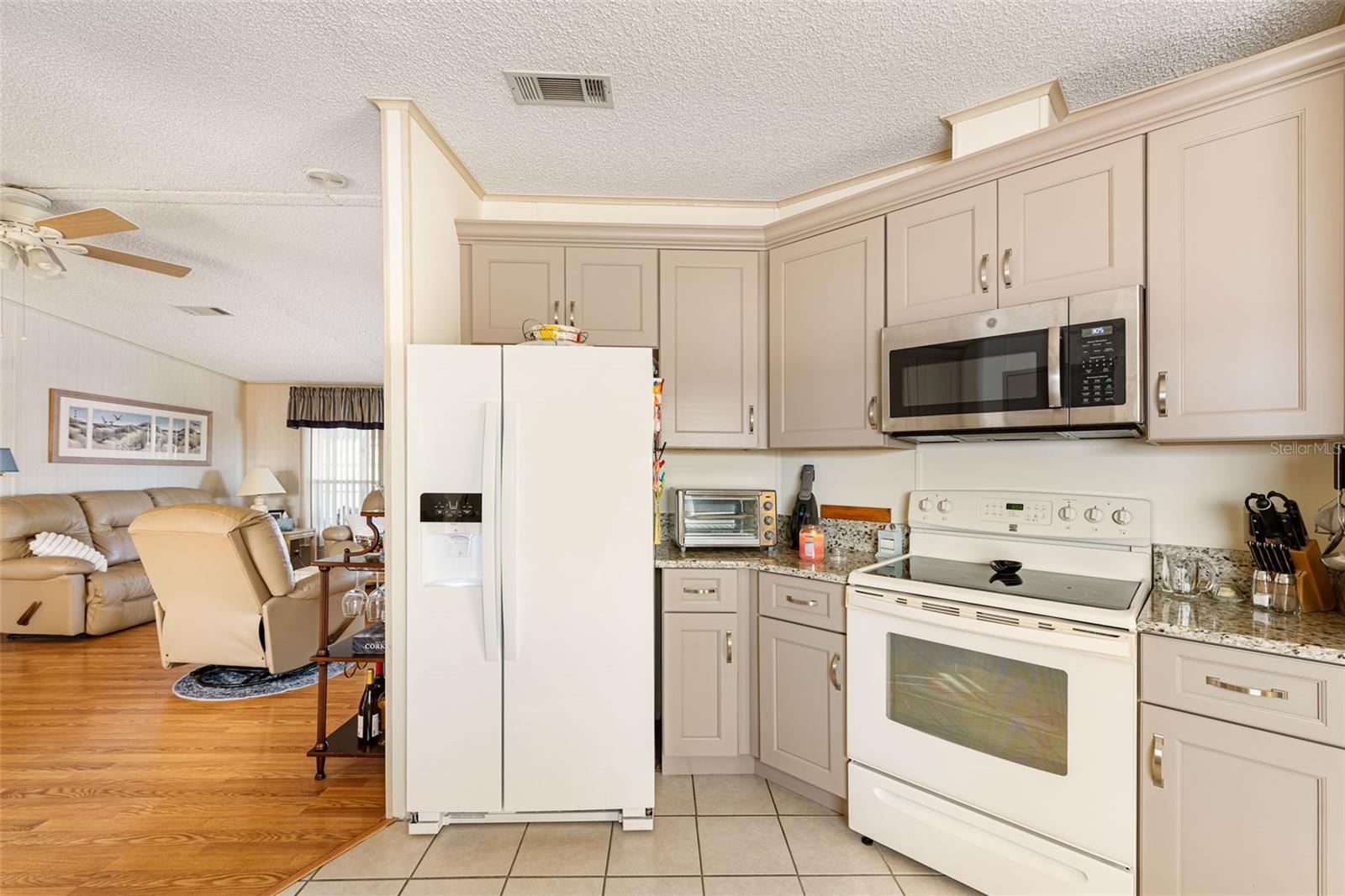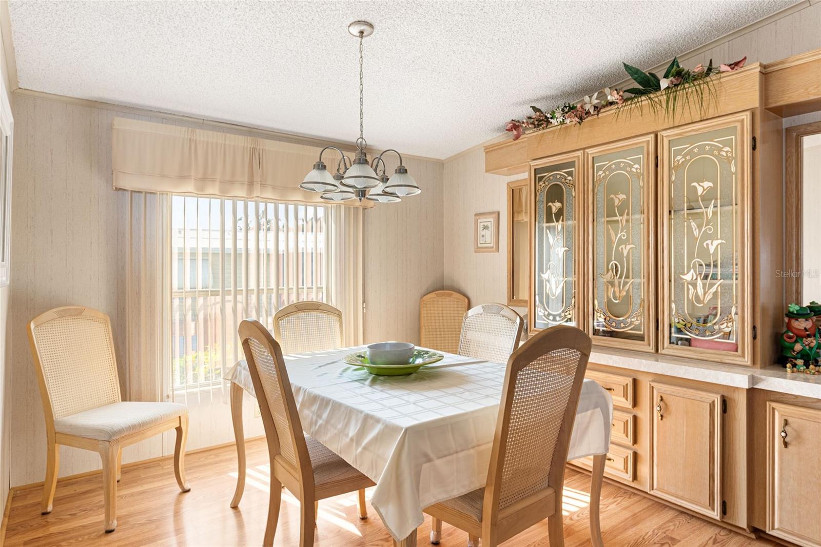 Welcome to your charming new turn-key furnished home in the desirable 55+ community of Holiday Estates III! This delightful residence offers a comfortable and inviting atmosphere, perfect for those seeking a relaxed and active lifestyle. Step inside and be greeted by a bright and open living space, enhanced by the airy feel of cathedral ceilings that extend through the living room and both bedrooms. The coastal-inspired paint palette evokes the tranquility of the Florida lifestyle, creating a warm and welcoming ambiance. Enjoy the easy maintenance of pergo flooring in the living room and bedrooms, while the kitchen and bathrooms feature durable and attractive tile. The beautifully updated kitchen boasts brand-new, stylish wood cabinetry, a new refrigerator, dishwasher, and disposal – all replaced in 2022 – offering modern convenience and a fresh, contemporary feel. The well-designed layout includes two bedrooms, two bathrooms and a bonus room, providing ample space for residents and guests. The master bedroom is a true retreat, boasting a private door leading out to the screened lanai, perfect for enjoying the Florida sunshine and gentle breezes. The master bath is thoughtfully appointed with a shower, a separate soaking tub, and a granite-topped vanity, offering both luxury and convenience. The bonus room can be utilized as a sitting room, office, or third bedroom. A dedicated laundry/utility room adds practicality to this well-maintained home. Step outside and discover two inviting patios. The front patio, fully tiled and enclosed, offers a tranquil escape. The screened-in back patio provides a comfortable outdoor retreat, ideal for barbecues and enjoying the sunshine without the bugs. The expansive backyard, bordered by mature trees, offers a sense of privacy and tranquility. Peace of mind comes with knowing this home has been recently repiped and features a brand new AC unit and electrical panel installed in 2023. A one-car carport and an oversized driveway ensure ample parking for you and your guests. This home is nestled within a vibrant, golf cart-friendly community where residents own their spacious lots. Holiday Estates III is known for its active social scene, centered around the Edgewater Club. Enjoy a wealth of amenities, including a refreshing pool, tennis and pickleball courts, shuffleboard, and bocce ball. The clubhouse hosts a variety of events, from weekly music and sing-alongs by the pool to monthly dinners. With countless social gatherings, you'll find it easy to connect with neighbors and make new friends. Edgewater Club serves the residents Holiday Estates III, offering a true sense of community and belonging. Don't miss this opportunity to embrace the Florida lifestyle in this wonderful home!