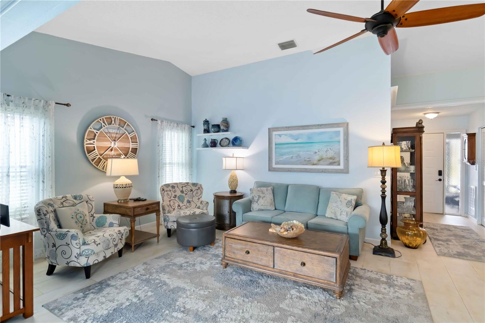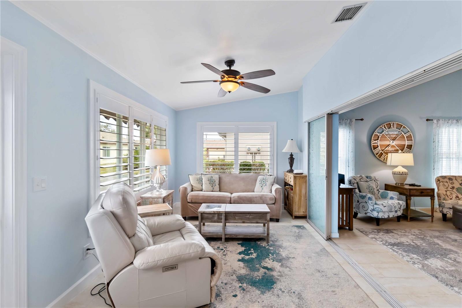 Move right in to this beautifully updated duplex style home in Foxwood’s 55+ community. Updates include hurricane impact windows throughout, new roof, new hot water heater, retractable patio awning, updated kitchen including quartz countertops and soft close drawers and cabinets, plantation shutters, updated guest bathroom, updated flooring (no carpet!), updated electrical outlets with USB ports, and a custom dry bar! This home is immaculate! With 2 bedrooms, 2 bathrooms, and a spacious 1,498 square feet, this home provides ample room for comfortable living. The updated kitchen has plenty of storage space including a large pantry with slide out drawers. Through the living room is a Florida room with sliding doors that can be open or closed off (and even used as an additional bedroom!) leading to a back patio with retractable awning for enjoying the beautiful SWFL weather! The split floor plan offers privacy with bedrooms on both sides of the house. This home has a desirable inside laundry room which leads to a spacious 2-car garage. Located in the X Flood Zone - no flood insurance is required. This home is in close proximity to Manasota Key Beach, Dearborn St. in downtown Englewood, numerous golf courses, excellent restaurants, and a plethora of shopping options. Outdoor enthusiasts will delight in the abundance of activities available. Within the Foxwood community itself, you'll find an array of amenities to enjoy. It’s just a short walk or golf cart ride to the fun-filled clubhouse which offers different activities daily, ensuring there's always something exciting happening. Take a refreshing dip in the heated pool, engage in the popular sport of pickleball, or challenge your friends to a game of tennis. Furthermore, the community is golf cart-friendly!! This home and community have everything you need to enjoy life!