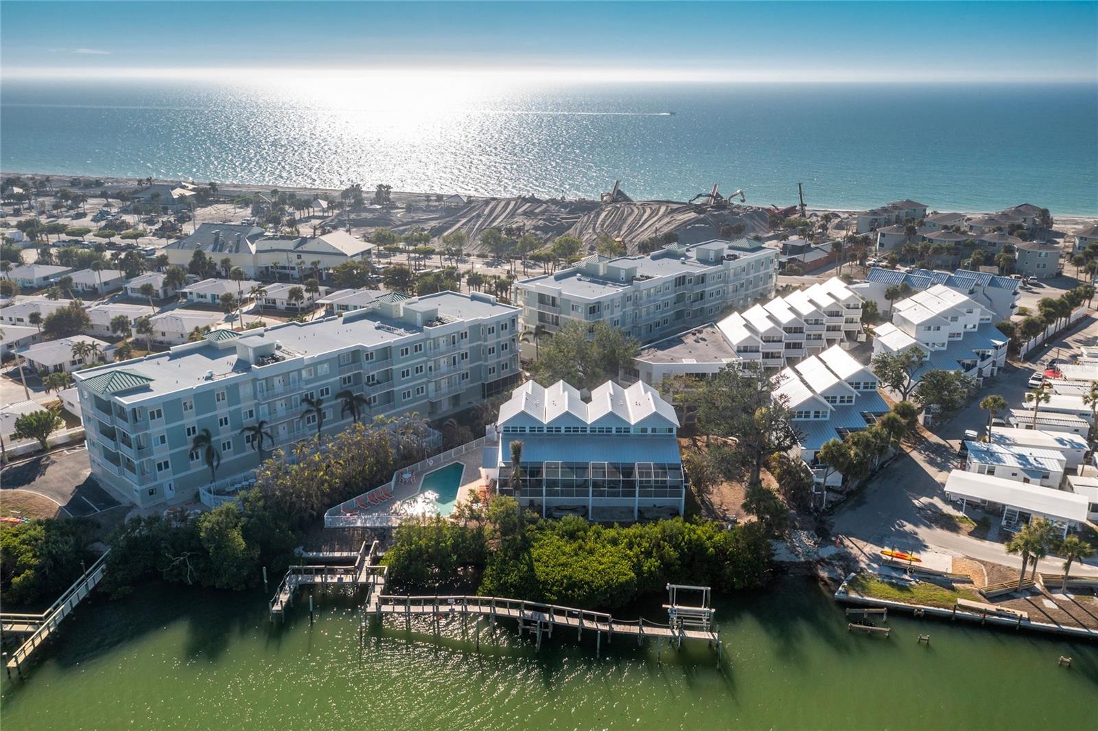 Bright and inviting 2Bed/2Bath + Loft fully furnished townhome with partial views of Englewood Beach. The location doesn't get much better than this; just moments from Manasota Key's restaurants and shopping and just across the street from the beach, this well-maintained townhome offers the perfect Florida lifestyle. Dock your boat in the common slips on Lemon Bay, take a refreshing swim in the heated pool, or stroll across the street to the beach. The unit features all new luxury vinyl plank flooring and carpet throughout, and all sliding glass doors are storm/impact rated. Enjoy morning coffee or breathtaking sunsets from the open balcony. Vaulted ceilings adorn the dining and living areas and create a warm and airy atmosphere. The top floor primary suite offers a beautifully updated bathroom, and the downstairs bedroom suite includes an updated shower. Both bedrooms include balconettes with screened sliders, perfecto for letting the Gulf breezes flow through the unit. The top floor loft/den provides a scenic Gulf view and is a perfect flex space for overnight guests, or for an office/den space. Unit offers a 1-car covered carport area, located just in front of the private 1+ car garage. The outdoor shower is ideal for rinsing off after coming in from the beach. Live Oak Landings Condominiums is a 23-unit, bay front community featuring a heated pool with paver patio, privately owned & common slips, and guest parking for its residents. This is the perfect retreat for coastal living.