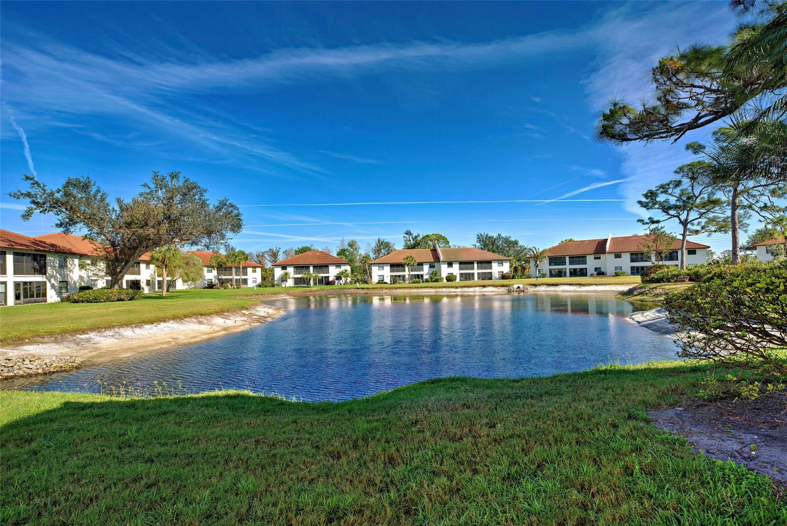 WELCOME HOME TO PINE HOLLOW. This is a lovely gated condo community nestled in the heart of Englewood, Florida. Buy here and start your lifestyle of freedom! Easy living in this GROUND FLOOR, END UNIT WITH A VIEW OF THE POND. This 2 bedroom- 2 Bath unit has been used only seasonally for many years and is ready for a new owner with fresh ideas. Pine Hollow features a community pool and gathering area for the residents. The grounds are well maintained with pond views. Central Englewood location with easy walking distance to shopping, dining, banking, live music, boutique shops and specialty stores. THE BEAUTIFUL SANDY BEACHES OF MANASOTA KEY- JUST A FEW MILES AWAY. Several waterfront parks within 2 miles, provide public boat ramp, kayak launch, picnic area with grills, hiking trails, bird watching and shore fishing! The existing furniture conveys with the sale. The association fees are fairly priced! COME FOR A VISIT AND STAY A LIFETIME.