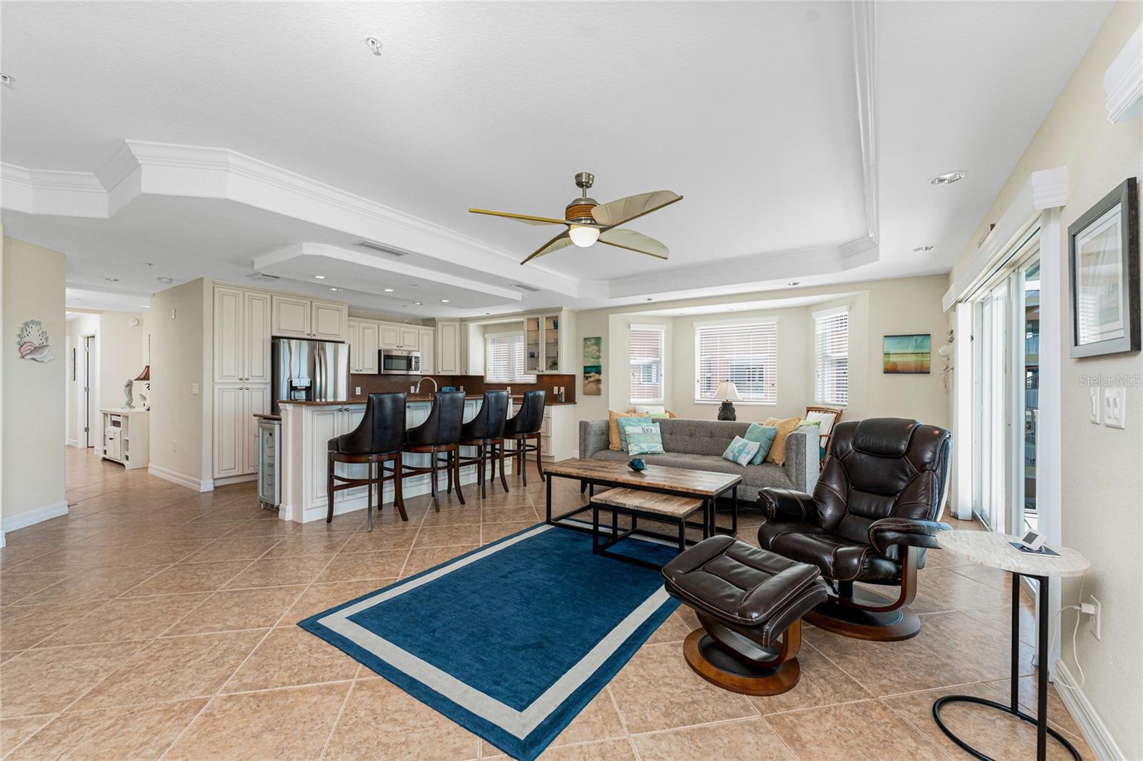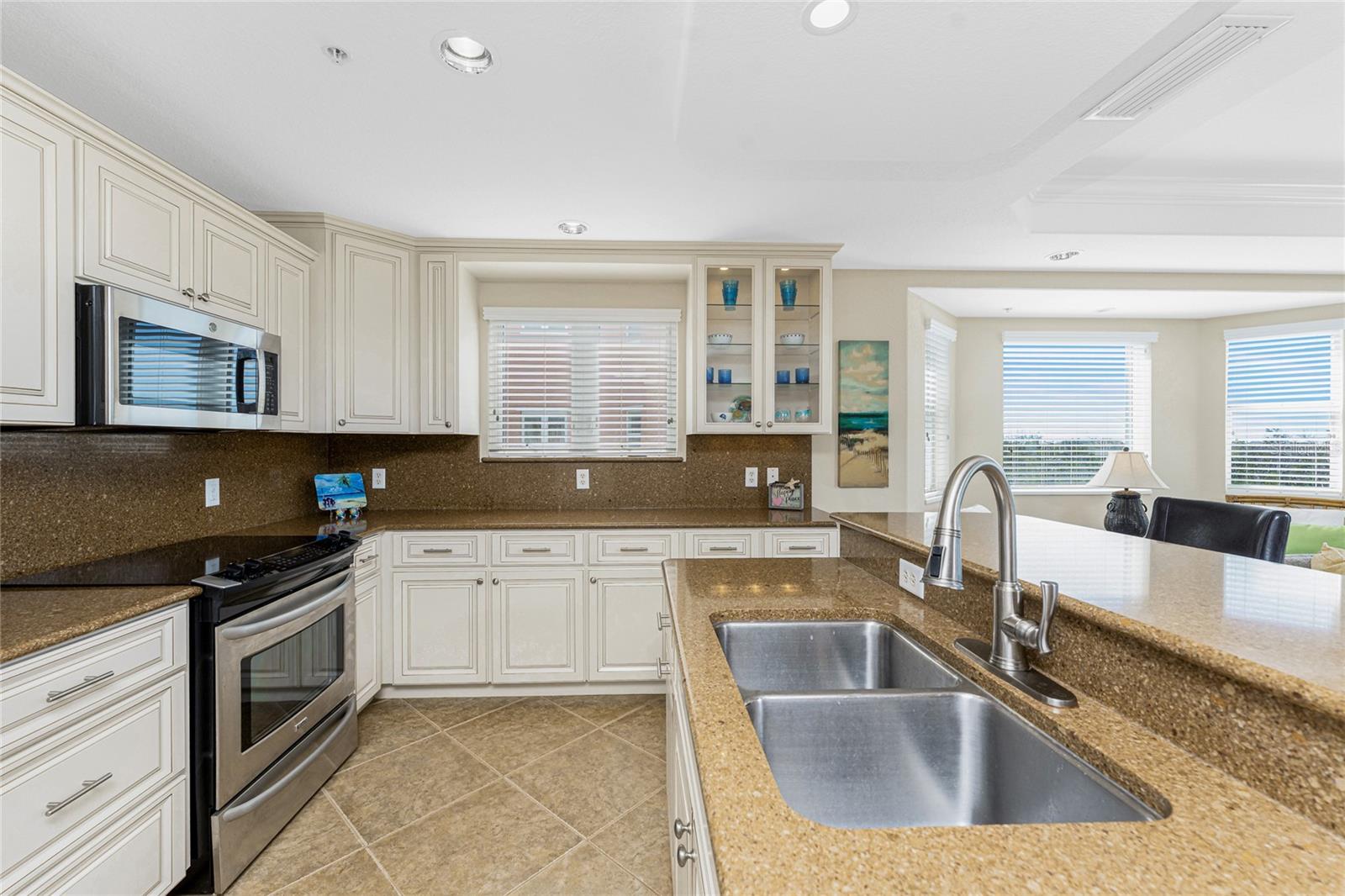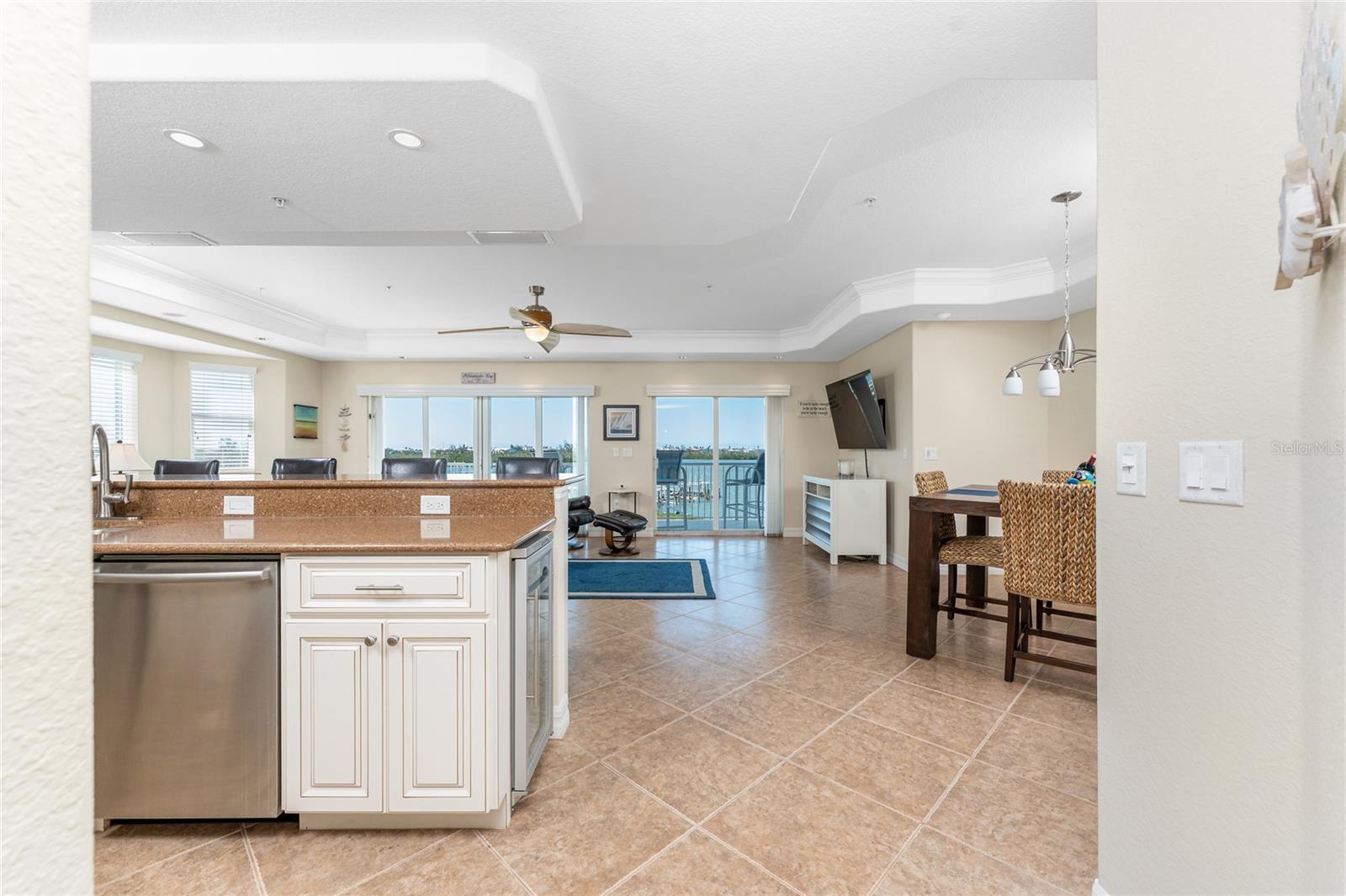 Wake up to breathtaking sunrises over Lemon Bay where the tone is set for another beautiful day in paradise. From your balcony, sip your morning coffee as boats travel along the Intracoastal Waterway, creating a picture-perfect backdrop of coastal living at its finest. This upscale, gated Harborview Condo is being sold turnkey furnished and offers two bedrooms, two baths, and two-car garage and the convenience of a security-keyed shared elevator. Designed for relaxed living and effortless entertaining, the open floor plan is filled with natural light and spectacular water views. The great room features multiple sets of sliding glass doors, seamlessly connecting the indoors to the stunning waterfront scenery. The well-appointed kitchen flows into the dining area and a full granite wet bar with a sink, making it the perfect space for hosting gatherings. The kitchen includes upgraded wood cabinetry, granite countertops, stainless steel appliances, a raised breakfast bar, a beverage refrigerator, and a pantry cabinet. The primary suite has a tray ceiling, a spacious walk-in closet with custom shelving, and an en-suite bath with dual sinks, granite countertops, a walk-around shower, and a garden tub. A private balcony connects the primary and guest bedrooms, providing a quiet spot to enjoy the coastal breeze while overlooking Beach Road. The guest bedroom is generously sized with a reach-in closet, while the guest bath features a step-in shower and a granite-topped vanity. For added convenience, a large storage area adjacent to the garage provides the perfect space for beach chairs, bicycles, and pool floats. There is a community pool and the deck area is under review for renovations. Whether you prefer a peaceful day on the water, exploring local sandbars, or taking a short walk or bike ride to Englewood Beach for lunch, live music at the tiki bars, or watching the sunset, this condo offers an unbeatable blend of luxury, security, and waterfront living. Call today to schedule your private showing.