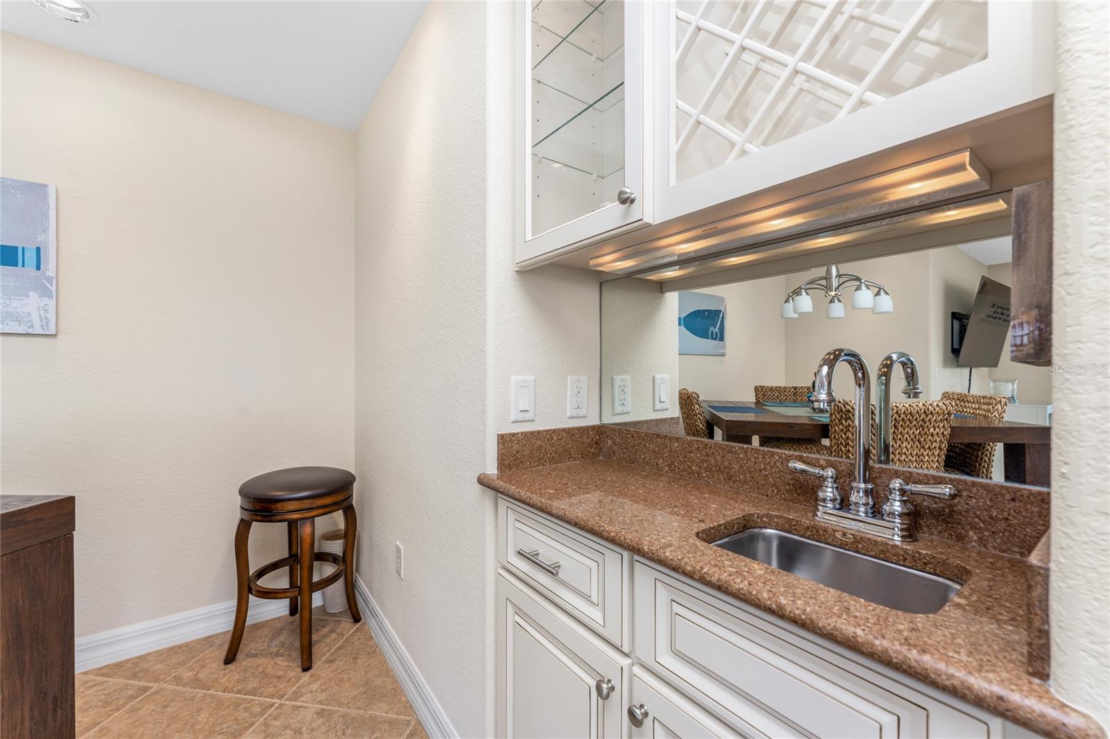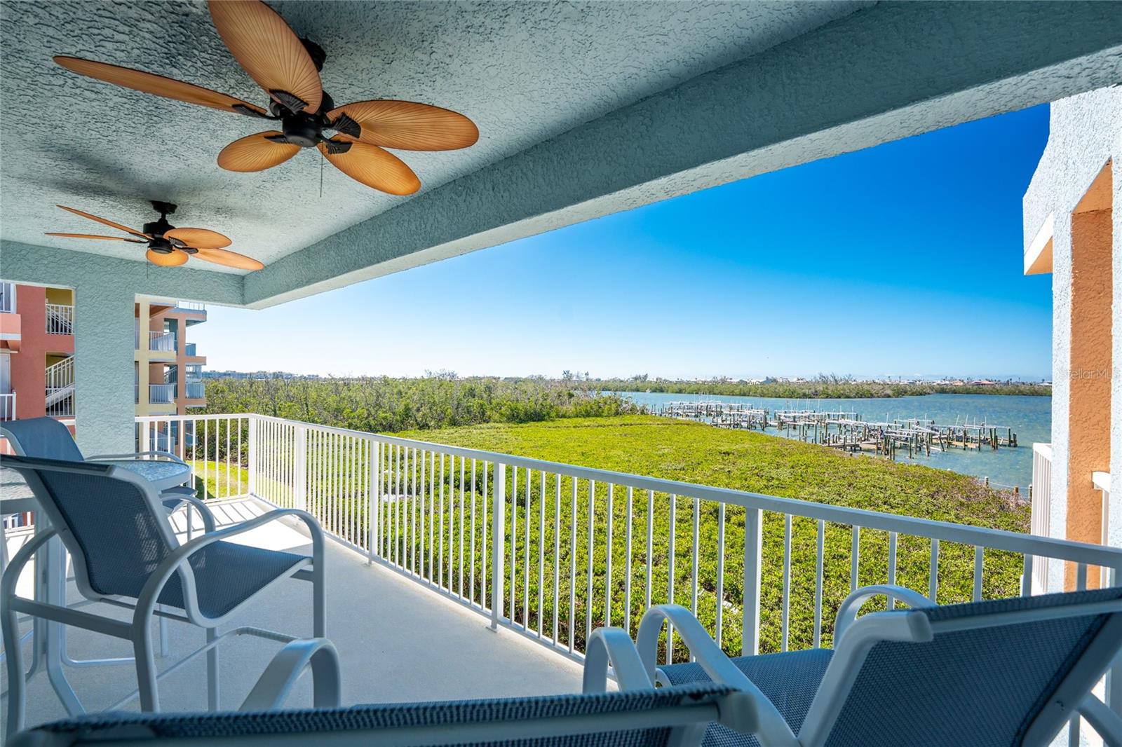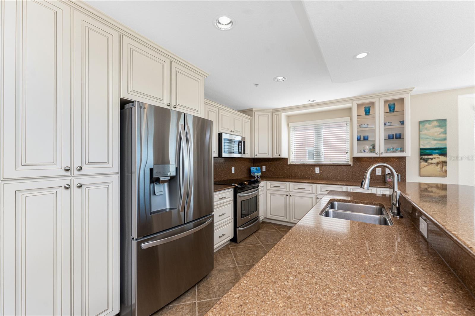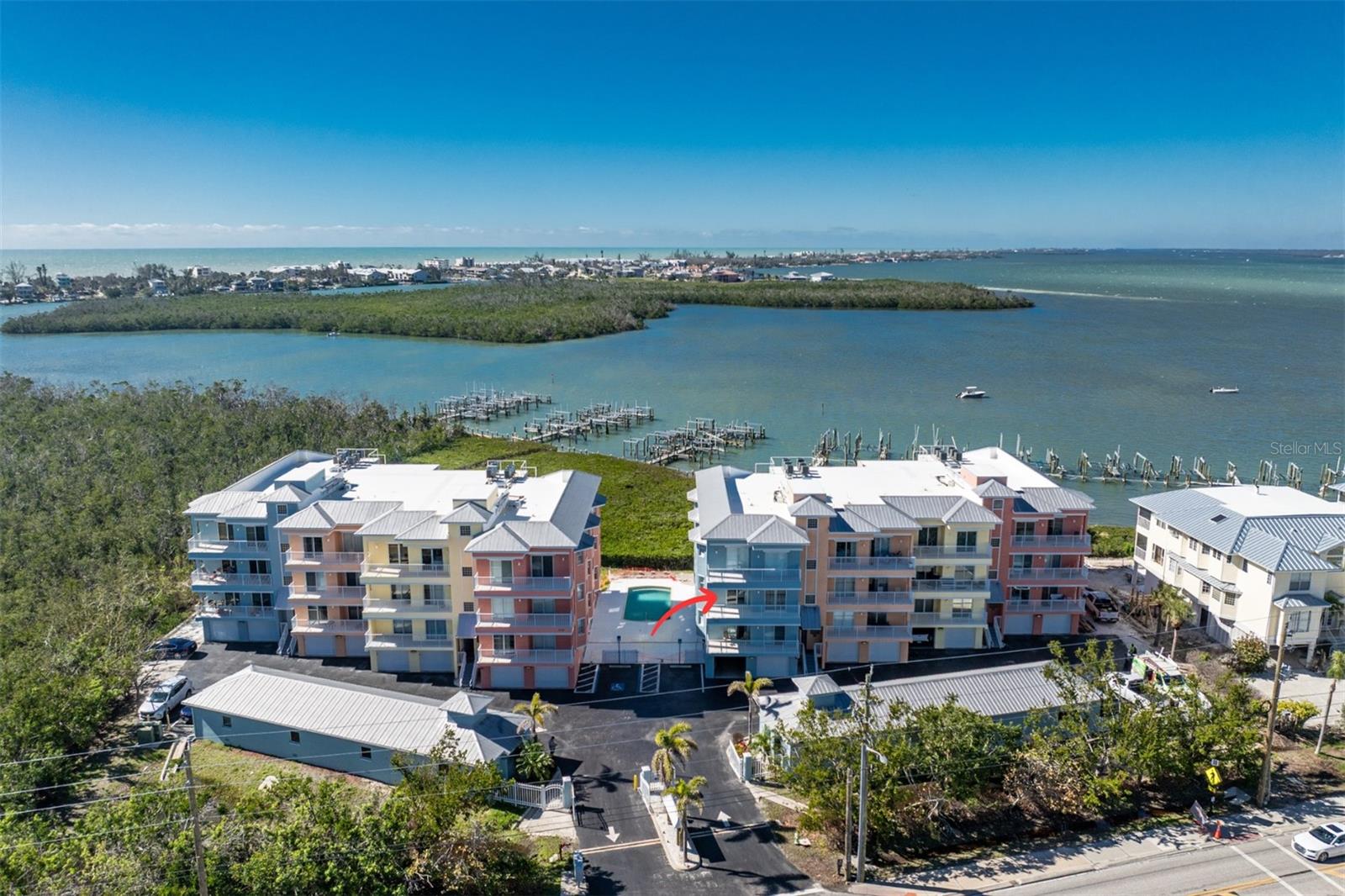 Wake up to breathtaking sunrises over Lemon Bay where the tone is set for another beautiful day in paradise. From your balcony, sip your morning coffee as boats travel along the Intracoastal Waterway, creating a picture-perfect backdrop of coastal living at its finest. This upscale, gated Harborview Condo is being sold turnkey furnished and offers two bedrooms, two baths, and two-car garage and the convenience of a security-keyed shared elevator. Designed for relaxed living and effortless entertaining, the open floor plan is filled with natural light and spectacular water views. The great room features multiple sets of sliding glass doors, seamlessly connecting the indoors to the stunning waterfront scenery. The well-appointed kitchen flows into the dining area and a full granite wet bar with a sink, making it the perfect space for hosting gatherings. The kitchen includes upgraded wood cabinetry, granite countertops, stainless steel appliances, a raised breakfast bar, a beverage refrigerator, and a pantry cabinet. The primary suite has a tray ceiling, a spacious walk-in closet with custom shelving, and an en-suite bath with dual sinks, granite countertops, a walk-around shower, and a garden tub. A private balcony connects the primary and guest bedrooms, providing a quiet spot to enjoy the coastal breeze while overlooking Beach Road. The guest bedroom is generously sized with a reach-in closet, while the guest bath features a step-in shower and a granite-topped vanity. For added convenience, a large storage area adjacent to the garage provides the perfect space for beach chairs, bicycles, and pool floats. There is a community pool and the deck area is under review for renovations. Whether you prefer a peaceful day on the water, exploring local sandbars, or taking a short walk or bike ride to Englewood Beach for lunch, live music at the tiki bars, or watching the sunset, this condo offers an unbeatable blend of luxury, security, and waterfront living. Call today to schedule your private showing.