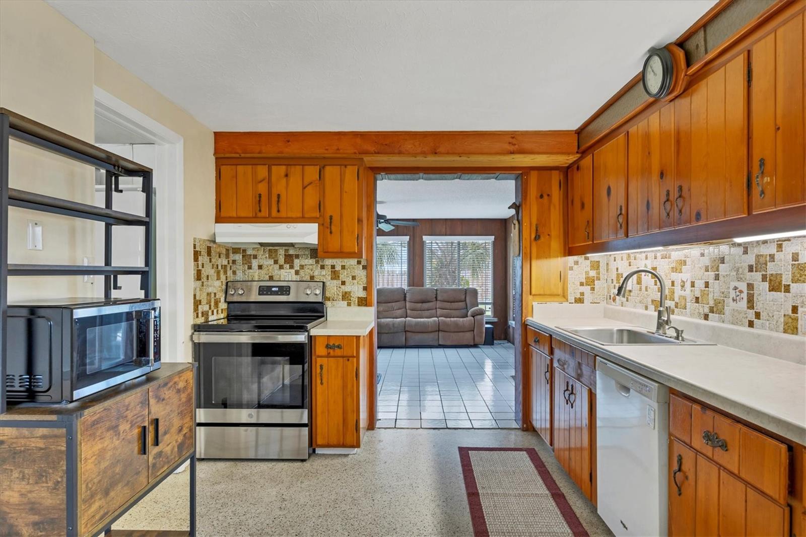 THE POSSIBILITIES ARE ENDLESS!!! Close to everything in Englewood, this charming home is waiting to be your piece of Florida Paradise. Or are you looking for an excellent income property or great first home, this is perfect! Located in South Sarasota County close to shopping, restaurants, entertainment, golf, medical facilities, and local events including the Historic Downtown Englewood with Farmers Market, art shows, car shows, and more. And let’s not forget only a short trip to the beach! When you walk into the welcoming entry way you will feel invited to stay making yourself at home with Old Florida charm. Lots of flexibility with the layout of this house. The bright kitchen with lots of prep space and features warm wood cabinetry. The living room is great for entertaining with a door leading directly to an outside patio deck. Set up the BBQ and get ready to enjoy the fenced yard, beautiful mature landscaping, extra-large driveway and a shed. Updates include: NEW roof (2023), NEW electrical panel (2020) and new AC (2018). NO HOA AND NO CDD!! THIS IS A MUST SEE! MAKE YOUR APPOINTMENT TODAY!