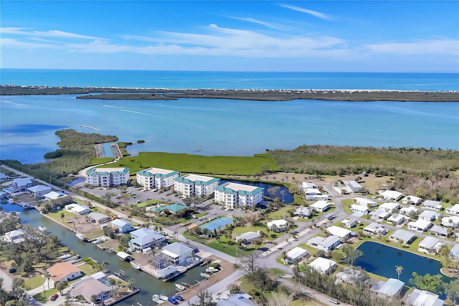 Experience coastal elegance in this meticulously remodeled 3-bedroom, 2.5-bathroom end-unit condo, built in 2003 and boasting unparalleled Gulf Intracoastal Waterway views. Savor breathtaking sunsets and watch boats glide by from your screened lanai, where coastal wildlife thrives and the waterway stretches north to the Gulf of America with no bridges through Stump Pass. Designed for relaxation and entertainment, this recent total remodel condo features all the upgrades expected with coastal living. Porcelain tile flooring, a spacious open kitchen with premium stainless-steel appliances, sleek quartz countertops, modern cabinetry, and a large walk-in pantry. The farmhouse sink, complete with cutting board, drying rack, and disposal, elevates meal prep. The primary suite offers serene bay views, a generous walk-in closet, and lanai access, with a luxurious en-suite bathroom showcasing a Bluetooth-enabled walk-in shower, rain head, marble bench, dual quartz-topped sinks, and a linen closet. A smart split floor plan ensures privacy, with the guest wing housing two bedrooms and a full bathroom, while a versatile bonus den serves as an office or flex space. Fresh paint, new lighting, fans, doors, and trim enhance the modern aesthetic, complemented by a convenient half bath for guests. The gated community offers resort-style amenities, including a heated pool and spa, fitness-equipped clubhouse, nature trails, tennis and pickleball courts, a grill area, private fishing pier, and a 38-slip marina with boat slips available for purchase or lease (inquire for details). Ground-floor parking includes two private spaces with locked storage cages for outdoor gear, and spacious elevators. Just minutes from Gulf beaches, enjoy fishing, boating, kayaking, or swimming, with vibrant local dining, music, and entertainment nearby. Located 5 minutes from Boca Grande, 40 minutes from Punta Gorda Regional Airport, and 60 minutes from Sarasota International Airport, this serene retreat blends luxury and convenience. Schedule your private tour today!