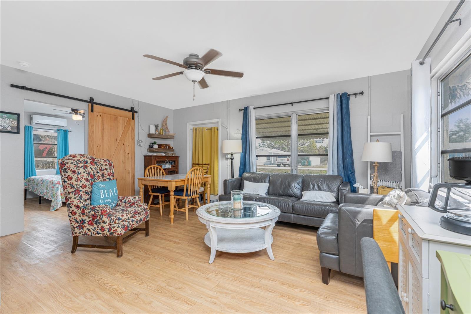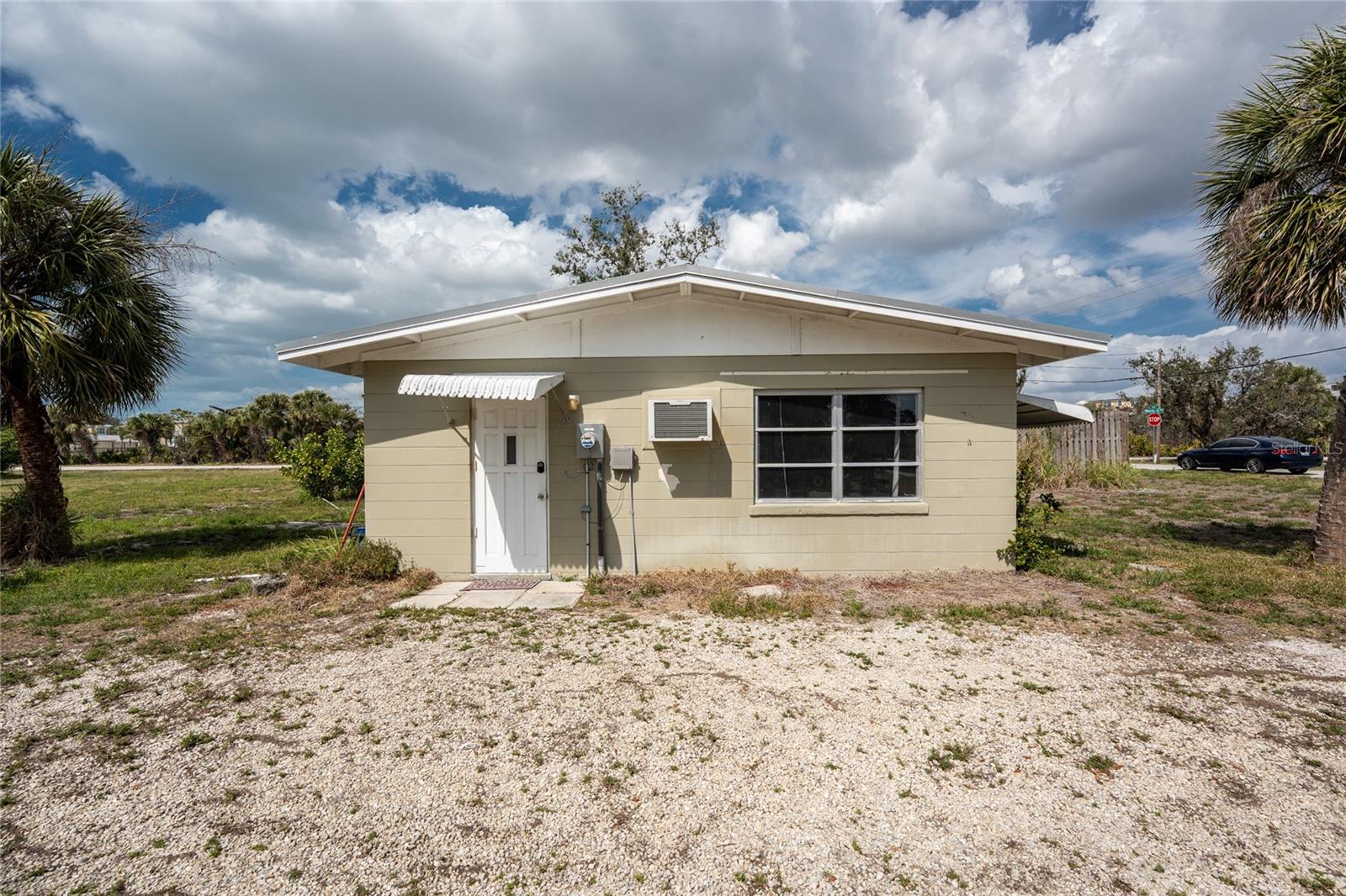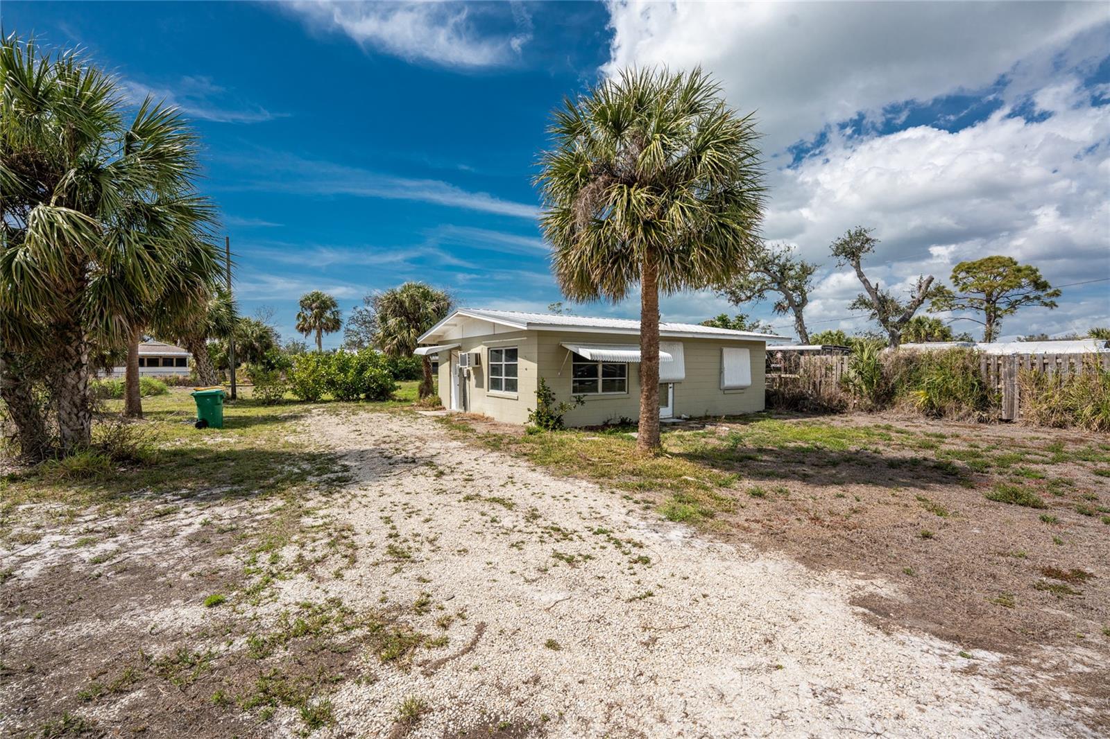 CAN YOU BELIEVE THIS PRICE? Cute "old Florida" style cottage in a tucked away spot just off Placida Road! No deed restrictions or mandatory HOA'S! Updated vinyl flooring throughout. Kitchen comes equipped with a Frigidaire refrig and a GE smooth top stove. Stylish "barn door" to Bedroom #1, which has a ceiling fan and wall closet. Bedroom #2 has the same. Each bedroom has a mini spit AC, that was installed after 2022. The bathroom is nicely updated with a Roman shower, new toilet, vanity w/granite top and linen closet. Metal roof was new in 2016, so you don't have to worry that for a long time! Electric service was upgraded to a 200 amp system, with a Square D electrical panel. Tankless water heater so hot water on demand! Also, adjoining house for sale by the same sellers - house at 2191 Williamsburg Way, MLS #D6141077! Own your own little family compound! This is a great location, just across the street from the Palm Harbor Marina and close to either Boca Grande or Englewood beaches, public boat ramps, great fishing, shopping, restaurants and so much more.