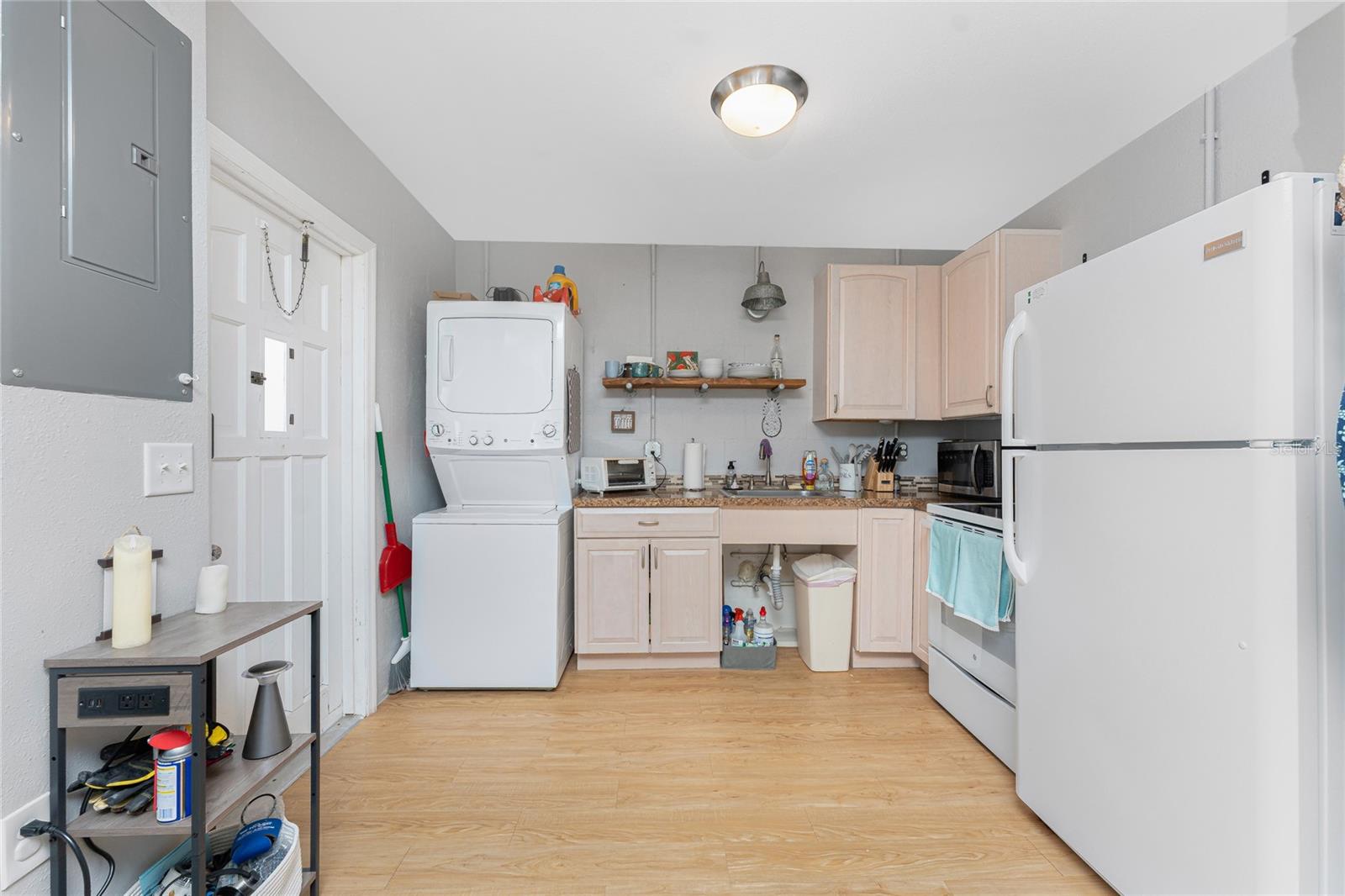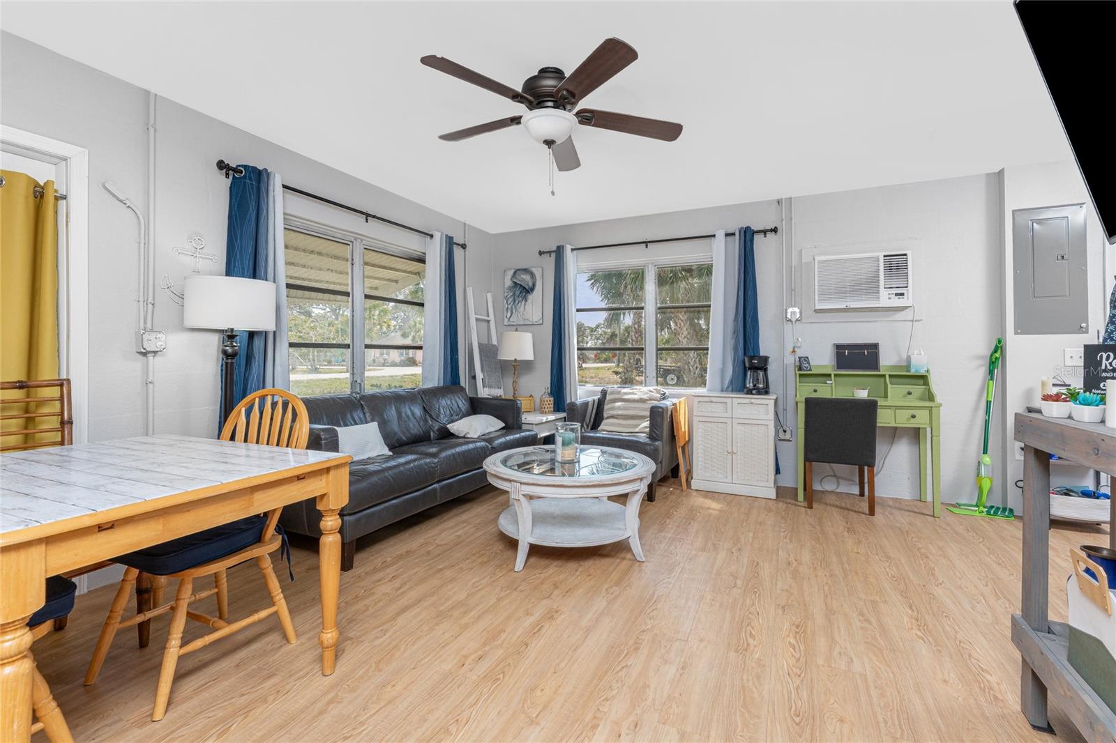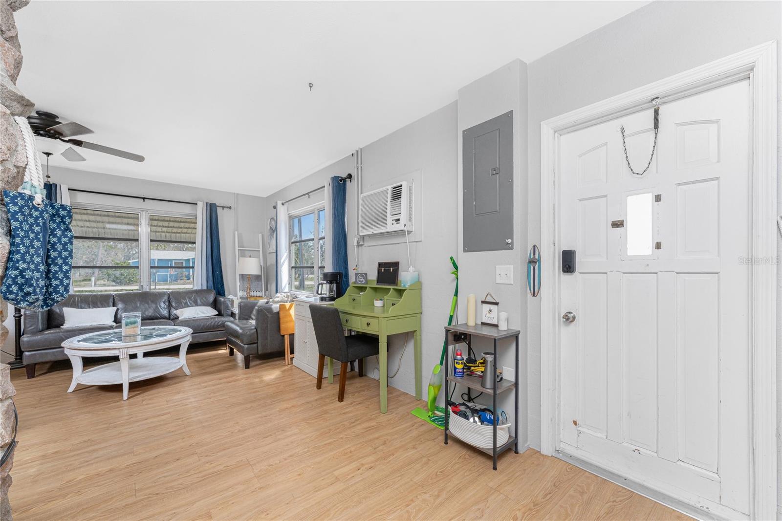 CAN YOU BELIEVE THIS PRICE? Cute "old Florida" style cottage in a tucked away spot just off Placida Road! No deed restrictions or mandatory HOA'S! Updated vinyl flooring throughout. Kitchen comes equipped with a Frigidaire refrig and a GE smooth top stove. Stylish "barn door" to Bedroom #1, which has a ceiling fan and wall closet. Bedroom #2 has the same. Each bedroom has a mini spit AC, that was installed after 2022. The bathroom is nicely updated with a Roman shower, new toilet, vanity w/granite top and linen closet. Metal roof was new in 2016, so you don't have to worry that for a long time! Electric service was upgraded to a 200 amp system, with a Square D electrical panel. Tankless water heater so hot water on demand! Also, adjoining house for sale by the same sellers - house at 2191 Williamsburg Way, MLS #D6141077! Own your own little family compound! This is a great location, just across the street from the Palm Harbor Marina and close to either Boca Grande or Englewood beaches, public boat ramps, great fishing, shopping, restaurants and so much more.