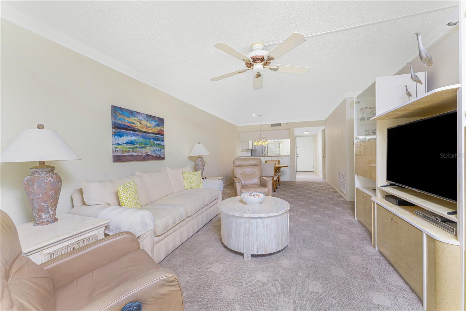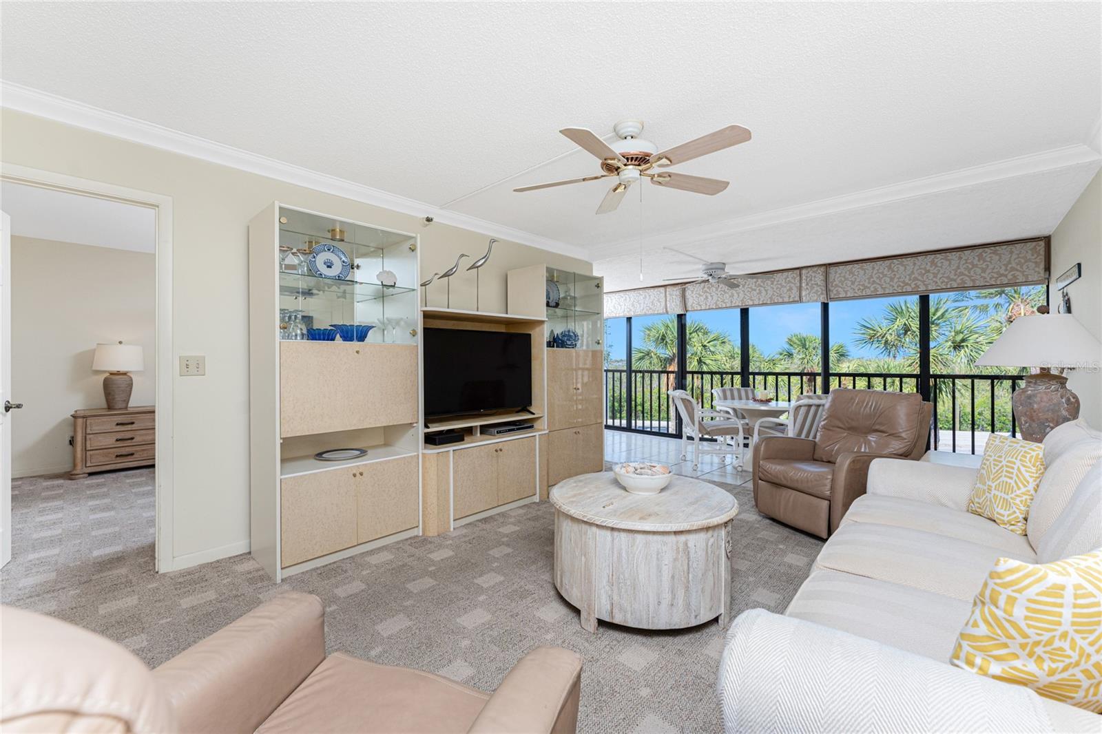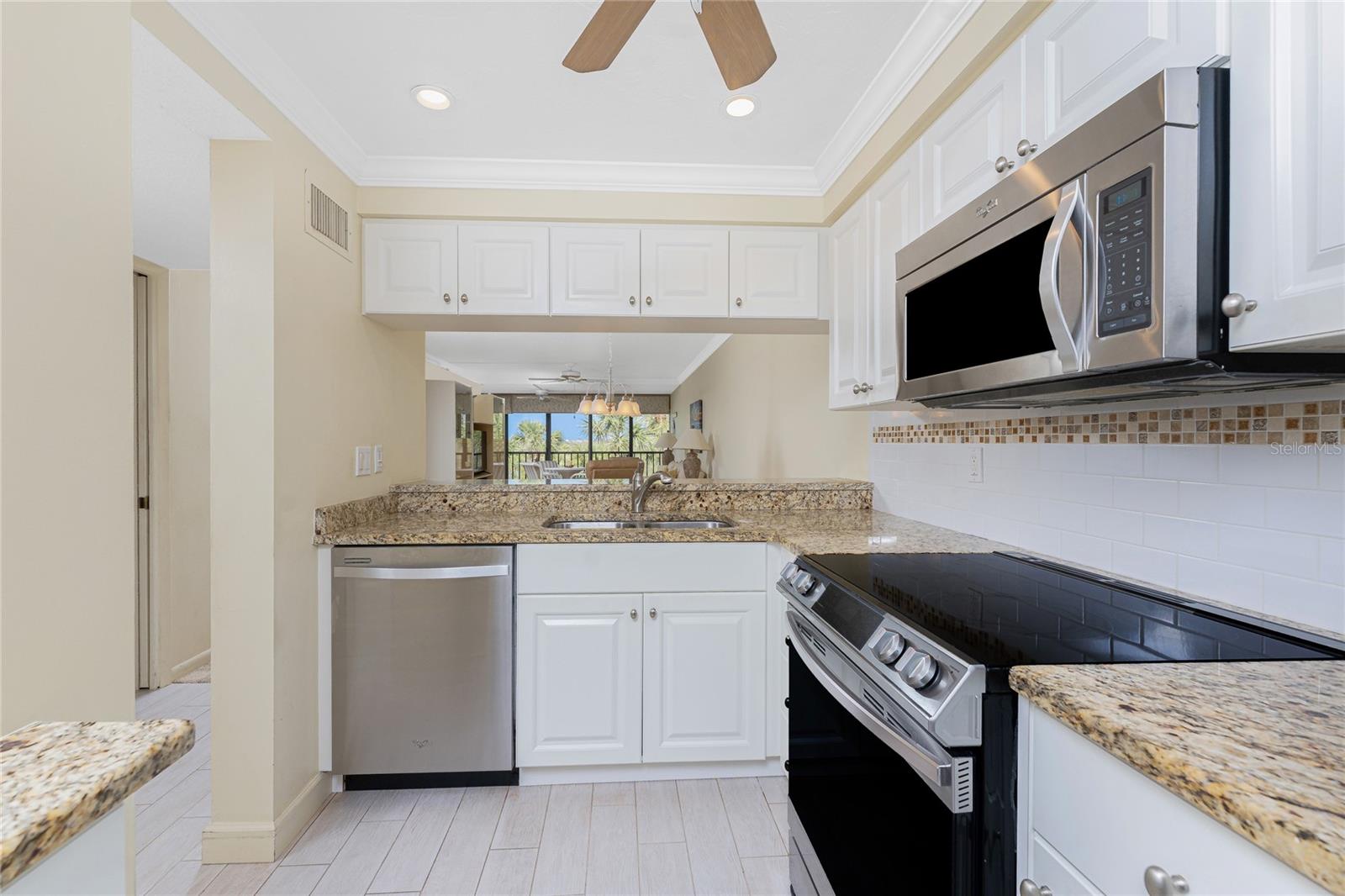 Experience the ultimate coastal lifestyle at Sandpiper Key, just a half mile from Englewood Beach, restaurants, tiki bars, and breathtaking nightly sunsets. This beautifully maintained, turnkey-furnished 2-bedroom, 2-bath condominium is light and bright, offering a perfect retreat for the winter season or year-round living. Step inside to find a well-appointed kitchen featuring white cabinetry, stainless steel appliances, and granite countertops with a raised bar. The dining space, entertainment center with a built-in bar and extra storage, and enclosed lanai create an inviting area to relax or entertain. The lanai, enclosed to extend the living room, includes sliding glass doors so you can enjoy the sea breeze whenever you choose. The ensuite primary bedroom offers a walk-in closet, bifold doors leading to the enclosed lanai, and a spacious bath with dual granite-topped vanities and a large tiled walk-in shower with glass doors. The guest bedroom also features a reach-in closet, while the guest bath provides a granite-topped vanity and a convenient shower/tub combination. A designated closet includes a stackable washer and dryer for convenience. Additional highlights include crown molding in the main living areas and kitchen, a brand-new 2024 hot water heater, and newly replaced lanai screens. Sandpiper Key is a vibrant pet friendly community with multiple picnic areas, gas and charcoal grills, two heated Bayfront pools, and a clubhouse with social activities. Boat docks at the Sandpiper Key Yacht Club, located just across the street, are available for purchase separately when they become available. With easy access via walking, biking, or golf cart to local dining, live entertainment, and waterfront fun, this is the perfect place to enjoy the beach life. Contact us today to schedule your private showing!