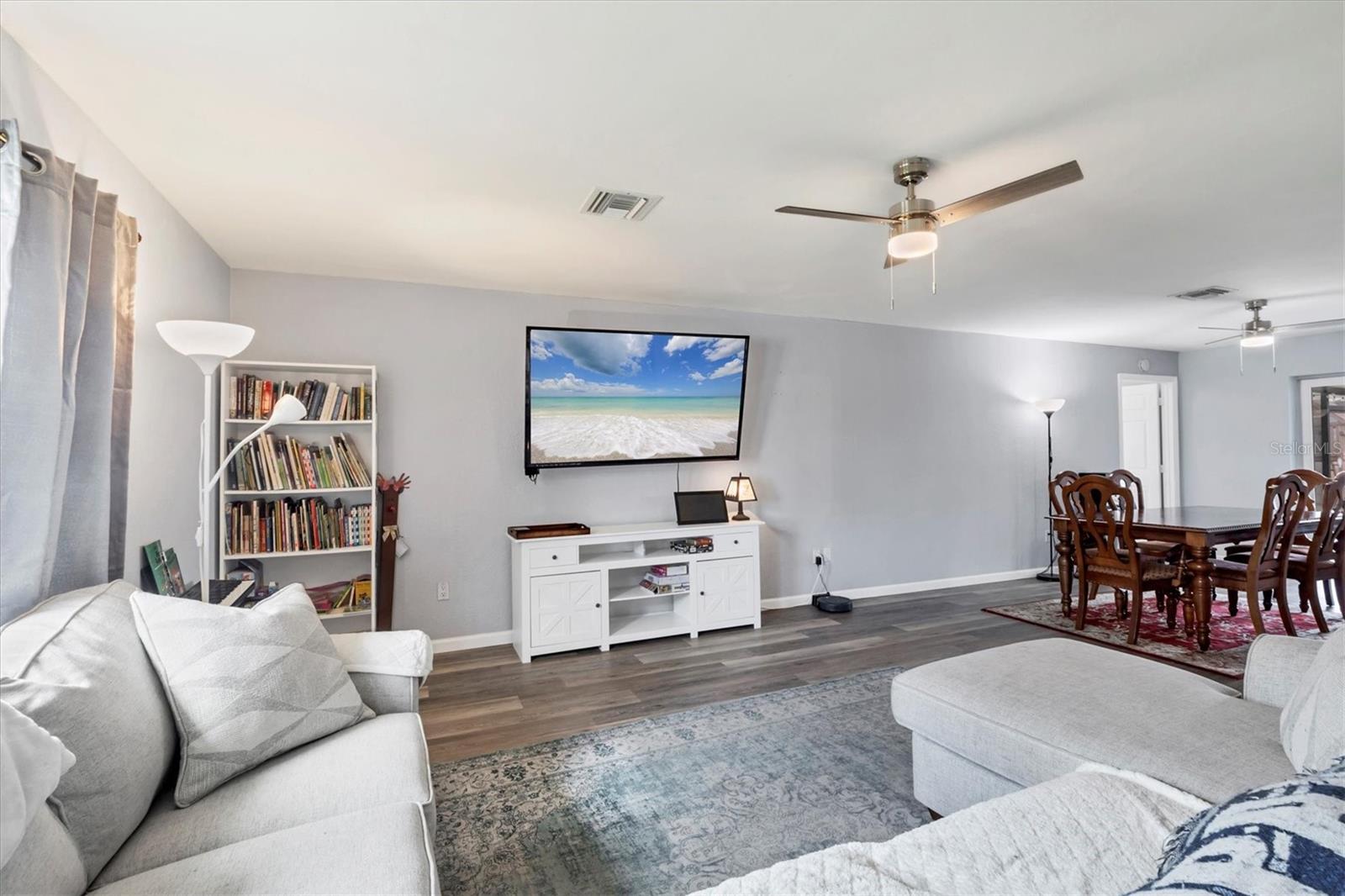 Welcome to the ideal home for owners, or investors, who value abundant space and low restrictions! Situated on an oversized lot that neighbors undeveloped land, the phrase “wide open spaces” comes to mind. Upon entry, guests will step into a cozy and welcoming environment that encourages relaxation and comfortable conversations. With both a living room and a bonus family room, connected by a spacious kitchen with generous cabinet storage and a pantry closet featuring built-in shelving, this home is a host’s haven. Step just outside the dining room to a large, screened, lanai that overlooks a fully fenced backyard that is home to a quality wooden swing-set that is sure to provide hours of fun for residents or guests to enjoy. An additional wooden deck provides more options for al fresco entertainment, while a split floorplan offers optimal privacy while hosting guests in your new Florida home. The primary suite provides direct access to the backyard and is built for comfort, with more than enough space for a king-sized bed and more room for extra seating or a quiet work-from-home set up. Connected by a short passthrough hall with a walk-in closet, the ensuite bathroom houses a double vanity and oversized linen closet, while the additional two bedrooms are convenient to the home’s second bathroom. Set just off of the kitchen a laundry and utility room leads to the attached garage, ideal for all your outdoor beach toys and more! An oversized driveway offers ample parking for residents and guests while a second parking pad, and NO HOA, invites you to bring your boat or RV. For additional peace of mind, the house sits in the desirable X-Flood Zone and the roof, A/C, and water heater have all been replaced within the past two years. Located just under 6 miles from beautiful Gulf beaches, less than 2.5 miles from Ann and Chuck Dever Regional Park Pool, and convenient to multiple boat launches, hiking and biking trails, golf courses, shopping and dining, and entertainment venues; you really can have it all! If unlimited fun in the sun is more your speed, there is room for the addition of a private pool. This family home has been lovingly updated and is ready for the next homeowner(s) to put in the finishing touches to suit their needs. If a Florida lifestyle, in a spacious home, with no HOA and a yard that the kids, pets, or the privacy-minded would go wild over piques your interest, call today for your private showing and let us get you from where you are, to where you want to be!