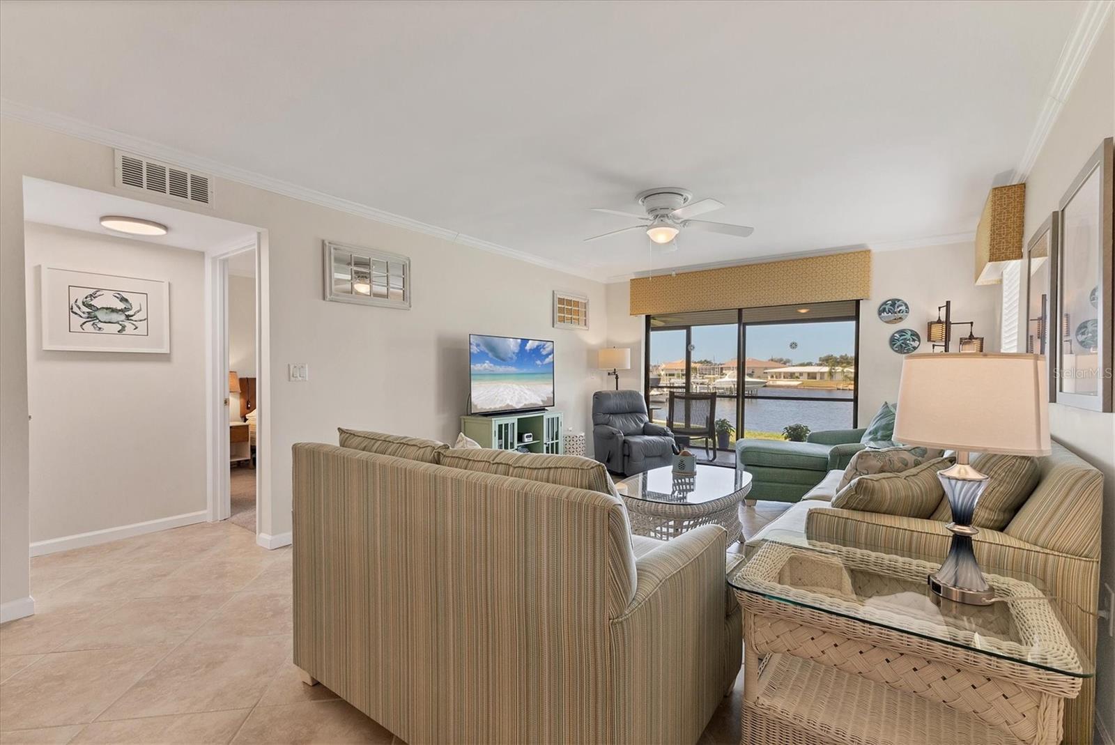 Marina Isles - centrally located first floor condo with rare garage, available now for purchase. Now is your chance to wake up every day to beautiful water and Marina views and enjoy local wildlife and sunsets. Being sold turnkey furnished and equipped ready for waterfront living, this lovely condo offers freshly painted interiors, kitchen with stainless appliances, tile flooring in the living areas and new carpeting in the bedrooms. Large screened in lanai overlooks the water and the Marina. For added security there are storm shutters which easily pull down on the lanai. The lanai also has two storage closets with power and lighting. Marina Isles is a friendly and active community with lots of open green space, no crowds or through traffic. Centrally located between Venice and Englewood, Englewood Isles is about 3 miles to Manasota Beach and also has easy access to Englewood Beach. Enjoy all the area has to offer from great beaches, farmers markets, spring training baseball, golfing and much more! The condo fee also includes water, sewer, cable and internet. There is also a nice community pool and hot tub. The pool area also serves as gathering place for dinners, holiday celebrations, card games etc. on the covered patio. Boat slips may be available for purchase or rent at the Marina. Jump in your boat and be out in the intracoastal in minutes with no bridges.Make your appointment to view this lovely unit soon or it may be too late.