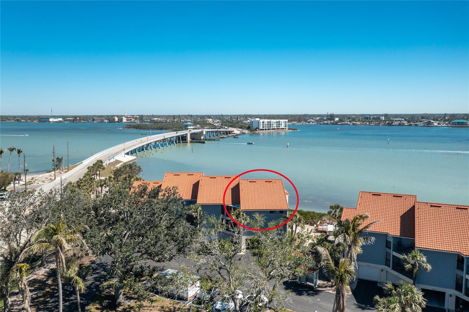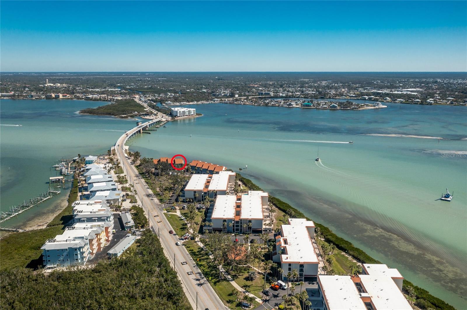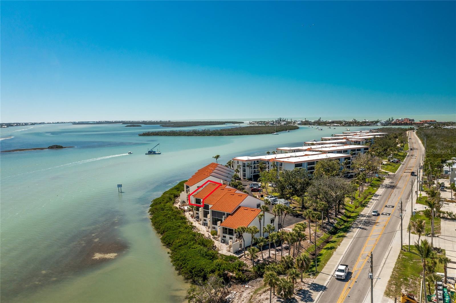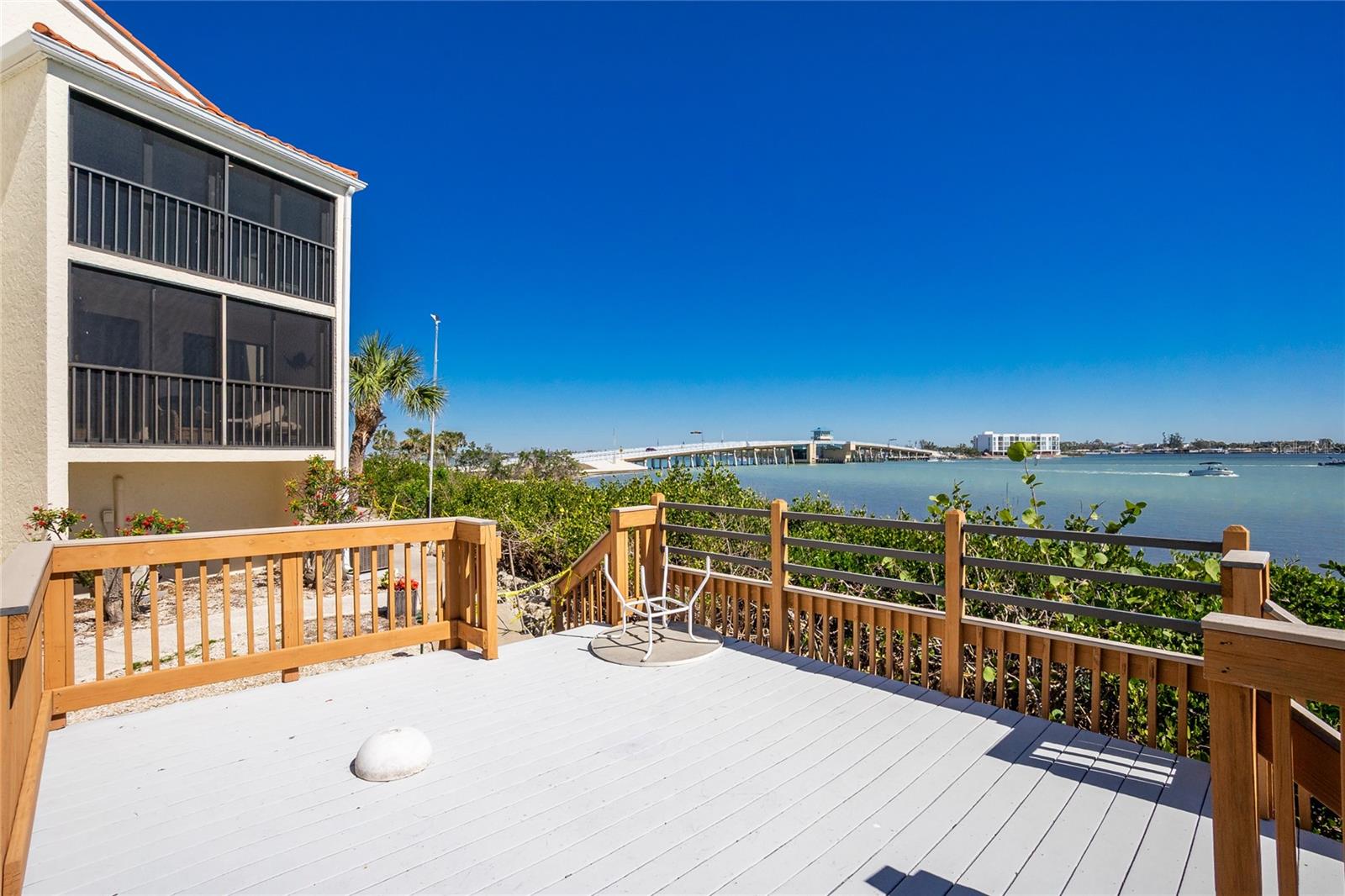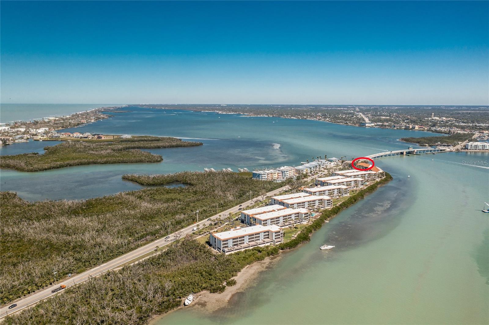 SANDPIPER SWEETHEART! This 2 BEDROOM, 2 BATH, 1 CAR GARAGE CONDO has FANTASTIC PANORAMIC VIEWS OF LEMON BAY, THE TOM ADAMS BRIDGE & THE INTRACOASTAL WATERWAY. The view provides non-stop entertainment including lots of boat traffic, dolphins, manatees, birds and SPECTACULAR SUNRISES. It is a TOP-FLOOR END UNIT giving you a rare and beautiful 180 DEGREE VIEW. The Wow factor starts as you walk in the front door into the GREAT ROOM with its CATHEDRAL CEILINGS where the living, dining and kitchen areas all seamlessly blend together. There is newer carpet throughout the condo with attractive wood like laminate in the kitchen, dining area and sitting area. The patios have been enclosed in the living area and the primary bedroom which add to the living space. The kitchen is gorgeous with soft/self close wooden cabinets, granite countertops, stainless steel appliances and beautiful backsplash. Both bedrooms are nicely sized and the primary bathroom has a new glass shower door. At ground level is your 1 car garage and laundry area. There is also a bonus room and an extra full bath. For added peace of mind the unit has IMPACT GLASS and the A/C was replaced in 2023/24 and has a 10 year warranty. Sandpiper Key is a wonderful 200 unit community with manicured grounds, two waterfront pools, outdoor grills, and active clubhouse. You are a short walk/bike ride to Manasota Key/Englewood Beach where you will find wonderful dining and entertainment options. Shopping on the mainland is only a 5 minute drive. As they say ... it's all about LOCATION, LOCATION,LOCATION! Make your appointment to see this great property today ... you won't be disappointed.
