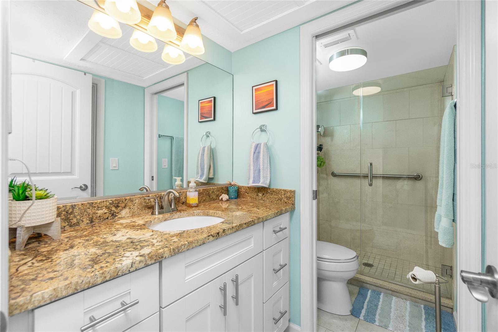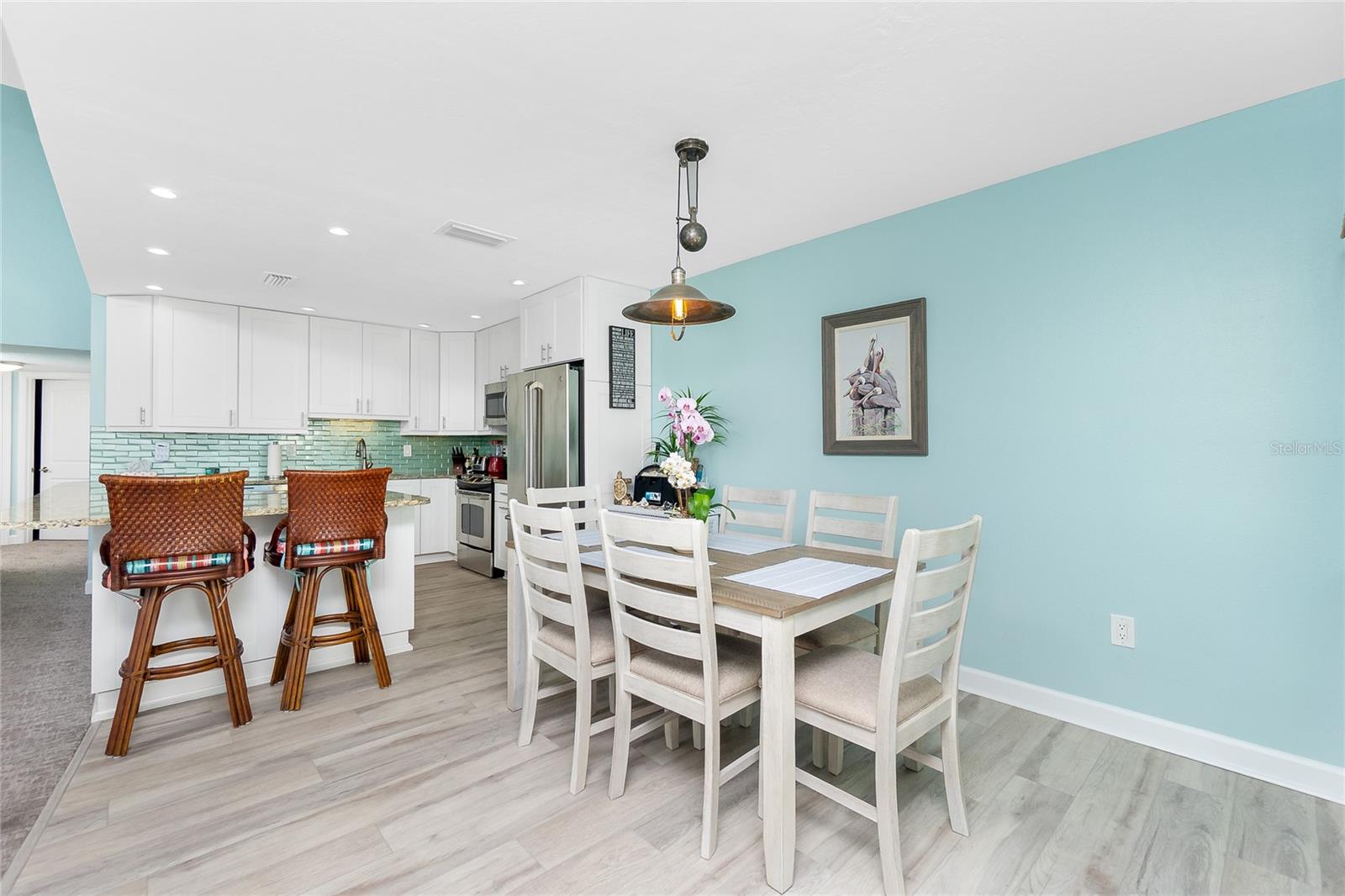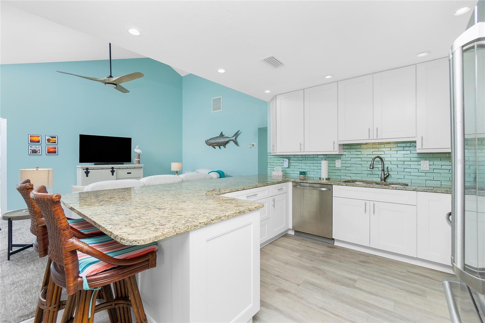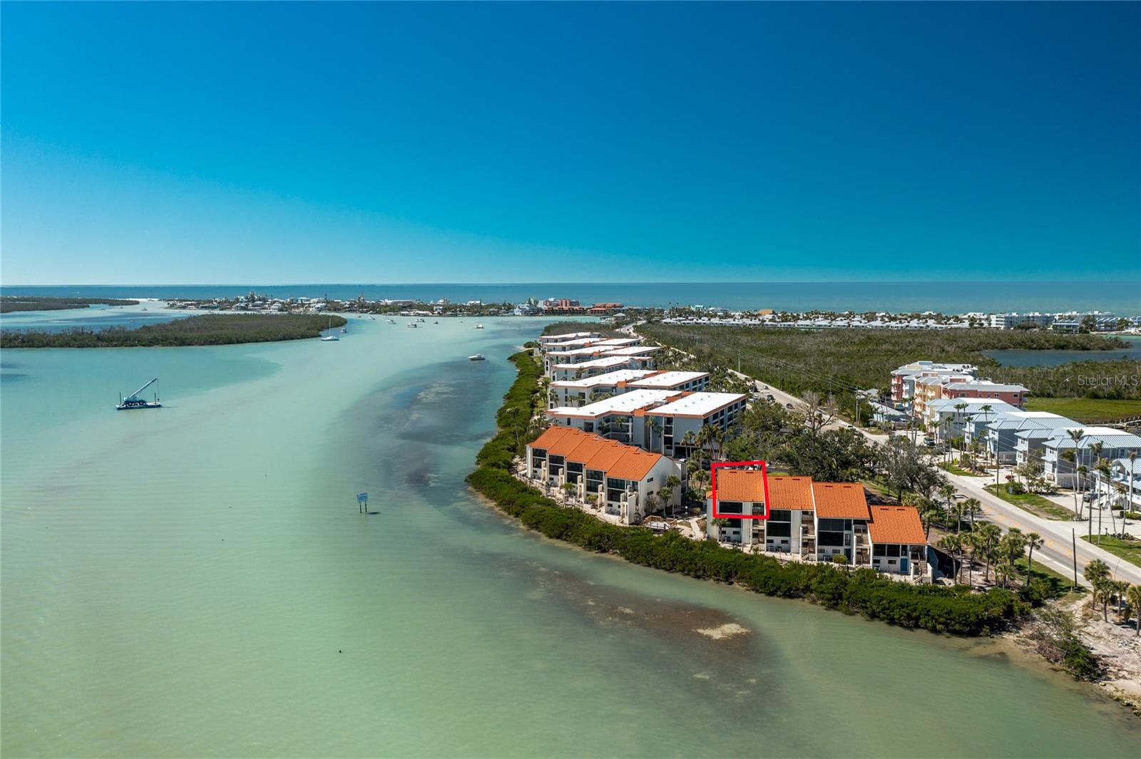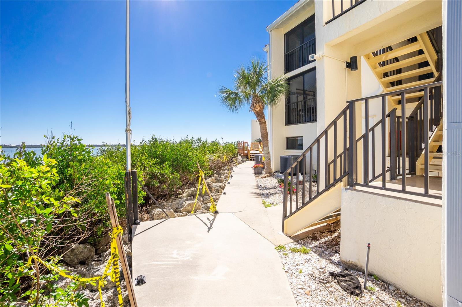 SANDPIPER SWEETHEART! This 2 BEDROOM, 2 BATH, 1 CAR GARAGE CONDO has FANTASTIC PANORAMIC VIEWS OF LEMON BAY, THE TOM ADAMS BRIDGE & THE INTRACOASTAL WATERWAY. The view provides non-stop entertainment including lots of boat traffic, dolphins, manatees, birds and SPECTACULAR SUNRISES. It is a TOP-FLOOR END UNIT giving you a rare and beautiful 180 DEGREE VIEW. The Wow factor starts as you walk in the front door into the GREAT ROOM with its CATHEDRAL CEILINGS where the living, dining and kitchen areas all seamlessly blend together. There is newer carpet throughout the condo with attractive wood like laminate in the kitchen, dining area and sitting area. The patios have been enclosed in the living area and the primary bedroom which add to the living space. The kitchen is gorgeous with soft/self close wooden cabinets, granite countertops, stainless steel appliances and beautiful backsplash. Both bedrooms are nicely sized and the primary bathroom has a new glass shower door. At ground level is your 1 car garage and laundry area. There is also a bonus room and an extra full bath. For added peace of mind the unit has IMPACT GLASS and the A/C was replaced in 2023/24 and has a 10 year warranty. Sandpiper Key is a wonderful 200 unit community with manicured grounds, two waterfront pools, outdoor grills, and active clubhouse. You are a short walk/bike ride to Manasota Key/Englewood Beach where you will find wonderful dining and entertainment options. Shopping on the mainland is only a 5 minute drive. As they say ... it's all about LOCATION, LOCATION,LOCATION! Make your appointment to see this great property today ... you won't be disappointed.