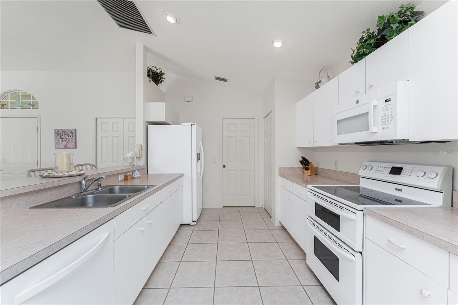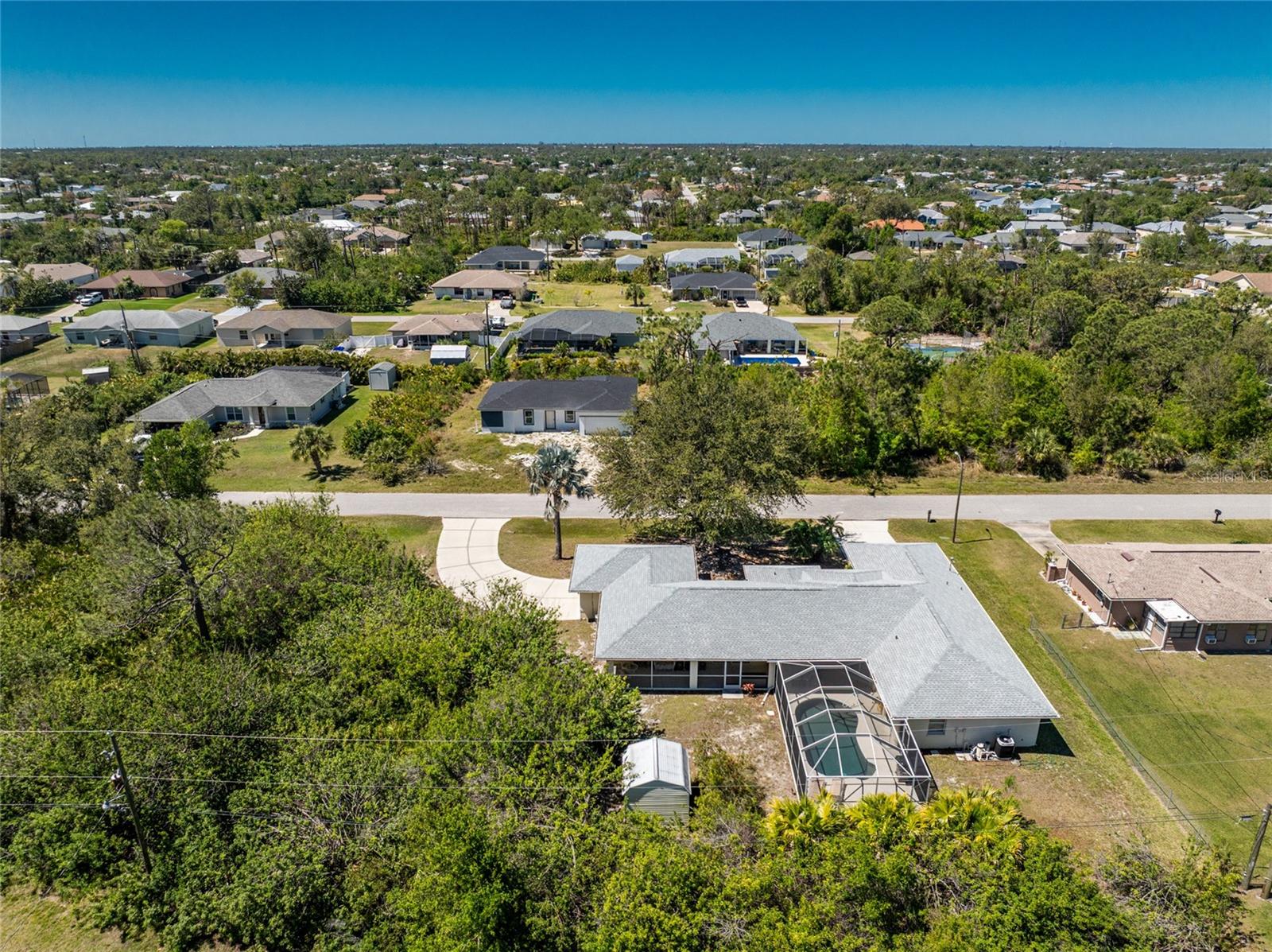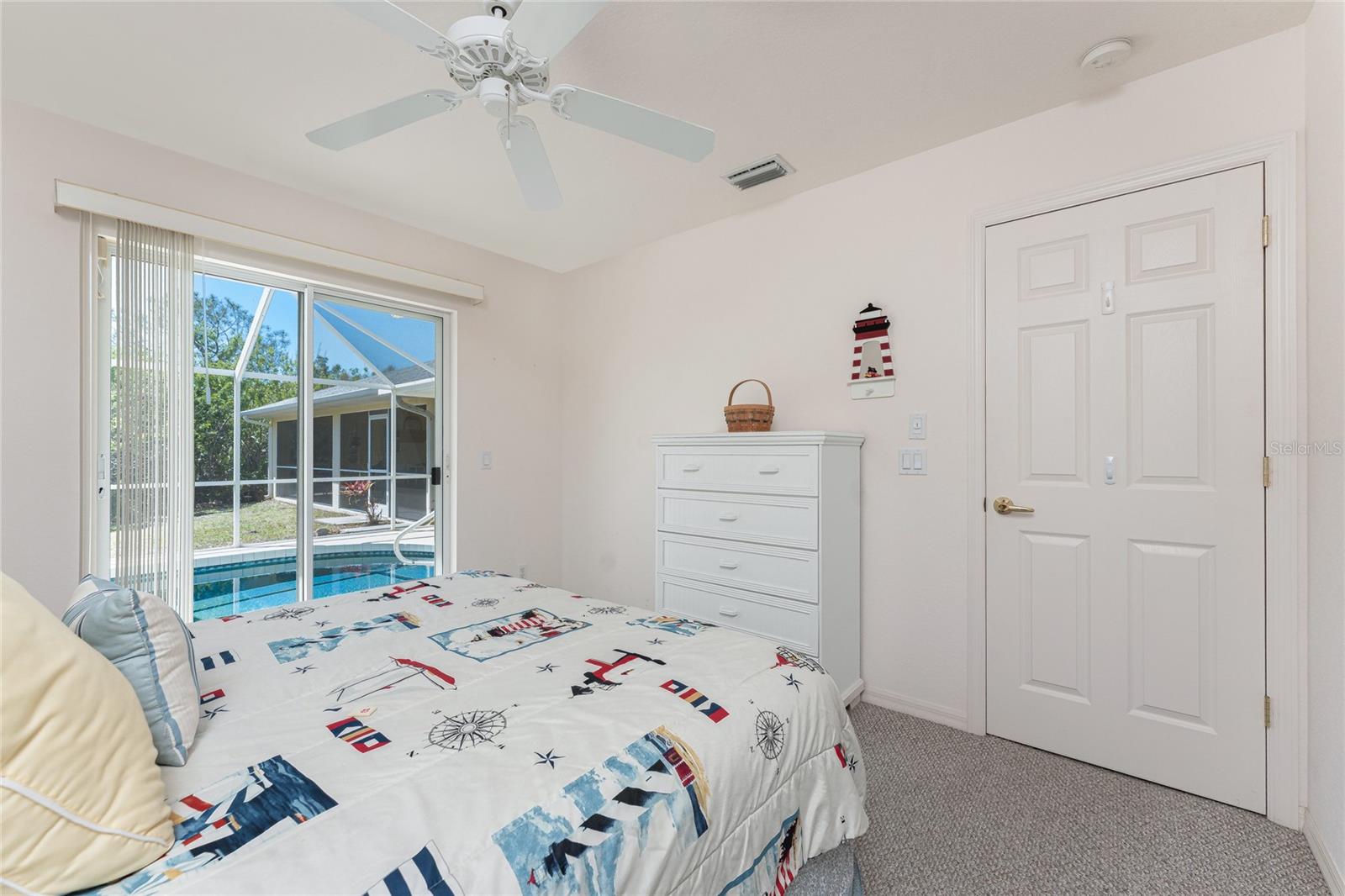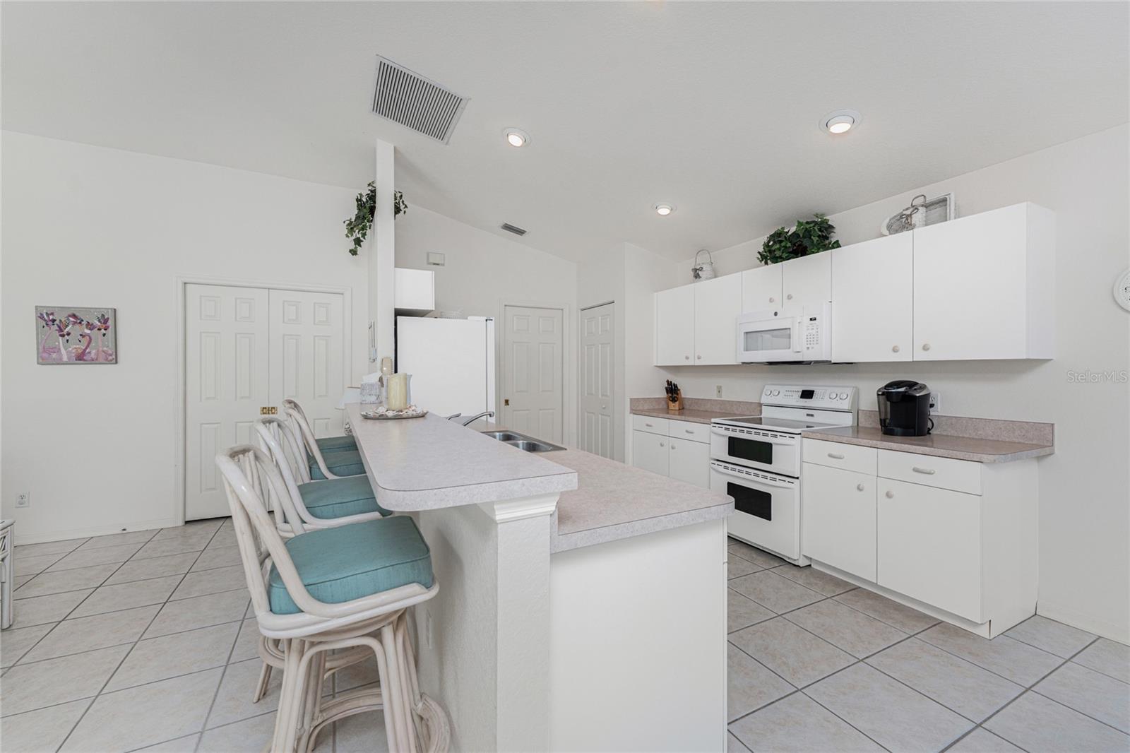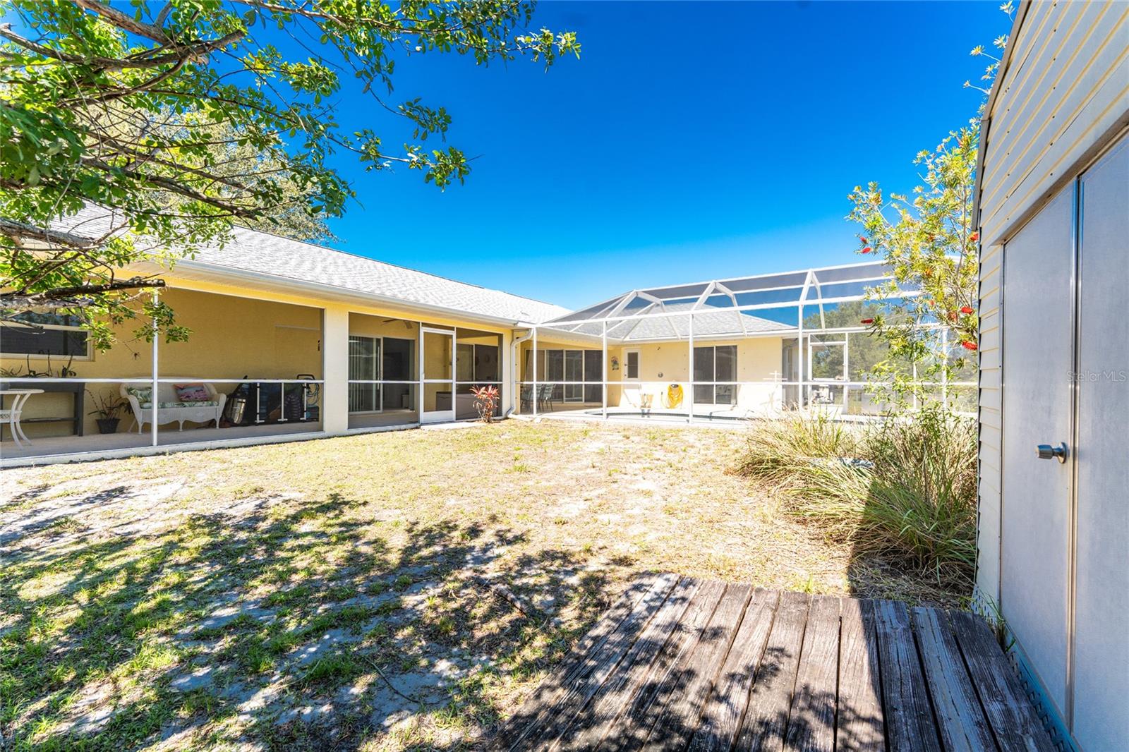 METICULOUSLY MAINTAINED HOME seated on a DOUBLE LOT with TWO ATTACHED GARAGES, & ONE OWNER, offers everything you could want -- and much more! From the dual-zoned A/C, new roof (2023), hurricane impact windows, X Flood zone, and FULLY FURNISHED-- when you arrive, you'll never want to leave. As you approach the front door, you are warmly welcomed with a screened-in front porch and stepping inside, the open floor plan with 12 foot vaulted ceilings and neutral color scheme awaits..... The great room provides the perfect space for entertaining with a spacious living room, dining area, and kitchen that features ample cabinets & countertop space, white appliances, a breakfast bar, recessed lighting, closet pantry, and access to the large laundry room with a pocketing door. The main living areas have easy to maintain tile that flows throughout most of the home. Easily expand your living space outdoors with triple pocketing sliding glass doors that lead outside to your EXPANSIVE (52' x 8') covered lanai encompassing the back of the home and accessible through 4 different sets of pocketing sliding glass doors, and if that's not enough there's an additional (36' x 19') lanai with a screen enclosure and your 24' HEATED POOL with upgraded Pebble Tec interior & new pool pump, surrounded by trees making this your private backyard oasis! There's plenty of room inside with a split bedroom floor plan providing privacy for everyone. The owner's suite is truly a "retreat" with a large bedroom, private access to the lanai and pool areas, a walk-in closet with a door to the second double car garage, and best of all a hobby room currently being used as a sewing/crafts area, that be utilized for a number of things and even an additional walk-in closet. The second walk-in closet leads to the primary bathroom that has ample cabinet space, large vanity, a roomy shower, and a door that leads to the bonus room which can be used as a home office, additional sitting area, man/woman cave, or space for your guests--with access to the pool area, the possibilities are endless! On the other side of the home are the two guest bedrooms--one with private access to the pool area, and both bedrooms feature quality carpeting, walk-in closets, and ceiling fans. The guest bath doubles as a POOL BATH with a shower/tub combo and lots of cabinets. Lets not forget about the TWO double car garages, one (24' x 20') and the second garage (21' x 19') this home offers an abundance of storage both inside and out! The (10' x 10') shed is the icing on the cake providing a workshop or MORE storage. There are SO many opulent features this home offers you must come see it for yourself! Just minutes away from world-class Gulf beaches, amazing fishing, numerous golf courses, bike trails, farmers markets and a wide selection of restaurants and quaint shops. You don't want to hesitate, you can make this your Florida oasis!