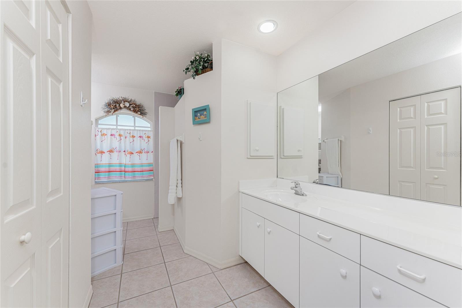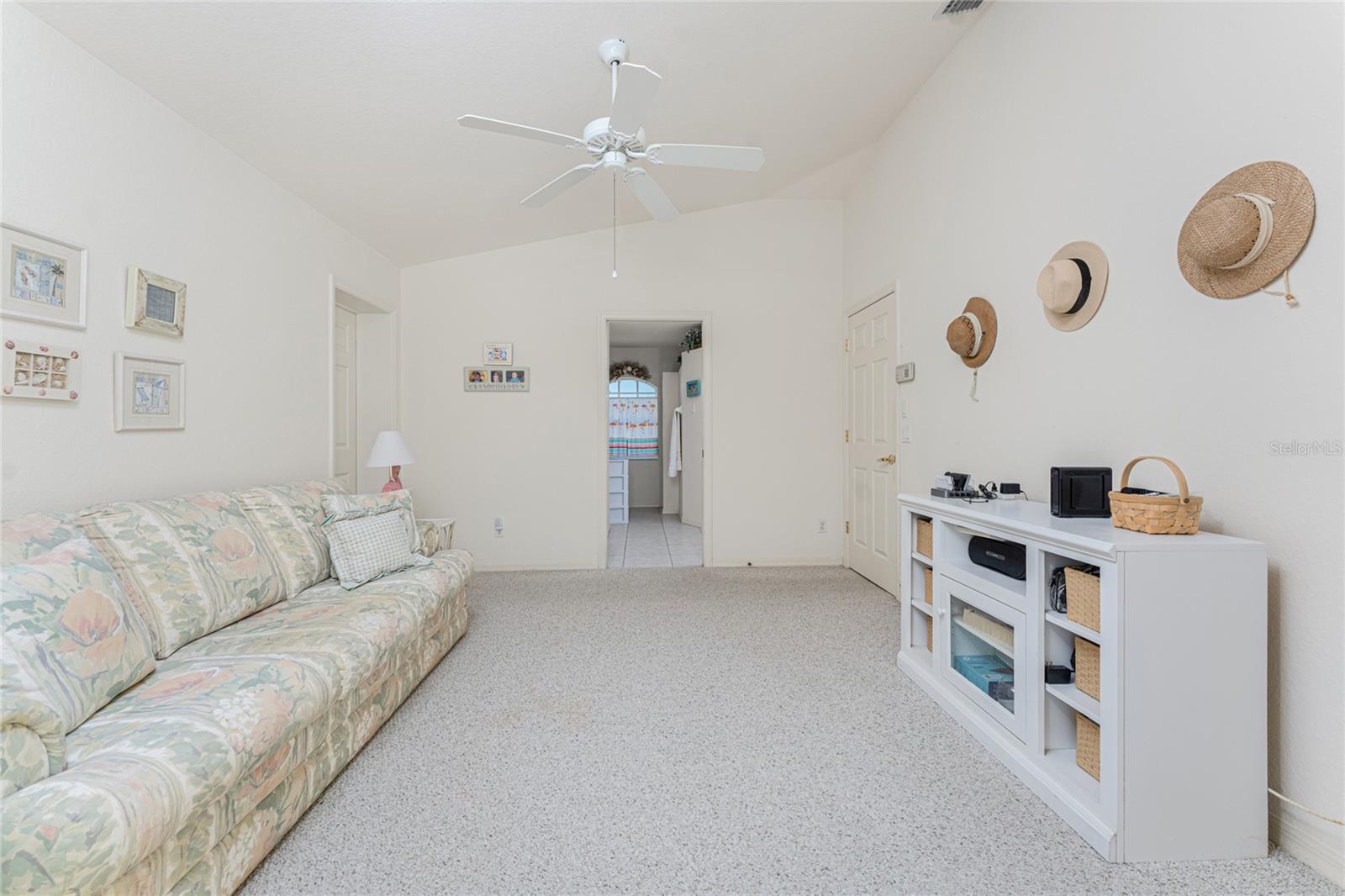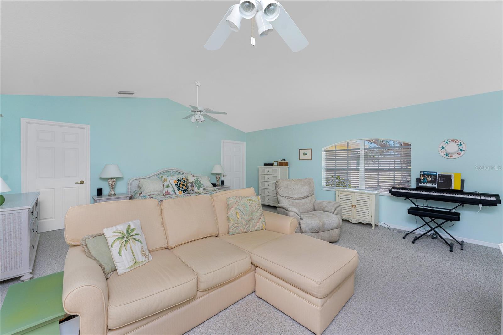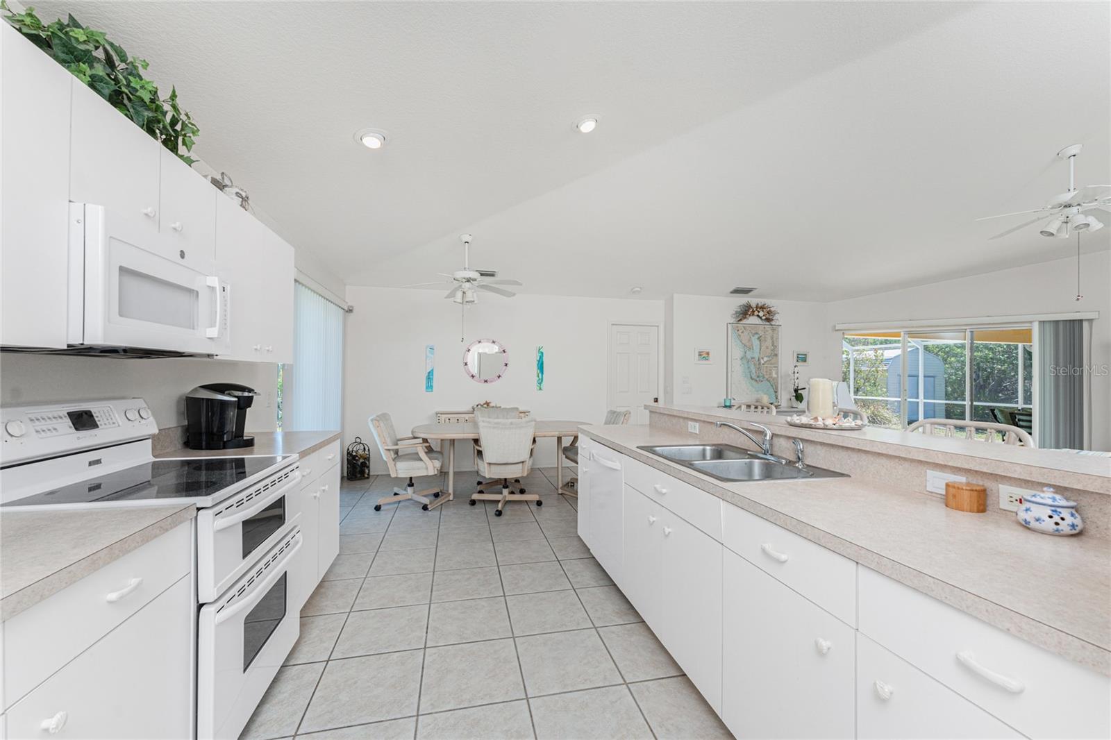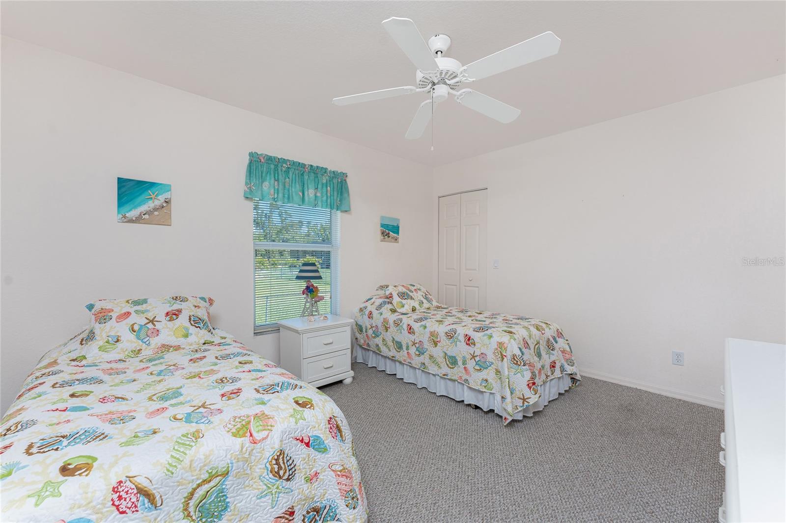 METICULOUSLY MAINTAINED HOME seated on a DOUBLE LOT with TWO ATTACHED GARAGES, & ONE OWNER, offers everything you could want -- and much more! From the dual-zoned A/C, new roof (2023), hurricane impact windows, X Flood zone, and FULLY FURNISHED-- when you arrive, you'll never want to leave. As you approach the front door, you are warmly welcomed with a screened-in front porch and stepping inside, the open floor plan with 12 foot vaulted ceilings and neutral color scheme awaits..... The great room provides the perfect space for entertaining with a spacious living room, dining area, and kitchen that features ample cabinets & countertop space, white appliances, a breakfast bar, recessed lighting, closet pantry, and access to the large laundry room with a pocketing door. The main living areas have easy to maintain tile that flows throughout most of the home. Easily expand your living space outdoors with triple pocketing sliding glass doors that lead outside to your EXPANSIVE (52' x 8') covered lanai encompassing the back of the home and accessible through 4 different sets of pocketing sliding glass doors, and if that's not enough there's an additional (36' x 19') lanai with a screen enclosure and your 24' HEATED POOL with upgraded Pebble Tec interior & new pool pump, surrounded by trees making this your private backyard oasis! There's plenty of room inside with a split bedroom floor plan providing privacy for everyone. The owner's suite is truly a "retreat" with a large bedroom, private access to the lanai and pool areas, a walk-in closet with a door to the second double car garage, and best of all a hobby room currently being used as a sewing/crafts area, that be utilized for a number of things and even an additional walk-in closet. The second walk-in closet leads to the primary bathroom that has ample cabinet space, large vanity, a roomy shower, and a door that leads to the bonus room which can be used as a home office, additional sitting area, man/woman cave, or space for your guests--with access to the pool area, the possibilities are endless! On the other side of the home are the two guest bedrooms--one with private access to the pool area, and both bedrooms feature quality carpeting, walk-in closets, and ceiling fans. The guest bath doubles as a POOL BATH with a shower/tub combo and lots of cabinets. Lets not forget about the TWO double car garages, one (24' x 20') and the second garage (21' x 19') this home offers an abundance of storage both inside and out! The (10' x 10') shed is the icing on the cake providing a workshop or MORE storage. There are SO many opulent features this home offers you must come see it for yourself! Just minutes away from world-class Gulf beaches, amazing fishing, numerous golf courses, bike trails, farmers markets and a wide selection of restaurants and quaint shops. You don't want to hesitate, you can make this your Florida oasis!