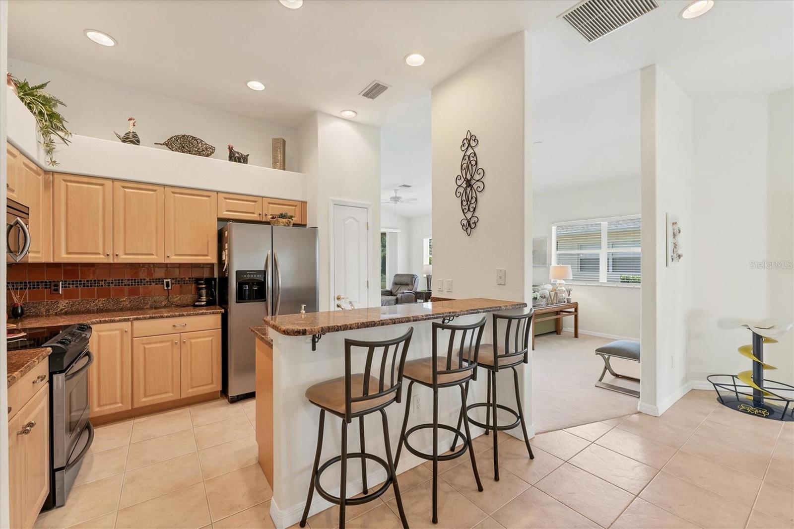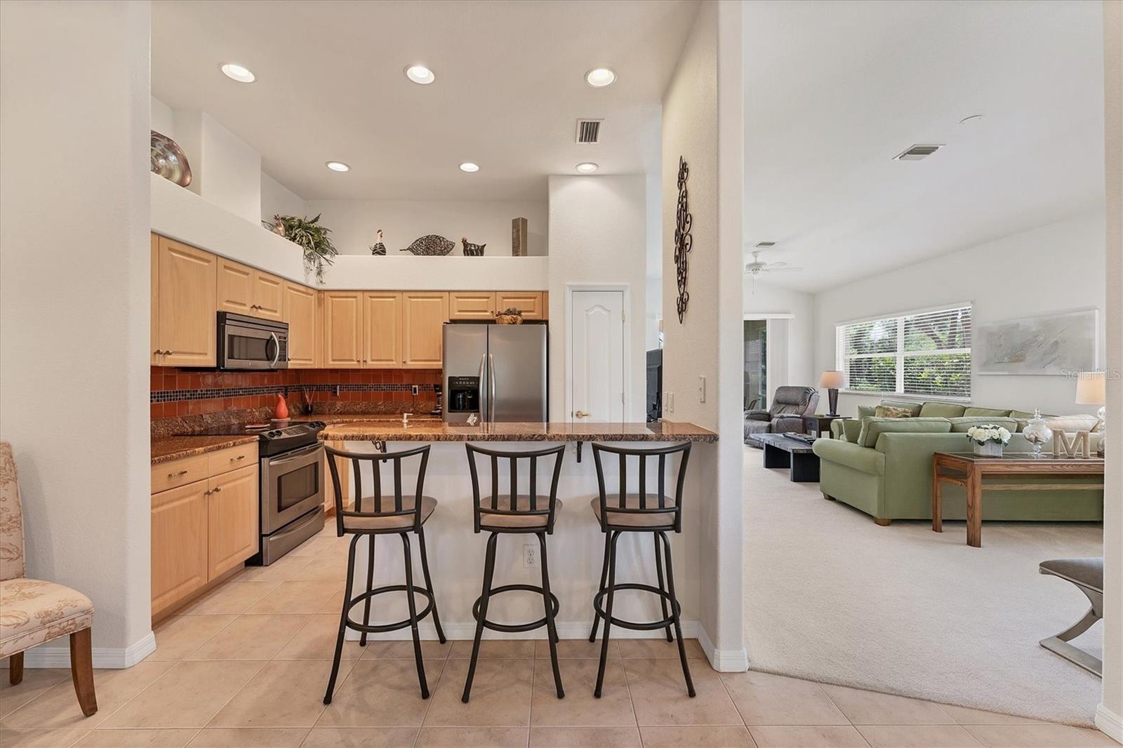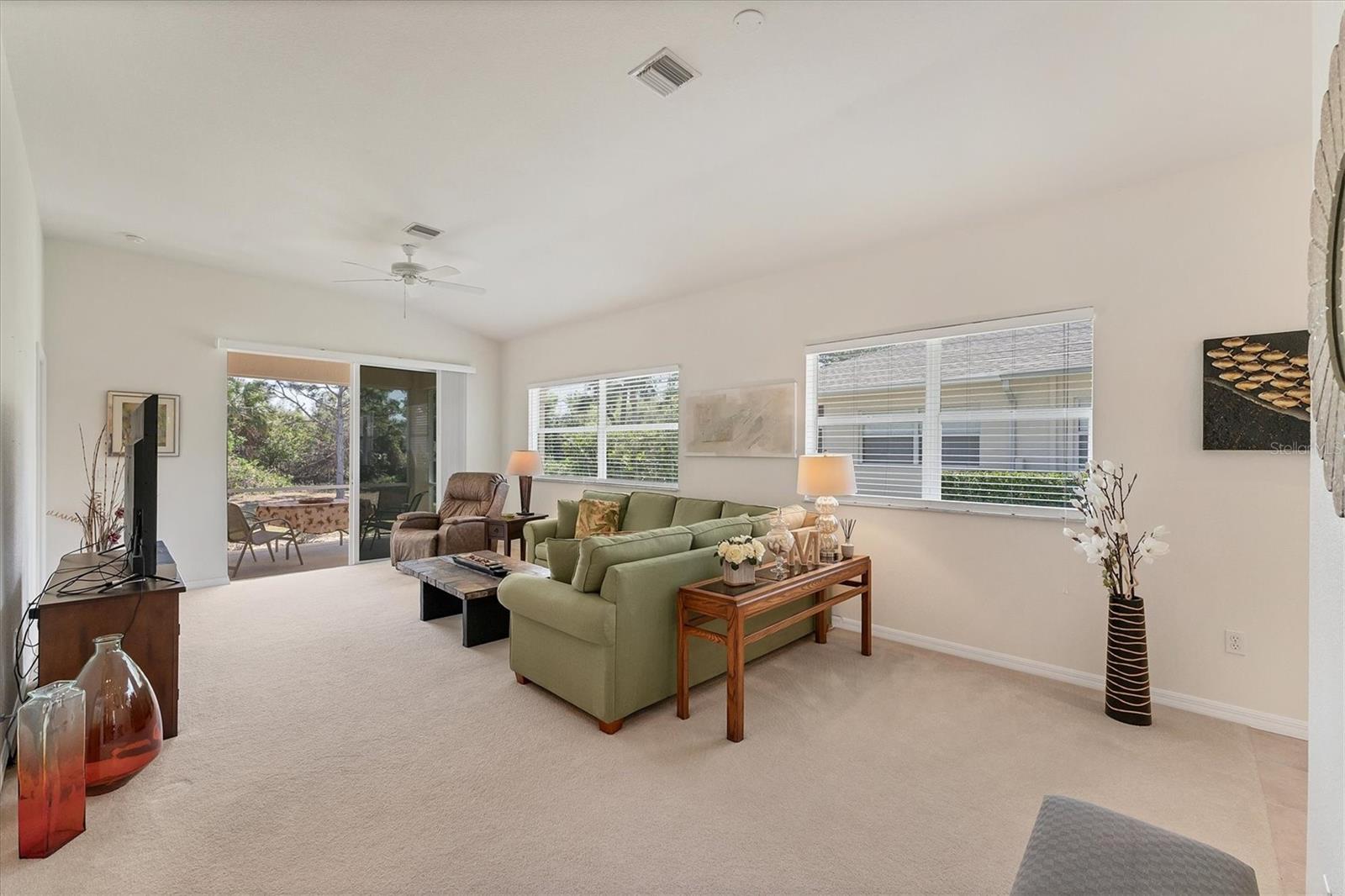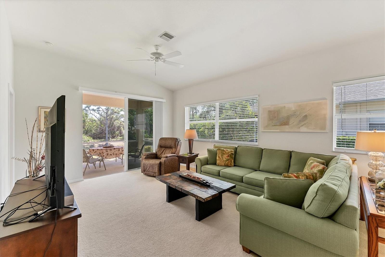 Get ready for life in paradise in this beautifully furnished villa, located in the vibrant gated community of Oak Forest, positioned in the X flood zone. As you enter the gates, you’re welcomed by friendly neighbors and an active community with many amenities. Inside, the light and bright living space greets you with soaring vaulted ceilings, a blend of ceramic tile and neutral carpet, and an abundance of natural light streaming through numerous windows and sliding glass doors. The kitchen is designed for both function and style, featuring granite counters, raised panel cabinets, a reach-in pantry, a breakfast bar, and a seamless flow into the oversized formal dining room, perfect for hosting guests. The ensuite master bedroom offers a charming bay window wall, a spacious walk-in closet, and a private bath with a decorative plant shelf above the walk-in shower. The guest bedroom is equally inviting, and the guest bathroom includes a convenient tub-shower combo. Step onto your private screened lanai, where you can enjoy your morning coffee or an evening cocktail with serene wooded views, thoughtfully landscaped for privacy and ideal for birdwatching or planning your day out enjoying the local fun. This maintenance-free community offers endless activities, from pickleball, tennis and bocce ball to lounging by the community pool or working out in the fitness center, and when you’re ready to explore, beaches, golf courses, restaurants, and Historic Dearborn Street are all less than 10 minutes away. Evenings can be spent at the clubhouse, joining neighbors for potluck dinners and social gatherings. Recent updates include a 2023 roof, 2019 HVAC, fresh interior paint in 2024, a new hot water heater in 2022, tinted windows for energy efficiency, and low-maintenance landscaping with stones in place of mulch for durability. With low HOA fees covering basic cable, exterior lawn care and irrigation, gate security and more, all that’s left to do is park your car in the garage and start living the dream Florida lifestyle. Don’t miss this rare opportunity, call today to schedule an appointment!