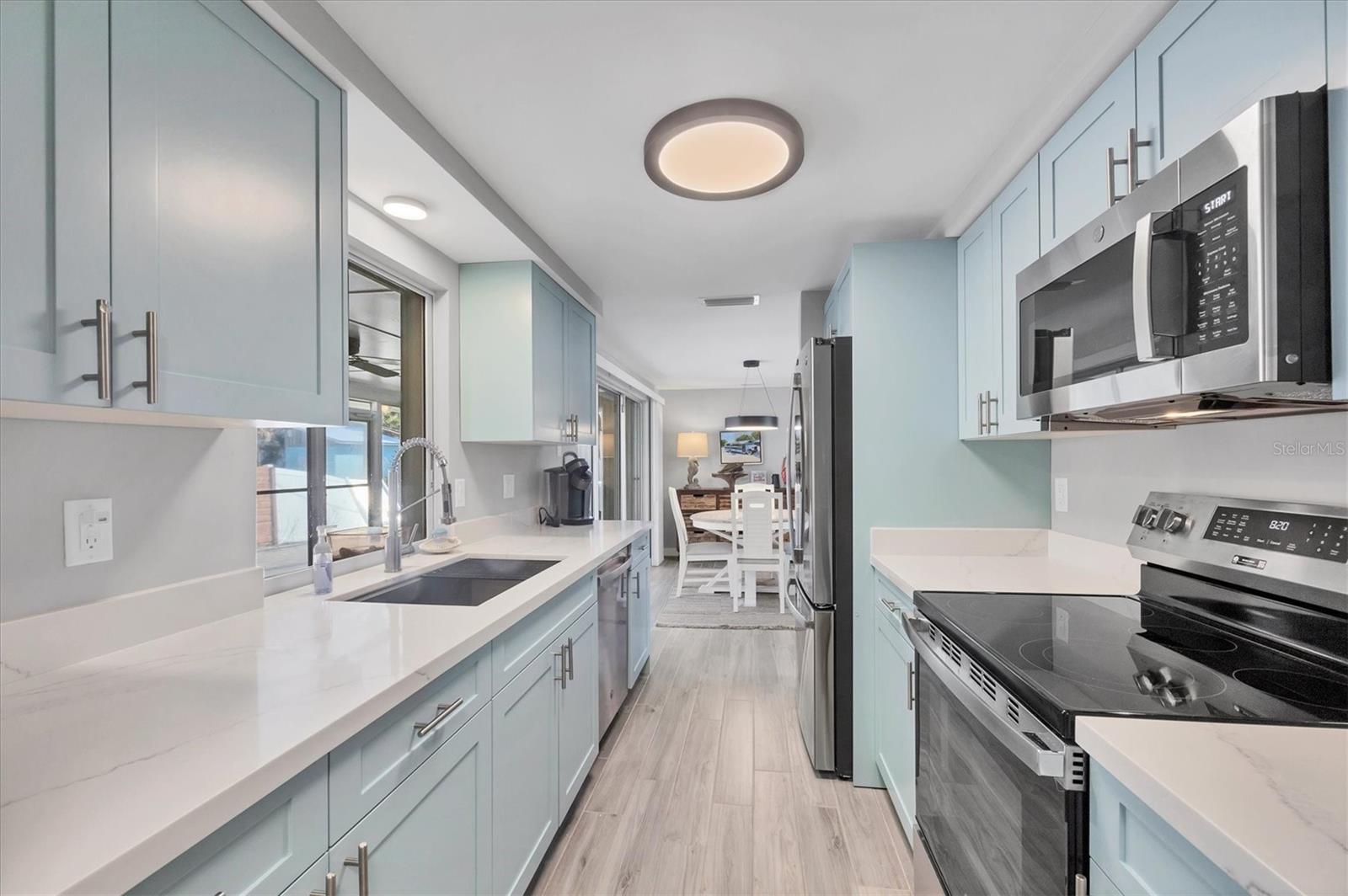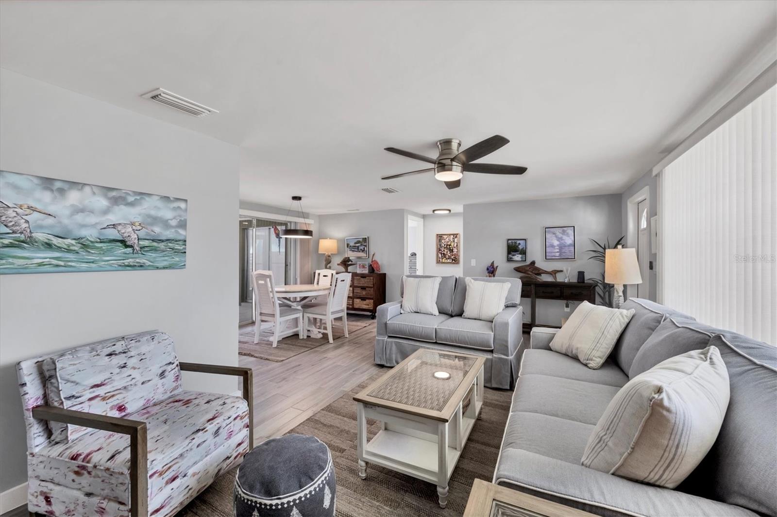Opportunity is knocking with this stunning freshly remodeled beach home, offered fully turnkey and ready for immediate enjoyment! Nestled on the desirable south end of Manasota Key, this property is just moments from the area's best restaurants, entertainment, and pristine beaches. This incredible home includes deeded beach access to the breathtaking Gulf of America, where you can soak up the sun and enjoy world-class shelling just a short stroll away. Additionally, you’ll have 1/5th ownership of a shared dock on the bay, perfect for launching a kayak, paddleboard, or simply savoring spectacular waterfront sunrises. Inside, you’ll find gorgeous tile flooring throughout, a modern kitchen with new shaker-style cabinets, quartz countertops, and stainless steel appliances, plus abundant lighting to create a bright, airy feel. The thoughtfully designed split floor plan offers privacy, with spacious bedrooms and ample closet space. The great room at the heart of the home is ideal for gatherings, while large sliders from the dining area and both bedrooms open to an expansive Florida room—a perfect space for year-round relaxation. Set on a generous .38-acre lot, the oversized, mostly vinyl-fenced backyard provides plenty of space to add a pool, tiki hut, or extra storage for all your beach toys. Whether you're looking for a full-time residence, a seasonal retreat, or a lucrative rental investment, this coastal gem has it all. Don’t miss out—experience the salty, sun-soaked lifestyle that Englewood and Manasota Key have to offer! Schedule your private showing today!