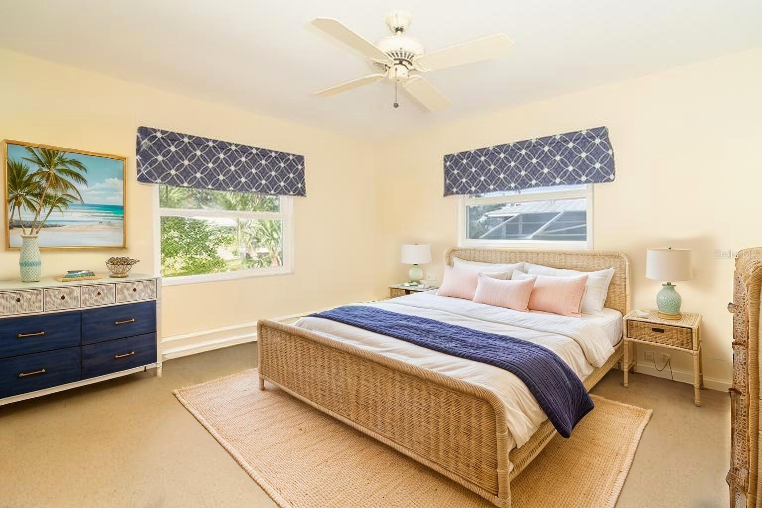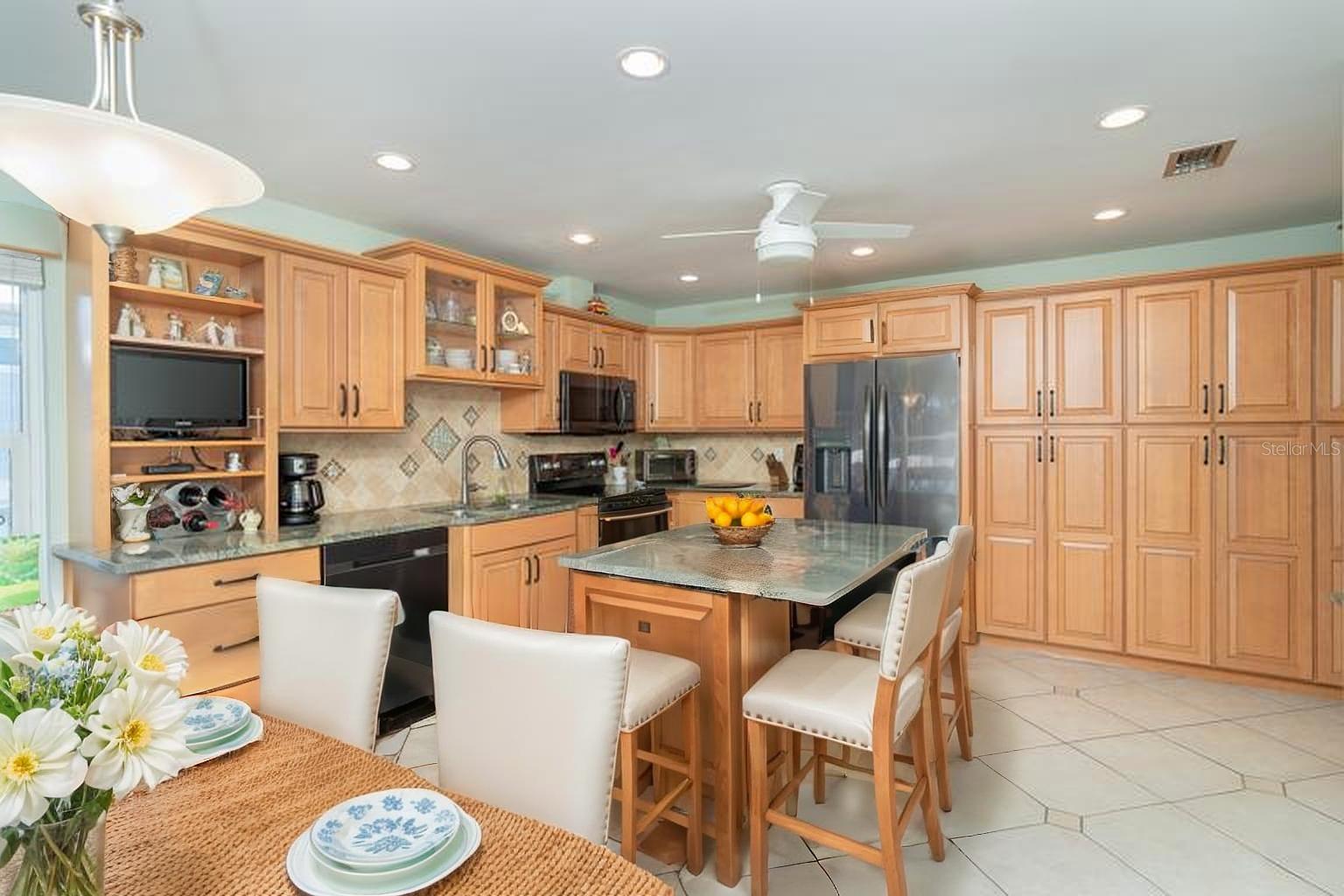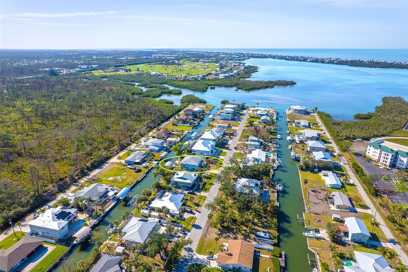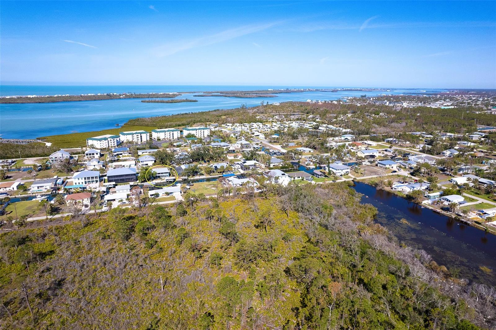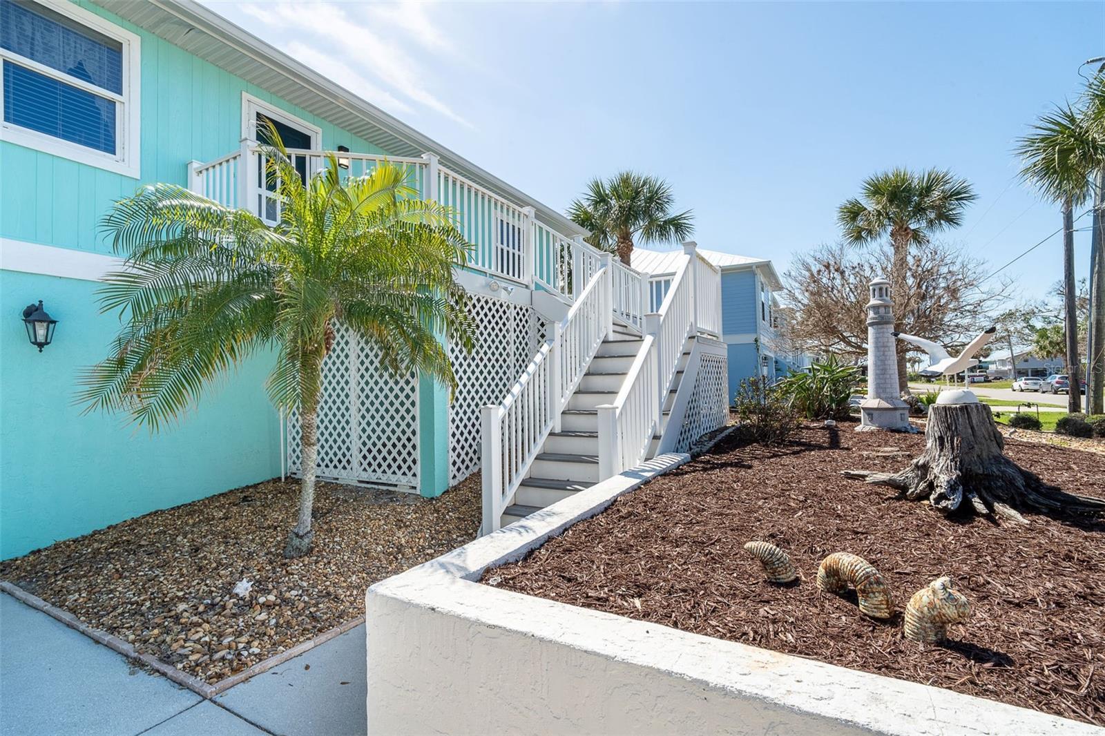 One or more photo(s) has been virtually staged. Experience the best of Florida waterfront living in this elevated 3-bedroom, 2-bath coastal retreat, perfectly positioned on an oversized lot with 100 feet of deep-water frontage and BOATABLE DEEP WATER! Designed for boaters and built for peace of mind, this sailboat-accessible property features a covered boat lift, concrete seawall, private dock, and extended waterfront entertaining area, just minutes from the Intracoastal Waterway and the Gulf of America. Upstairs living captures sweeping water views and effortless indoor-outdoor flow. The perfect porch frames both sunrise and sunset, while large sliding glass doors fill the open great room and dining area with natural light. The updated kitchen offers granite countertops, stainless steel appliances, beautiful cabinetry, three pantries, and a built-in desk with water views and direct lanai access—perfect for both everyday living and entertaining. The primary suite is a private retreat with built-in closets and an ensuite bath featuring granite countertops and a walk-in shower. Two guest bedrooms provide flexibility, including one with a Murphy bed and lanai access—ideal as a home office or guest space—and an oversized secondary guest room served by a well-appointed guest bath. Multiple outdoor living areas enhance the coastal lifestyle, with dual screened-in lanais on both levels offering serene water views. The ground level includes a spacious garage, workshop area, and screened garage space, all designed with elevation and functionality in mind. Notable updates include a 2023 roof, 2023 A/C, 2024 water heater, 2024 refrigerator and microwave, central vacuum system, and elevated HVAC placement for added security. Beautiful landscaping completes this exceptional waterfront offering. A rare opportunity to own a deep-water, waterfront home where boating, views, and elevated living come together seamlessly.