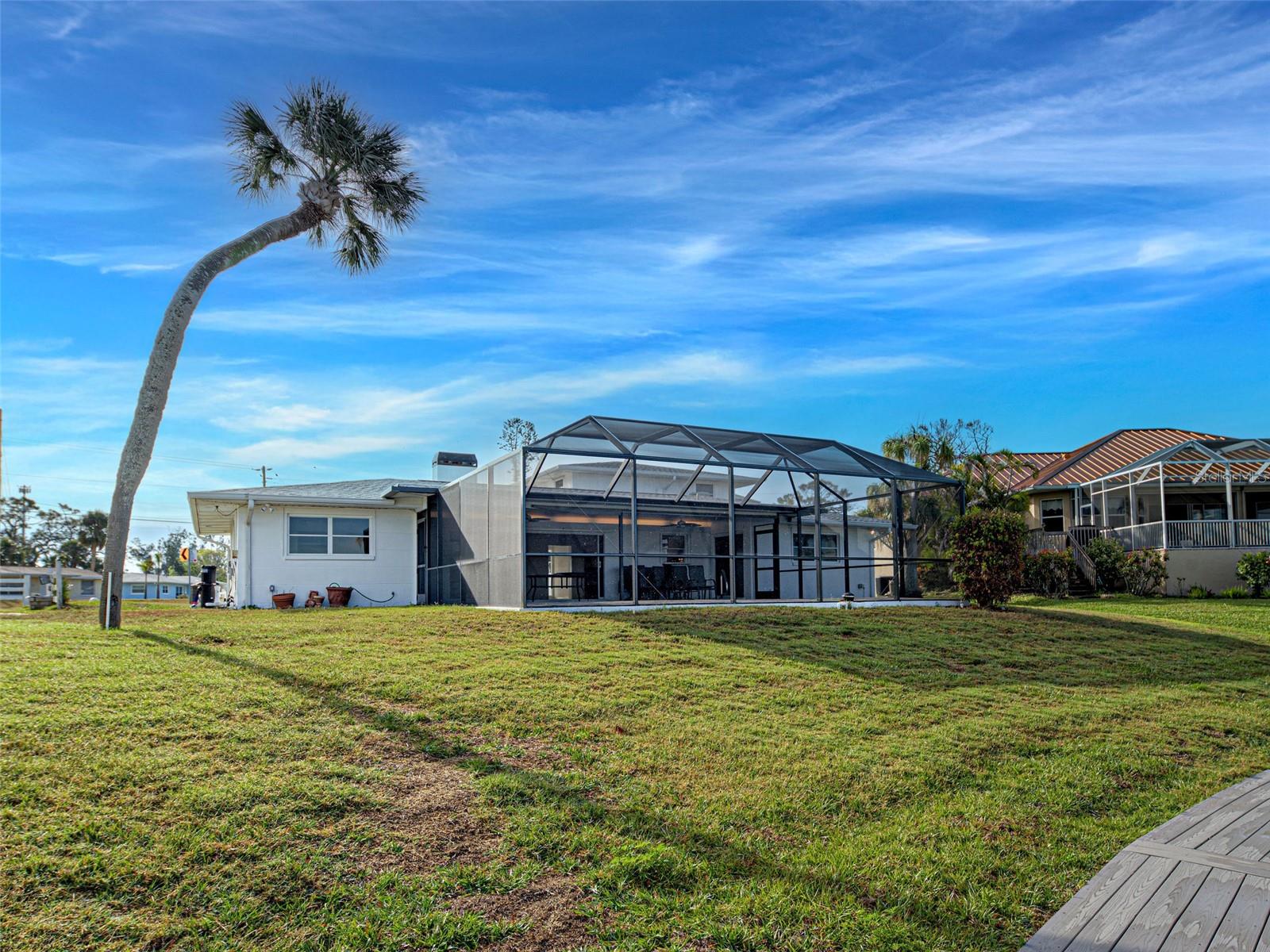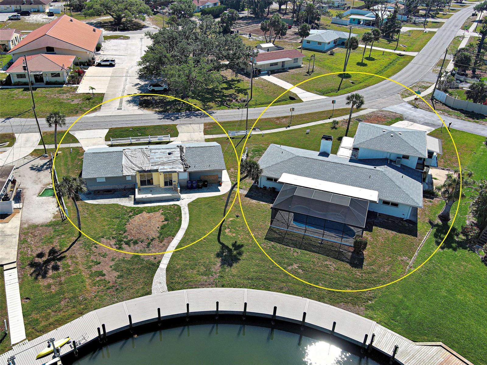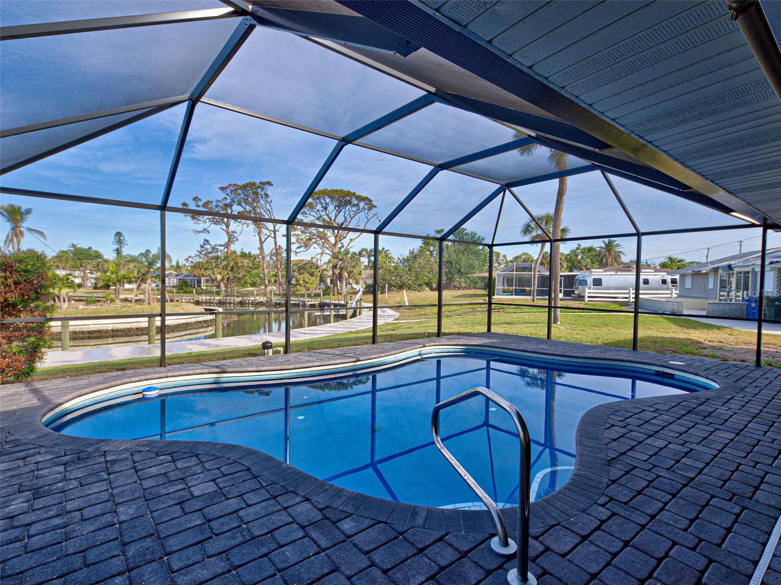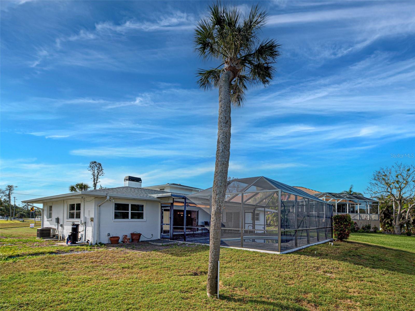 WATERFRONT PROPERTY WITH STUNNING VIEWS! LOCATED AT THE END OF A "CUL-DE-SAC" CANAL WHICH LEADS DIRECTLY TO LEMON BAY AND CONTINUES OUT TO THE GULF OF MEXICO. ROOM FOR RECREATIONAL VESSELS AND SAILBOATS ALONG SIDE YOUR NEWER 60 FOOT SEAWALL. Take advantage of this great opportunity to own a 3 bedroom - 3 full bathroom house with 2 separate primary suites. One is on the main floor, along with a split plan guest suite (both with direct pool access) and the entire private second level boasts another primary with huge walk-in closet, ensuite bathroom with shower and water closet. The attached sun porch just adds an element of charm, great natural light, and birds eye view of the canal. This space could also be used for a home office, craft area, or combined use. This slice of paradise has a newer roof (2023) - new pool cage, screening and frame (2023). Remediation from Milton has been completed. All drywall replaced and interior painted. This home gives you a "clean" slate to work with, making the completion for a remodel easy to expedite. The large, covered lanai with pool has had all repairs and is sparkling clean and ready for immediate use. Wall to wall sliding glass doors lead out to the pool deck creating amazing views of the gorgeous Florida sunsets and the Fourth of July fireworks that take place across the bay on Manasota Key. Pool is approximately 26 X 12 free form style with all new pool equipment. There is 512 square feet of lanai under roof line to enjoy some shade when you want it and alfresco dining. Perfect spot for family gatherings and neighborhood parties! Laundry room and flex space was originally a 2-car garage and converted to maximize organization and storage. A portion will still accommodate a golf cart or two. Carport is attached and the garage can be reverted back to its original functionality. Unique opportunity with the home next door at 480 S. McCall also available for sale - this gives a potential buyer a main house along with a guest house! Perfect set up for sought after multi-generational properties or potential large group rental income. This property also includes the vacant land strip directly across the street - Parcel ID # 0504-02-0004. The only thing overwhelming here is the view. This property has so much to offer - come see for yourself!