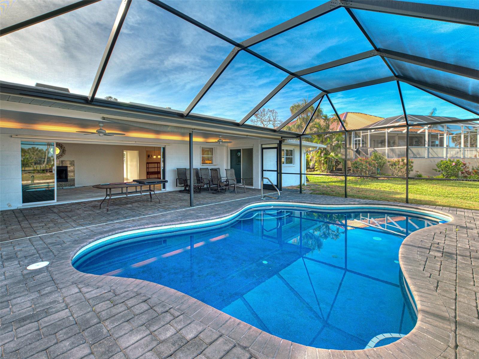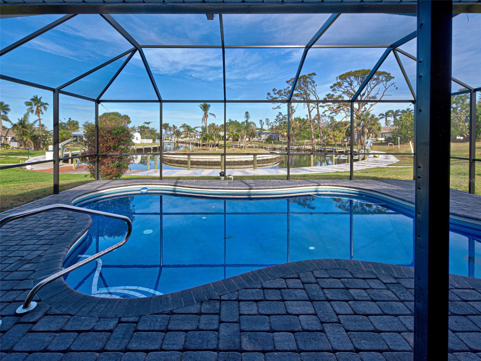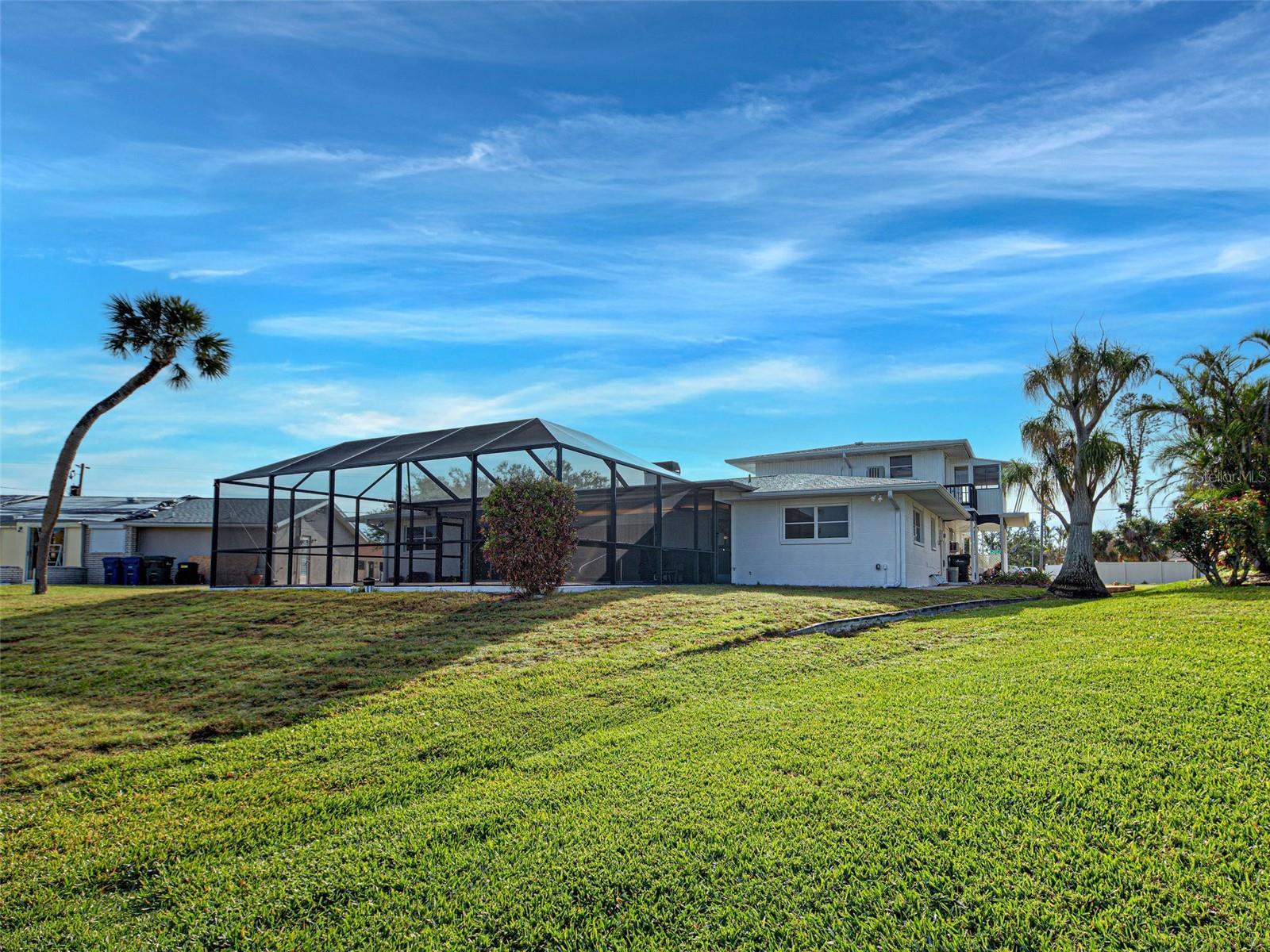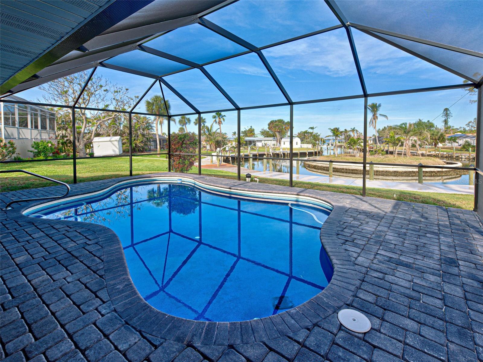 WATERFRONT PROPERTY WITH STUNNING VIEWS! LOCATED AT THE END OF A "CUL-DE-SAC" CANAL WHICH LEADS DIRECTLY TO LEMON BAY AND CONTINUES OUT TO THE GULF OF MEXICO. ROOM FOR RECREATIONAL VESSELS AND SAILBOATS ALONG SIDE YOUR NEWER 60 FOOT SEAWALL. Take advantage of this great opportunity to own a 3 bedroom - 3 full bathroom house with 2 separate primary suites. One is on the main floor, along with a split plan guest suite (both with direct pool access) and the entire private second level boasts another primary with huge walk-in closet, ensuite bathroom with shower and water closet. The attached sun porch just adds an element of charm, great natural light, and birds eye view of the canal. This space could also be used for a home office, craft area, or combined use. This slice of paradise has a newer roof (2023) - new pool cage, screening and frame (2023). Remediation from Milton has been completed. All drywall replaced and interior painted. This home gives you a "clean" slate to work with, making the completion for a remodel easy to expedite. The large, covered lanai with pool has had all repairs and is sparkling clean and ready for immediate use. Wall to wall sliding glass doors lead out to the pool deck creating amazing views of the gorgeous Florida sunsets and the Fourth of July fireworks that take place across the bay on Manasota Key. Pool is approximately 26 X 12 free form style with all new pool equipment. There is 512 square feet of lanai under roof line to enjoy some shade when you want it and alfresco dining. Perfect spot for family gatherings and neighborhood parties! Laundry room and flex space was originally a 2-car garage and converted to maximize organization and storage. A portion will still accommodate a golf cart or two. Carport is attached and the garage can be reverted back to its original functionality. Unique opportunity with the home next door at 480 S. McCall also available for sale - this gives a potential buyer a main house along with a guest house! Perfect set up for sought after multi-generational properties or potential large group rental income. This property also includes the vacant land strip directly across the street - Parcel ID # 0504-02-0004. The only thing overwhelming here is the view. This property has so much to offer - come see for yourself!
