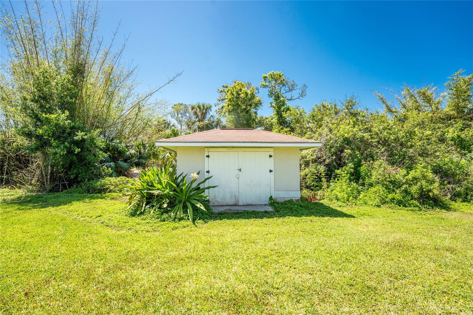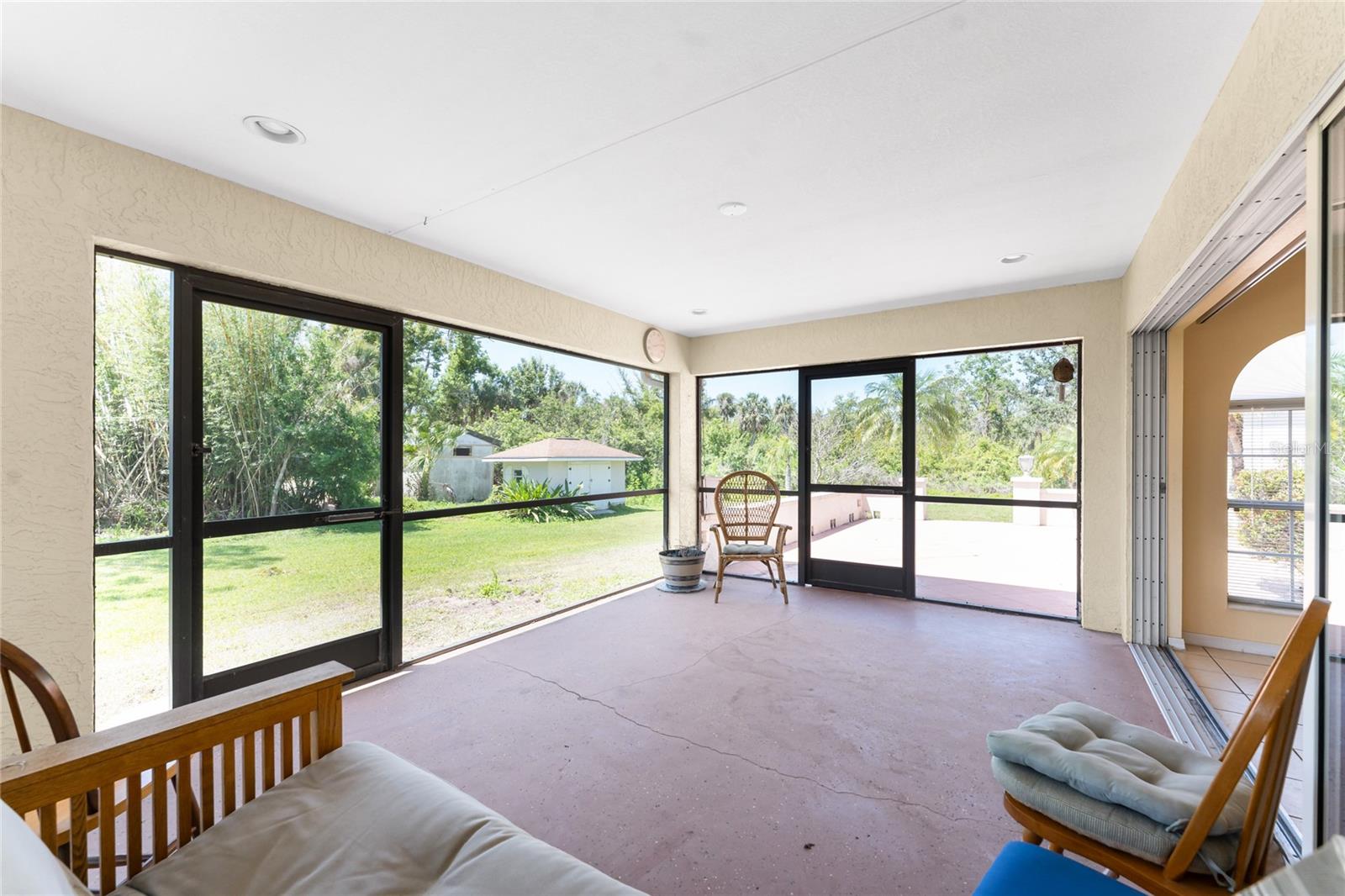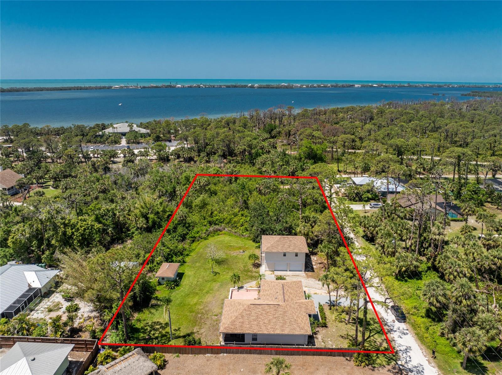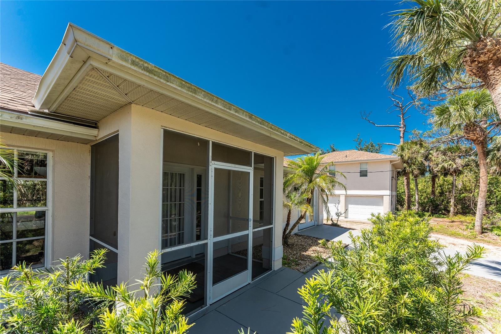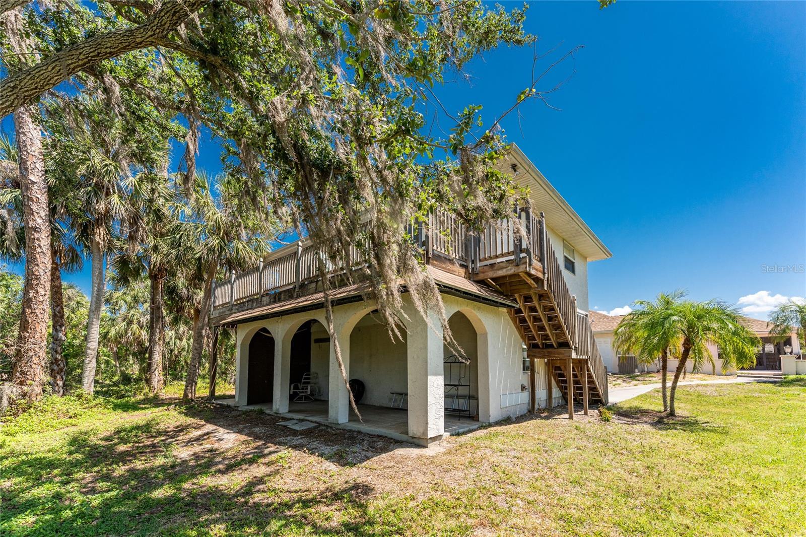 Amazing opportunity to own a 1.2 acre homestead in Northwest Englewood! This parcel abuts Lemon Bay Park, and there you will find your own trailhead to this 250 acre park! This captivating property has 2 single family residences. The Additional Dwelling Unit ( ADU )- guesthouse - is 720 SF under air, and it sits over a large two- car garage 30' x 20' where there also is a handyman's delight good-sized workshop. Live in the main home and enjoy an income from your guesthouse! There is plenty of outdoor living in your main house, including an expansive balcony deck, overlooking your back yard, great for entertaining, as well as your screened lanai which opens to the tiled Florida Room. There is a reach- through that can be accessed from the Florida Room to the kitchen. Entertain your guests in the perfect tranquility of a quiet non- traffic setting, on a quiet gravel road. Guesthouse: Step up to the deck which is 30' long and looks out over Lemon Bay Park. The ADU was completed in 2010 and comes with an ample working kitchen 10' x 11' and a 18' x 15' living room, and the bathroom has a shower/ tub combo. This guesthouse bedroom is 11' x 18' with a walk in closet. . A new shingled roof on the main house was installed in 2022, and the AC was replaced in 2020. To reside in such a peaceful habitat is a gift to enjoy in lovely quiet Englewood. The residence is a very short drive to well-equipped Englewood Hospital, and also to a leading chain grocery store. Lovely sand beaches, crystal blue Gulf water, and world class fishing all available for you!