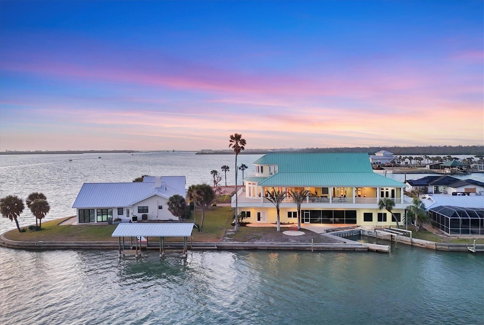 SUCH A UNIQUE PROPERTY! FOCUS on the details as this is NOT YOUR AVERAGE home with INCREDIBLE VIEWS! THE HISTORY of this property is just the beginning of the story! This 3rd generation family home provides the most AMAZING VIEWS ON THE INTERCOASTAL WATERWAY! Its unique location, lot placement and CUSTOM DESIGN offer MASSIVE WATER VIEWS from EVERY ROOM IN THIS HOME! Just wait until you SEE THE VIEWS FROM THE 3RD FLOOR with its RADIUS wall of WINDOWS! **Be sure to check out the 3-D Matterport walkthrough tour by clicking on the 'Tour 1' button at the top left of this MLS listing** This 4 BEDROOM/4.5 BATH home offers a BRAND NEW ROOF! 3 NEW HVAC's! Mostly NEWER APPLIANCES! NEW IRRIGATION PUMP fed from private well! NEW POOL PUMPS! SALT-WATER POOL/SPA with HEATER! NEW GARAGE DOORS and openers! New exterior doors! Custom built, SOLID CHERRY cabinetry with pull-outs throughout the CHEF'S KITCHEN! GAS FIREPLACE! ELEVATOR! ROUGHED-IN and WIRED for solar! Anything that was affected by the storm surge HAS BEEN REFTIFIED! No storm is a MATCH for this INCREDIBLY STRONG, WELL BUILT, BUNKER of a home! The history here is the FOUNDATION of its beauty! The original ground-level home was built with BRIDGE SPAN-CRETE ROOF TRUSSES as a HELECOPTER LANDING PAD! Those BRIDGE TRUSSES are supported by massive concrete pilings driven so deep that the bottom of the piles could not be located during the addition project in 2008! This once eye-sore, local hangout property, has NOW BEEN ESTABLISHED as THE CORNERSTONE PROPERTY in Grove City! City water and sewer! HURRICANE SHUTTERS/IMPACT GLASS to protect ALL glass openings! Wrap-around porch with AZEK decking and columns! BRAND NEW ROOF! CORAL WRAPPED GAS FIREPLACE! One-of-a-kind RADIUS kitchen COUNTERTOP to match the RADIUS GREATROOM and 3rd floor ROOFLINES! 6-burner GAS RANGE! SOLID CHERRY spiral stair case! CUSTOM MADE CHERRY interior doors and CUSTOM MILLED interior trim! NEWLY PAINTED exterior! This home has been EXTREMELY WELL MAINTAINED and CARED FOR and NO CORNERS have been cut in the process! Speaking of corners, check out the custom corner bead/no-door-casing trim as you attend your private viewing! Such ATTENTION-TO-DETAIL IS EVIDENT everywhere! There is too much to list, but here's a few details: Starting on the ground floor, the 8'-0" CANTELEEVER ROOF overhang patio off the back of the home is unique with these massive bridge roof trusses! The POOL/SPA placement is SPECIAL to this property's history, taking the place of what was once the boat basin that intruded underneath the home! ONLY THIS BUNKER OF A HOME can handle a SITE ENGINEERING FEAT as this! The storm surge rectification began at the ground floor by installing 48" DensShield Tile Backer to replace all compromised drywall. DenShield is a lightweight, water-resistant tile backer board with a built-in moisture barrier so that a drywall replacement process won't have to be done again! All the 1st floor amenities and ground level equipment has been completely replaced/remodeled, INCLUDING THE 1st floor POOL BATHROOM! FROM THE GROUND FLOOR remodel to the BRAND NEW ROOF, this home IS LIKE BRAND NEW all over again! Roughed-in for a CENTRAL VACUUM! Security alarm! Jetted tub! 3 hvac units installed FOR TOTAL COMFORT! NEW master shower tile walls! Surround sound inside and in the pool area! Outdoor kitchen electric and plumbing roughed in! New lanai and pool screening! As you can imagine, scheduling your private showing is a must with this beauty!