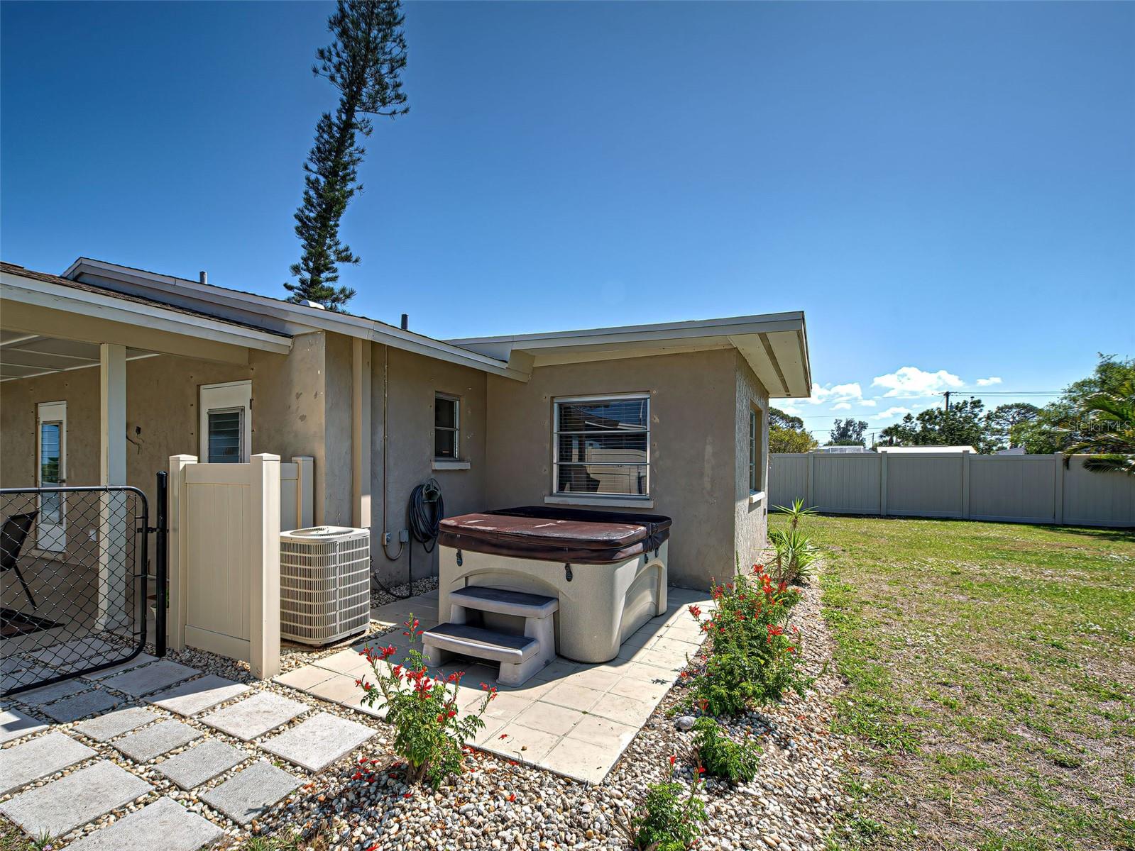 Coastal Comfort Just 2.3 Miles from Englewood Beach! Turnkey furnished! Welcome to your own piece of paradise in Old Englewood. This charming and well-maintained home offers the perfect blend of comfort, style, and location. Inside, you’ll find a bright and open living space that invites relaxation. The kitchen is thoughtfully laid out with plenty of storage and modern functionality—ready for you to make it your own. The home offers two generously sized bedrooms, both with excellent closet space and a welcoming, peaceful atmosphere. Step outside and enjoy a beautifully landscaped backyard that feels like your own tropical retreat. Whether you're entertaining or just unwinding after a day at the beach, the hot tub provides the perfect spot to relax. Whether you're searching for a full-time residence, seasonal getaway, or investment opportunity, this Old Englewood gem is not to be missed. Schedule your showing today and come see how good life can be on the Gulf Coast!