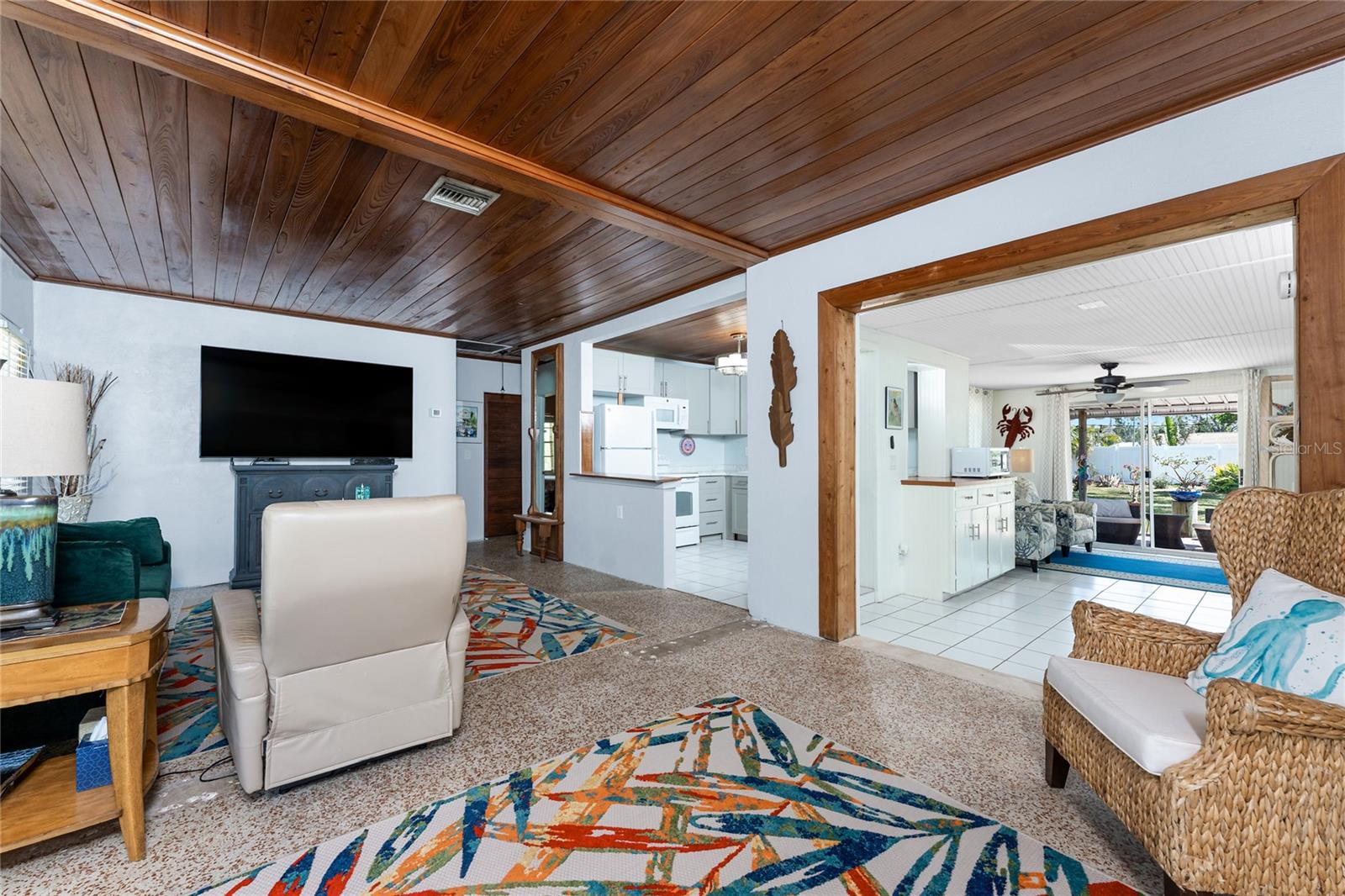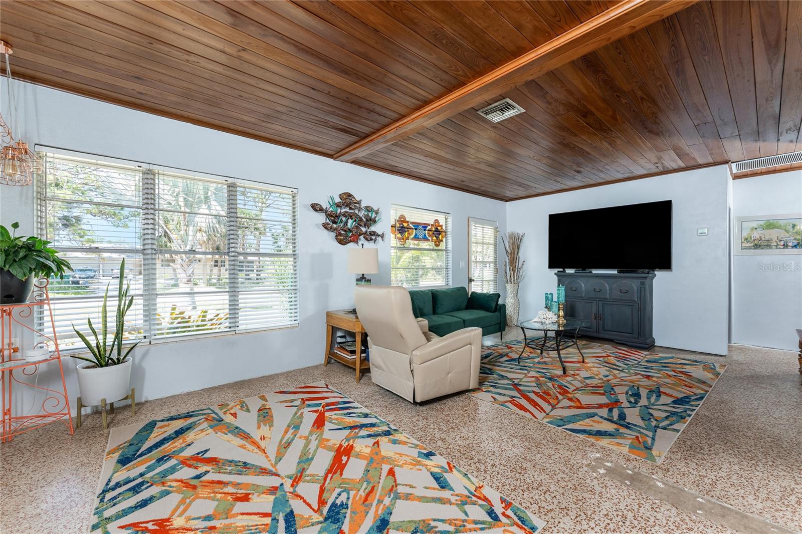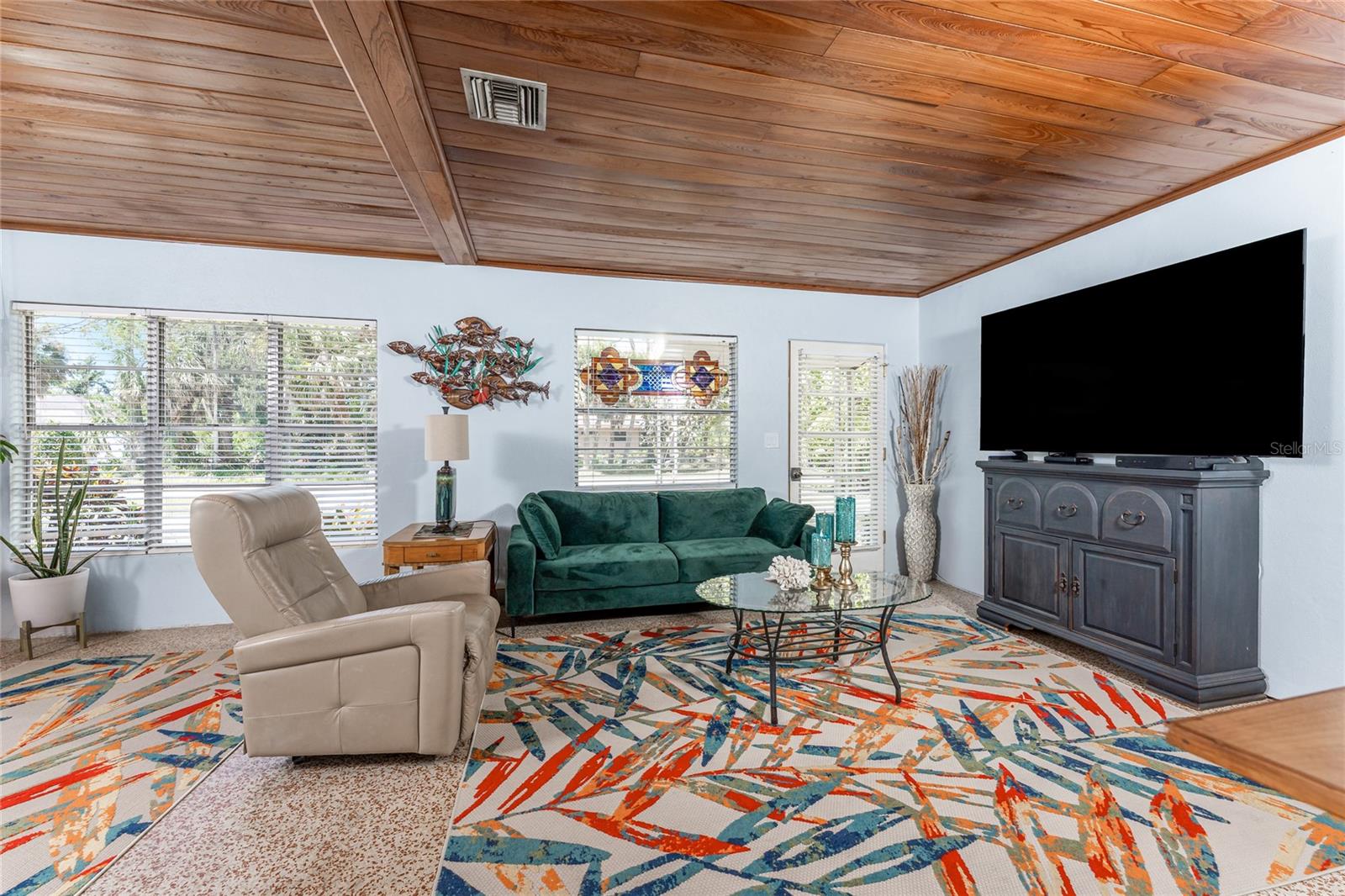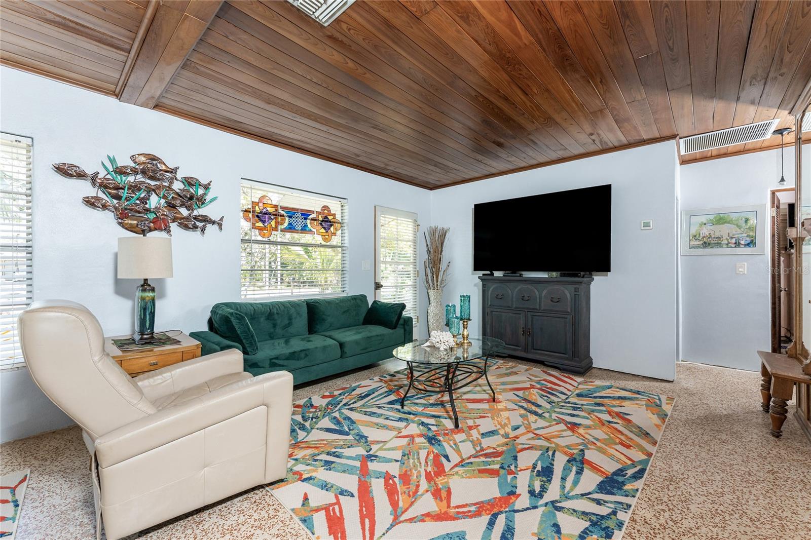 Just five miles from Englewood Beach, this laid-back Florida home sits on an oversized lot in the X flood zone and offers plenty of potential for relaxed coastal living. One of the best perks? You’ll have access to the private Oyster Creek boat ramp, giving you boating access to Lemon Bay, the Intracoastal Waterway, and the Gulf of Mexico. Drop your boat in the water and start exploring local sandbars, searching for shark teeth, or heading out to open water for world-class fishing. Surrounded by mature trees and natural landscaping, it has a quiet, tucked-away feel that’s hard to find. Inside, the two-bedroom, two-bath layout features low-maintenance terrazzo and tile flooring throughout. The open-concept great room and kitchen are full of charm, with wood plank ceilings and large windows that let in plenty of natural light. The kitchen includes gray shaker-style cabinets, and there’s a flexible bonus space perfect for dining or a second living area, complete with built-ins and sliding doors that lead to the backyard. Both bedrooms feature the same wood plank ceiling detail and reach-in closets, while the main bath includes a shower/tub combo with vintage touches. A second full bath with a step-in shower is located in the laundry room for added convenience. Out back, you’ll find a partially covered patio and a deep, private yard shaded by a beautiful Banyan tree and mature landscaping—there’s even space to add a pool if you’re dreaming of your own outdoor oasis. Located between Englewood and Venice, you're just minutes from a variety of local restaurants, shopping, and the vibrant new downtown Wellen Park area, home to the Atlanta Braves spring training stadium. Whether you’re into golf, tennis, pickleball, or simply enjoying nature, there are parks, trails, and recreational options nearby to keep you active and connected to the Florida lifestyle. With no hurricane or flood damage from previous storms and updated plumbing, this home at 2033 Georgia Avenue is solid, comfortable, and ready for its new owners. Contact us today to schedule a showing and come see it for yourself!