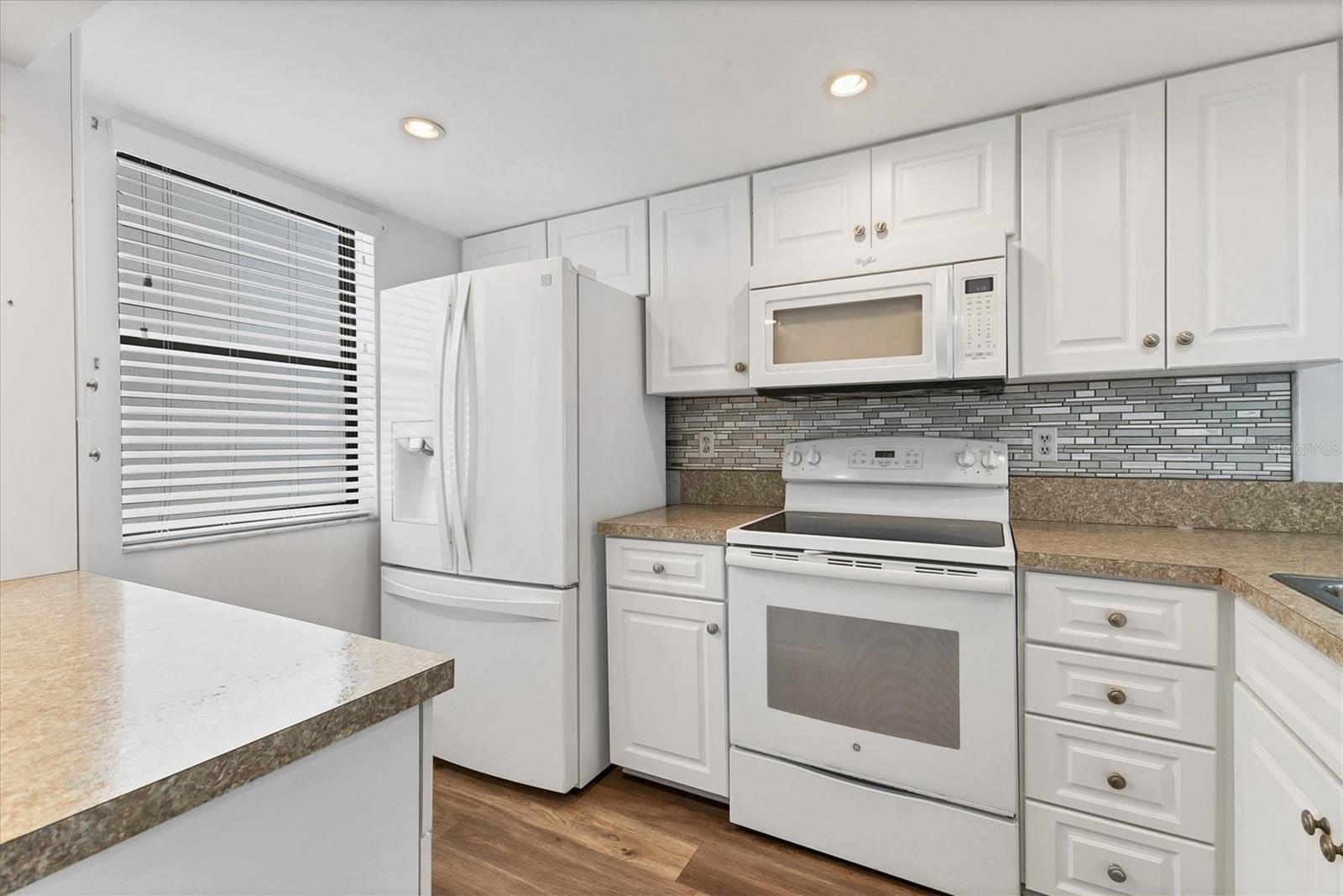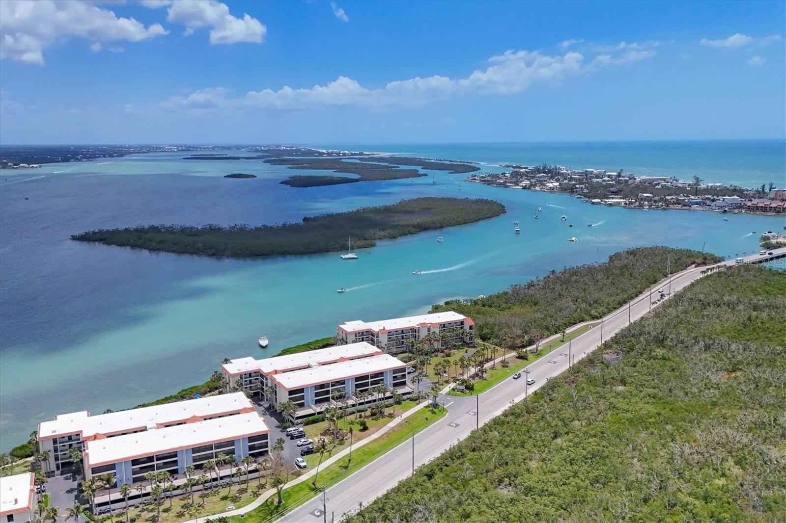 This corner unit at Sandpiper Key has a blend of indoor and outdoor space for your enjoyment. Inside you will find a nice split layout with two bedrooms and two baths with an open common area including the living room and kitchen. To one side there is a smaller balcony that is big enough (4x10) for a table and chairs that also offers a great deal of natural light through the double sliding glass door. At the back of the property there is a glassed in patio with tile floor that leads to the large (19x26) outdoor balcony ideal for enjoying the sun. Sandpiper Key is a waterfront community with boating amenities available separately, two heated community pools, and a campus of several acres you can enjoy. This location is about a half mile to Englewood Beach and the many restaurants, parks, and other amenities that are the highlight of the Englewood area.
