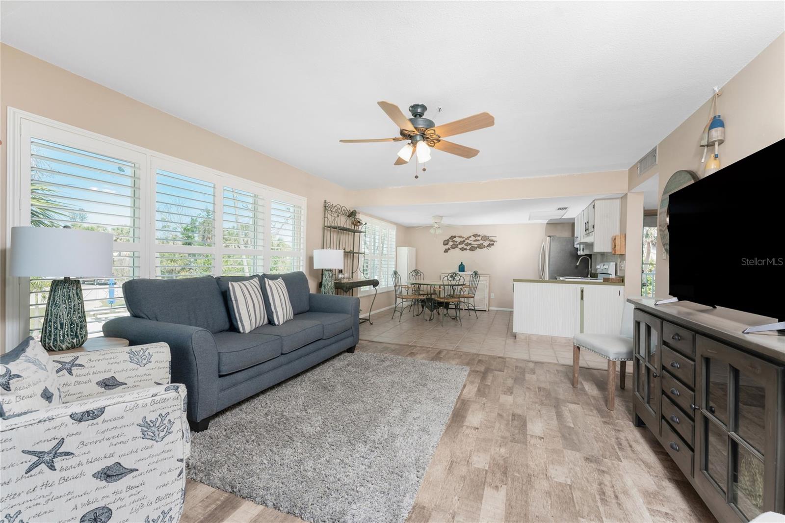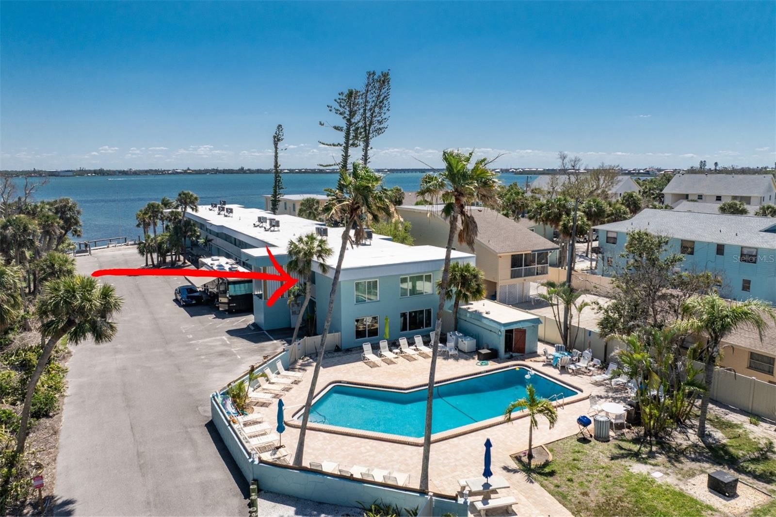 Imagine waking up in your coastal-inspired end-unit condo on Manasota Key, where the atmosphere is relaxed, the breezes are salty, and the lifestyle is centered around enjoying the Florida sunshine. Located in the popular Tiki Bayfront community, this turnkey-furnished two-bedroom, one-bathroom condo, with impact windows for peace of mind, offers an open floorplan with ceramic tile and wood-look laminate flooring in the main living areas and bathrooms. Natural light fills the space through large windows in the living area and kitchen, complete with plantation shutters, offering an airy feel and tranquil views of the community pool. The kitchen features ample counter space and a cozy breakfast nook that opens to the living area, making it ideal for casual meals and entertaining. Both bedrooms include large reach-in closets. This end-unit condo is being sold turnkey furnished, allowing for an easy move-in whether you're planning to move in full-time, use it as a weekend escape, or as an income-producing property, especially with no rental restrictions in place. The complex features a heated pool with lounge chairs, and shaded sitting areas, as well as a BBQ grill area for outdoor dining. The all-new community dock along the seawall on Lemon Bay is a perfect place to tie up your boat. Additional amenities include community laundry facilities for added convenience. Ideally located just 1.5 miles from Englewood Beach and local waterfront restaurants and tiki bars, 5 miles to historic Dearborn Street, an easy drive to Wellen Park, home of the Atlanta Braves spring training facility, and 20 minutes to historic Boca Grande. Whether you're looking for a full-time residence, investment opportunity, or beachside getaway, this inviting condo offers the perfect setting to enjoy the charm and lifestyle of Manasota Key. Contact us today to schedule your private showing.