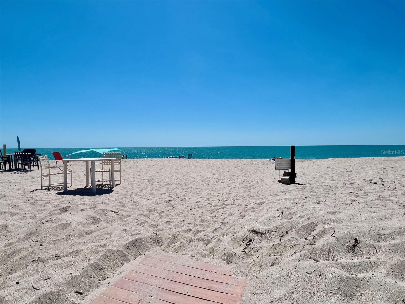 Welcome to this beautifully furnished, top-floor 2-bedroom, 1.5-bathroom retreat in Sunburst Condominiums — an intimate 30-unit “Gulf to Bay” community perfectly positioned on the pristine shores of Manasota Key in Englewood, Florida. Step inside to discover stylish, oversized tile flooring throughout and an abundance of natural light streaming in through multiple sliding glass doors. The spacious primary bedroom features a walk-in closet and direct access to the Jack-and-Jill bathroom, complete with dual vanity areas and a shared, updated walk-in shower, offering convenience and comfort for both bedrooms. Enjoy your morning coffee or evening breezes from the screened, covered balcony just off the kitchen and bedrooms — the perfect spot to relax and unwind. When it’s time to soak up the sun, head downstairs to the heated pool surrounded by an expansive brick paver patio. Just steps away, you’ll find a private dock with boat slips available on a first-come, first-served basis. And for beach lovers, a private stretch of sandy shoreline awaits directly across the street, exclusively for Sunburst residents. Additional perks include assigned parking, and a maintenance fee that covers water/sewer, pest control, exterior insurance, and all common area upkeep — making this a truly hassle-free escape. Turnkey, sun-filled, and ready for you — your slice of Florida paradise is waiting!