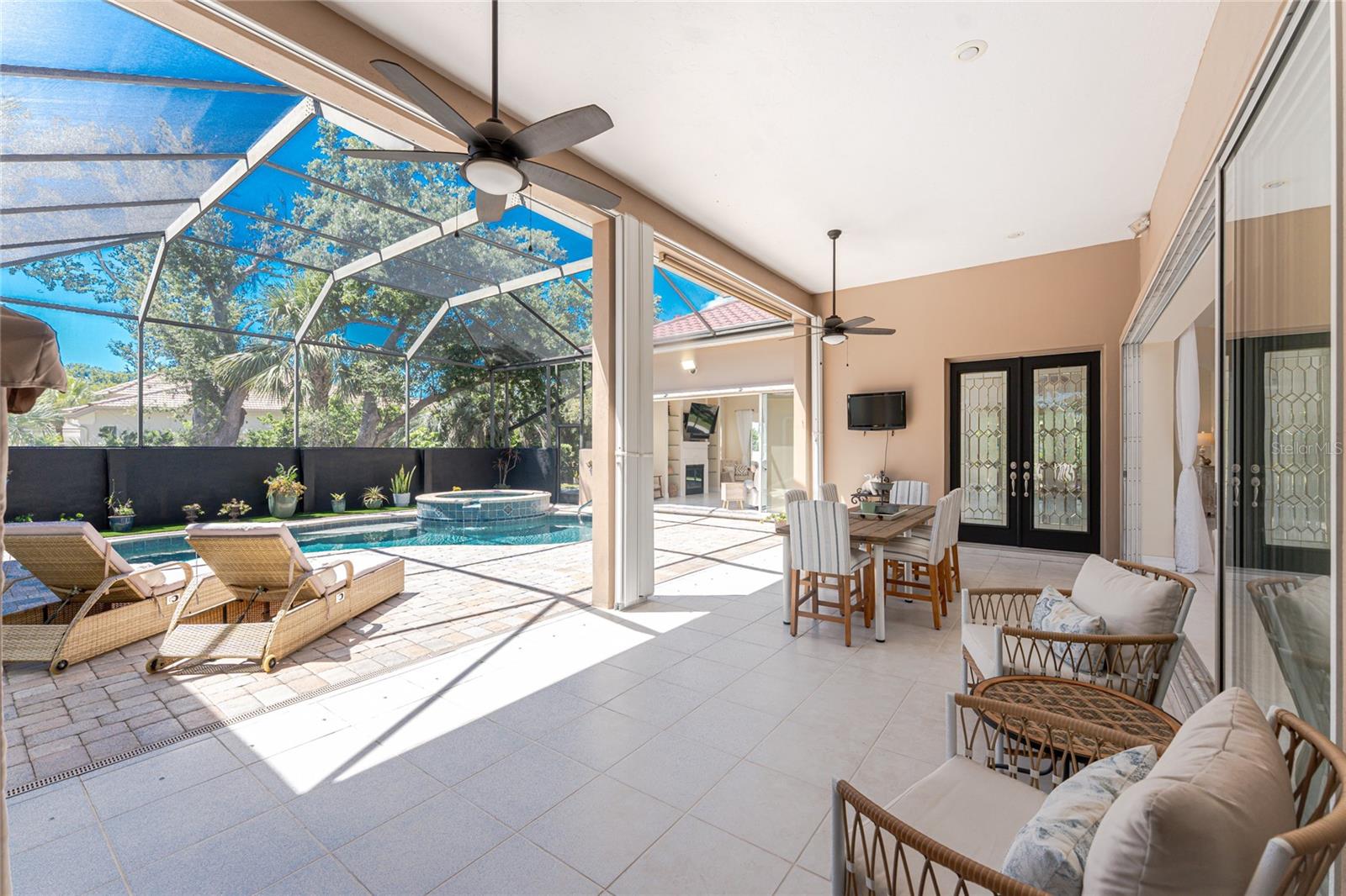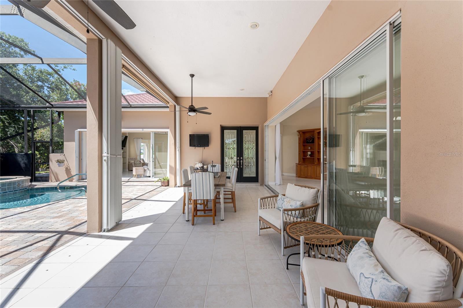 Timeless luxury and grand-scale Southern living come together in Boca Royale Golf & Country Club, where you can step back into the charm of Old Florida and watch Spanish moss-draped oak trees sway in the gentle breeze. Come and experience a resort-style lifestyle in one of the area’s most exclusive gated communities. This custom-built, courtyard-style private pool home offers exceptional privacy and features three bedrooms (including a separate casita), three full baths, and an oversized side entry two-car garage with a dedicated golf cart bay. Situated on a double corner lakefront lot in the X flood zone, the home is being sold turnkey-furnished. A circular driveway and grand, gated entrance leads to a covered courtyard area and welcomes you into a home filled with refined elegance, featuring soaring ceilings and custom wood built-ins throughout. The spacious main living area includes a combination living and dining room, a kitchen and great room with rich cabinetry, granite countertops, an island with bar seating, a separate wet bar, and an abundance of storage, all designed with both comfort and entertaining in mind. A four-season sunroom offers unparalleled views of the tranquil lake and is the perfect spot for your morning coffee or an afternoon with a good book. The expansive master suite has tray ceilings, a built-in desk, sliding doors opening to the sunroom, and a luxurious ensuite bath with an oval garden tub, oversized custom walk-in shower, dual granite-topped vanities, a dedicated makeup area, and a huge custom walk-in closet. A second ensuite bedroom in the main home adds flexibility, while the casita serves as a fully equipped retreat for providing the ultimate privacy to visiting family and friends with a living/dining area, bedroom, bath, and kitchenette, all opening directly onto the courtyard lanai. Outdoor living is elevated by the screen enclosed heated saltwater pool and spa, keystone paver walkways, lush tropical landscaping, and a custom seawall built on the lake. Additional highlights include a whole-house sound system controlled with your smart device, 2025 metal tile roof with stone coating, the garage includes a designated workshop space with built-in cabinetry, an electronic screen for the front gated entry allowing you to open all the doors and windows keeping the home pest free, and for hurricane protection there is a combination of rolling shutters and panels. Boca Royale offers a dynamic lifestyle with access to championship golf, tennis, pickleball, group fitness classes, resort-style amenities, and exceptional dining at the clubhouse. When you're ready to venture beyond the gates, you're just minutes from pristine Gulf beaches, waterfront tiki bars with nightly live music, public boat ramps for easy access to world-class fishing and sandbar fun, and the boutique shops and restaurants of Historic Dearborn Street. Brimming with Southern charm and set within a country club community, this exceptional property offers a gracious lifestyle both inside and out. Contact us today to schedule your private showing.