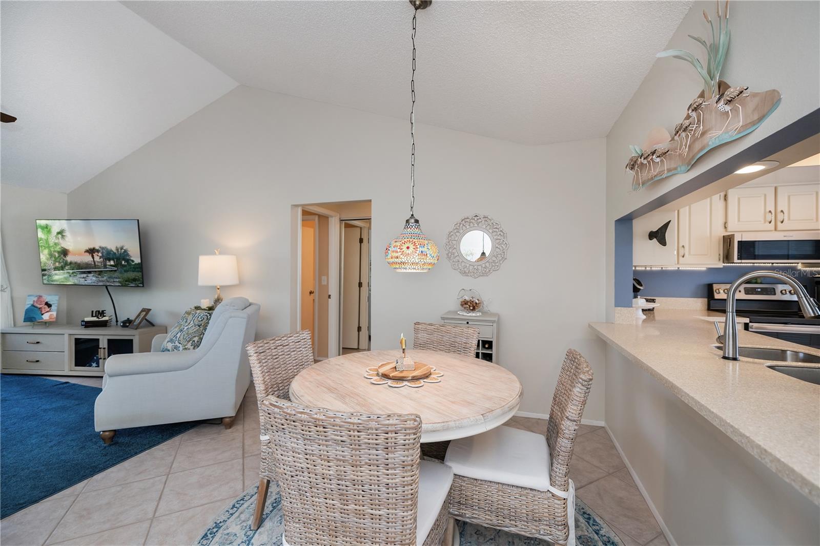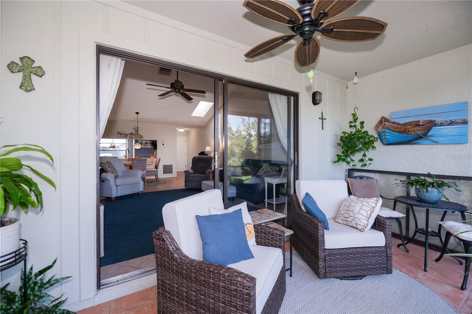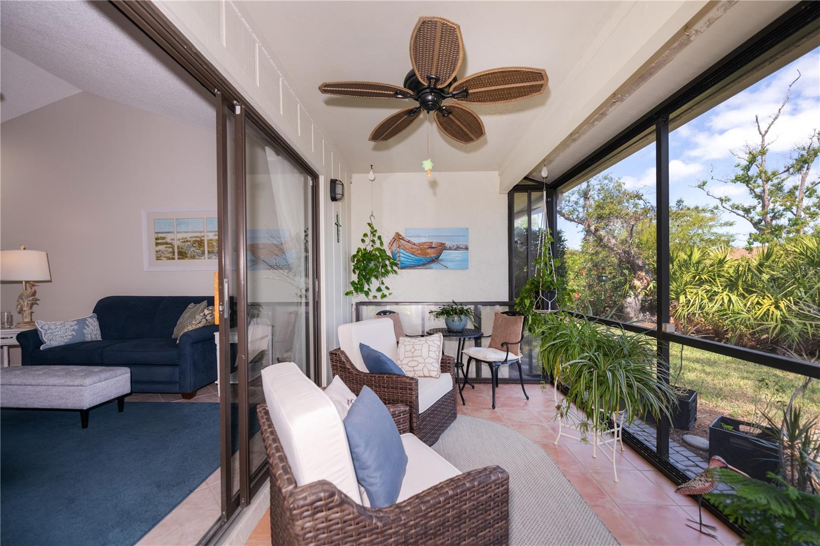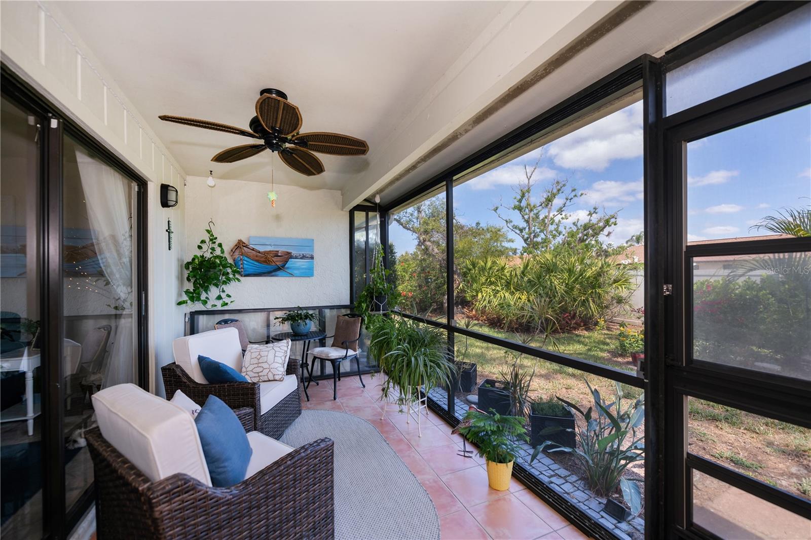 Welcome to one of Englewood's Best Kept Secrets! Tucked away amidst beautiul natural Florida foliage, this hidden gem is part of a small condominium community situated on Gotfried Creek giving boaters passage to the larger waters. Whether you like to boat, kayak or fish, it is all here for the water lover. Boat docks are available on a first come, first serve basis at $300 a season and accomodate boats up to 20', with one fixed bridge to the open waters. There is a kayak rack to store your kayak and a kayak launch is coming. This complex also has a large community pool, a cabana and firepit for get togethers, shuffleboard or benches where you can sit quietly next to a pond. Being part of the association, all of the exterior maintenance is done for you so that you can enjoy the amenities. When you enter this unit, you will feel the pride of ownership. Excellent, move-in condition describes it perfectly. The bright and cheerful kitchen has plenty of cabinets and counters. The passthru to the dining area lends an open feeling to the floorplan and aids in serving dinner or snacks. The spacious living room opens onto a lanai overlooking the natural greenery and private rear yard. Two bedrooms and two baths round out the floor plan. Air conditioner is new in 2023 and new washer in 2023. Property is being sold turn-key furnished with the exception of the wine cabinet, Cafe table & chairs on lanai, Living Room Sofa & T.V., and a few plants. Everything else is included in the sale. All of this only minutes from Englewood Beach, shopping, medical care, churches and cultural events. You won't want to miss this! Call today to view.