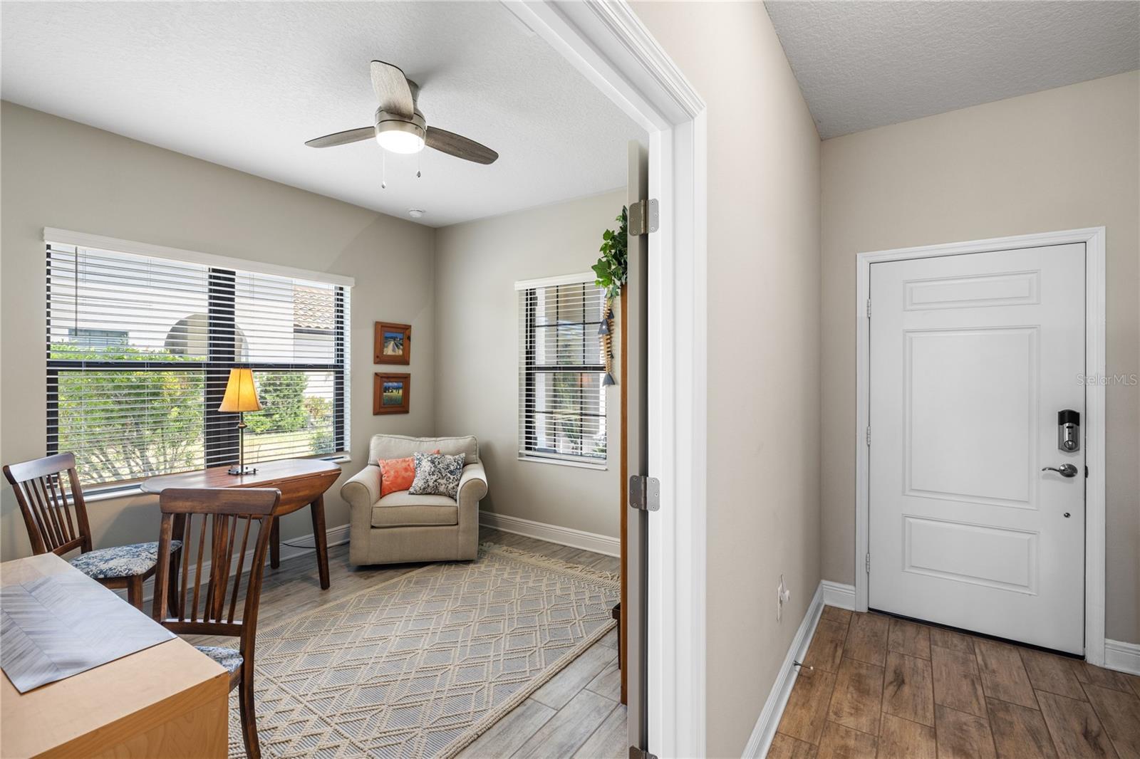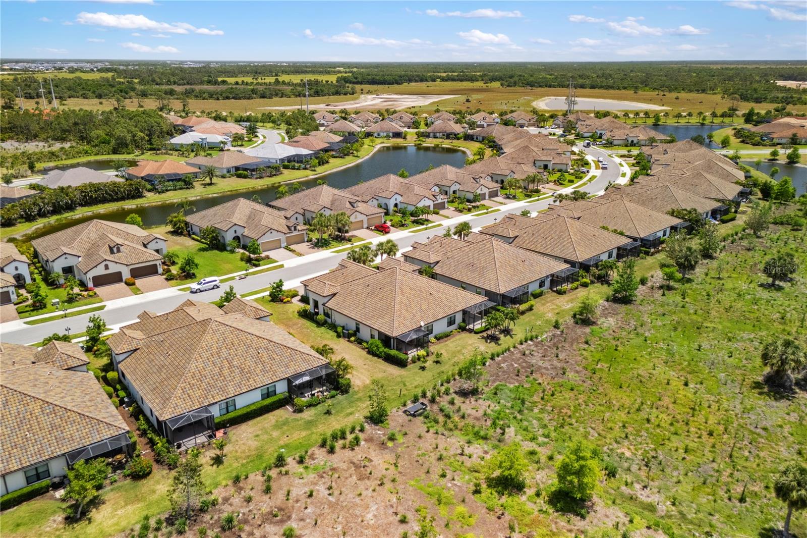 Welcome to 11125 McDermott Court — where peace, privacy, and community come together. This well-designed 2-bedroom, 2-bathroom with den villa is tucked along a natural conservation area, offering daily views of sandhill cranes, cardinals, deer and other wildlife. It is the kind of setting that slows you down in all the right ways—quiet, calming, and hard to find. Step inside and you'll notice right away: this home is both functional and inviting. The open floor plan is filled with natural light, and the sleek tile flooring throughout adds a clean, modern touch that’s easy to care for. Sliding glass doors lead to an extended lanai, creating a seamless flow between indoor and outdoor living- a hallmark of Southwest Florida Living. Whether you're sipping coffee in the calm of the morning or relaxing at the end of the day, the backdrop is all yours. You will also find hurricane shutters on every window for added peace of mind, and a location that feels private yet connected. This villa enjoys access to the community’s resort pool, just one of many amenities available in this active, gated neighborhood. The community lifestyle here is second to none. You’re just minutes from Manasota Key beaches, Downtown Wellen Park, and all the local spots that make Englewood feel like home. On-site, residents enjoy a beautiful 18-hole golf course, Har-Tru tennis and pickleball courts, and a variety of membership options to match your interests—whether that’s fitness, golf, dining, or all of the above. And then there’s the Georgian-style clubhouse, where you can grab a casual lunch or enjoy a more refined dinner with sweeping views of the fairways. The resort area also features a sparkling pool, spa, fitness center, and clubroom—the kind of amenities that elevate your day without ever leaving home. This isn’t just another home—it’s the one that makes you feel at ease the moment you walk in. And once you see the setting, you’ll understand why it stands apart.