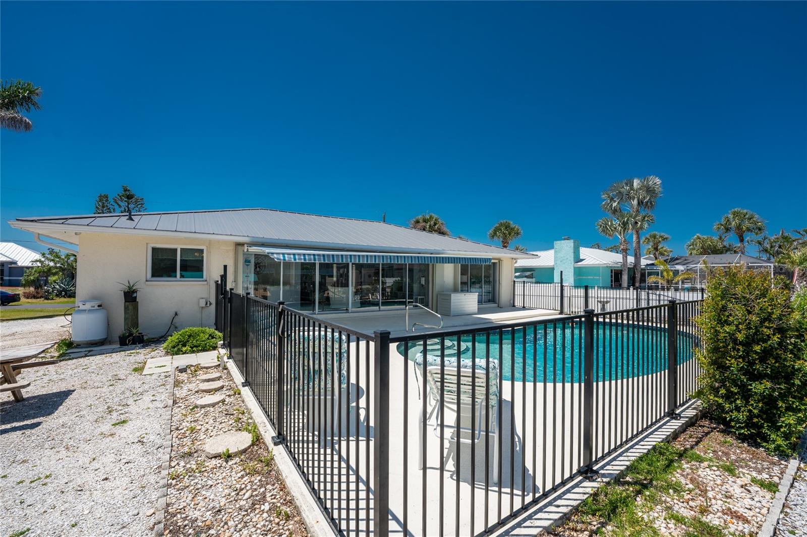 MOTIVATED SELLER! Boating, fishing, sunsets, and exploring—right at your doorstep! This canal front two bedroom, two bath, two car garage pool home will have you enjoying the waters of Lemon Bay in about 15 minutes with only two bridges out. This home stands high and dry, with no flooding from Hurricane Helene or Milton. The home has been beautifully remodeled and as you step inside you will feel the care that has been taken to ensure the pool and water views are prevalent through the 24-foot-wide set of sliding glass doors with accordion hurricane shutters that open the great room spaces, bring in tons of natural light, and provide uninhibited views. Maintenance will be a breeze with tile floors throughout the home. The cook’s dream kitchen has an abundance of cabinets with pull-out drawers, trash and pantry, center island, glass tile backsplash, Cambria quartz countertops, a gas stove perfect for frying, poaching, or baking, and a breakfast bar where you can sit and enjoy your morning coffee while overlooking the pool and waterway. The en-suite master bedroom has sliding door pool access, walk-in closet, and a bathroom with step-in shower and oversized vanity. The guest bedroom is also an en-suite with a walk-in closet and a bathroom that includes a shower/tub combo for convenience. The outdoor living space at this home can’t be beat—a large, fully fenced entertaining pool deck with retractable remote-controlled awning is where you will find yourself truly living a Florida lifestyle. Beyond the pool is a large dock with electric boat lift and cover; quickly drop your boat via remote control and get out on the water. After a day of fishing, come back home to clean your fresh catch at the large dockside stainless steel sink with water, then head up to the pool deck to grill while enjoying a cocktail as the sun goes down—what a great way to end the day! Your dogs will love having the large pea stone dog run with a 4-foot chain link fence that goes the entire length of the left side of the home, complete with gates on each end. Additional features include a 2023 metal roof with 3rd nail system, impact windows and insulation, 2019 HVAC system to keep the interior cooler, an oversized driveway with additional shell-covered parking area perfect for your boat trailer or RV, two enclosed raised bed gardens with garden fencing, a convenient generator outlet, and two outdoor sheds providing all the storage you need for beach toys, golf clubs, and more. THE TAX BILL INCLUDES $4,595.92 FOR A PACE LOAN THAT WILL BE PAID OFF AT CLOSING AND DOES NOT ACCURATELY REPRESENT THE CURRENT TAX BILL. This home is located near everything fun in Englewood—the beach is less than five miles away, take a bike ride less than a mile to the Ann and Chuck Dever Park that connects to the Oyster Creek Waterfront Trail and experience both parks’ marine life, waterfowl, and flora. National chain grocery stores, medical facilities, and many local restaurants are also nearby. This home at 2673 Titania Road has everything you’ve dreamed—contact us for more information and to schedule your private showing.