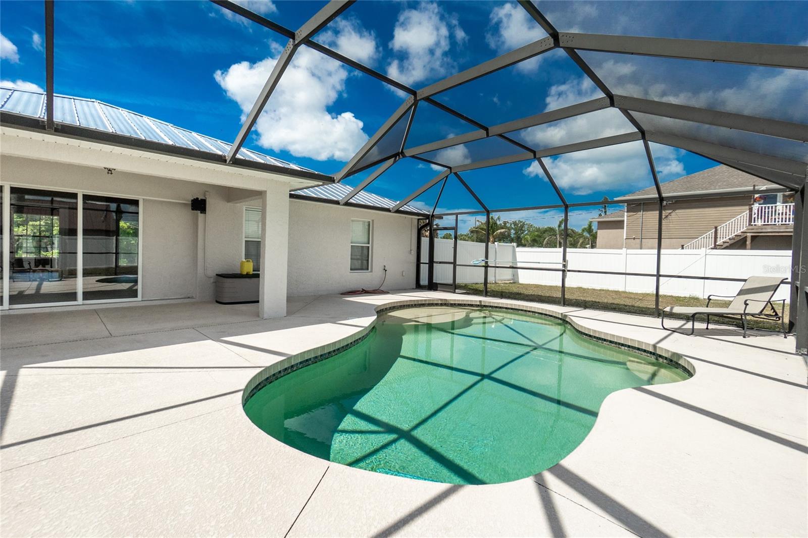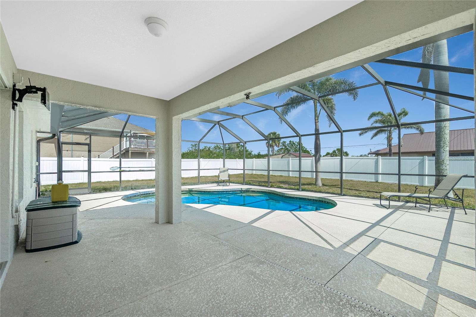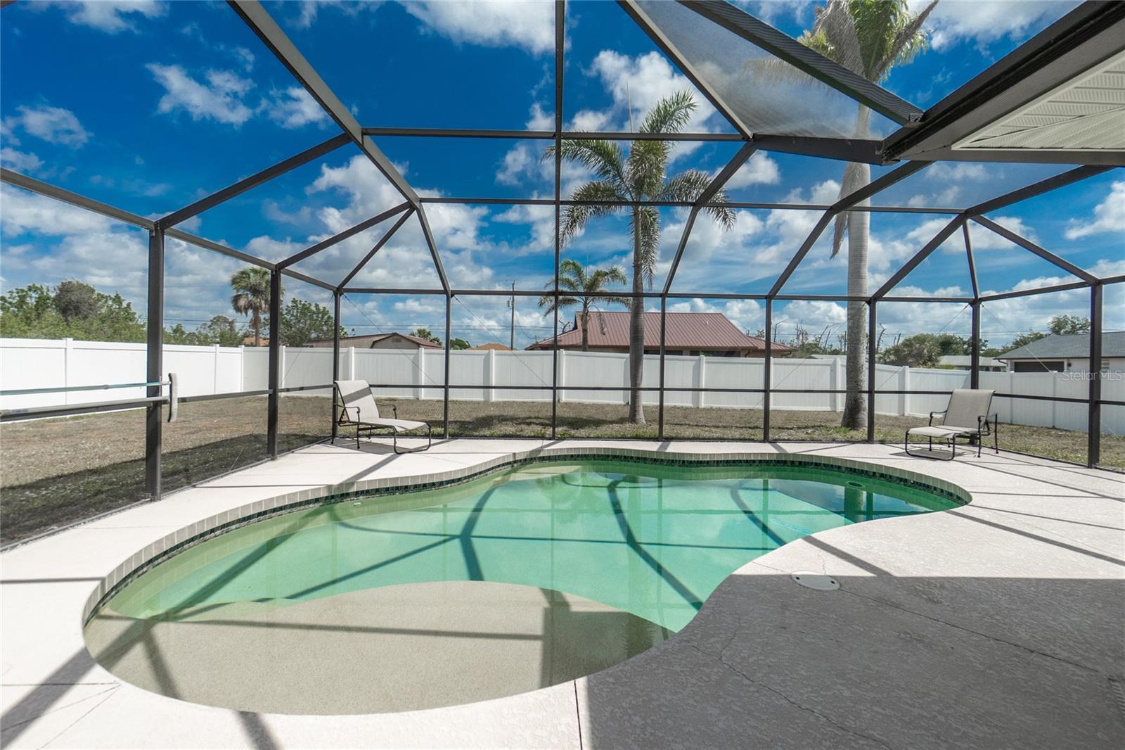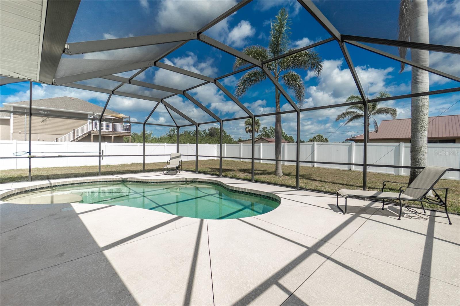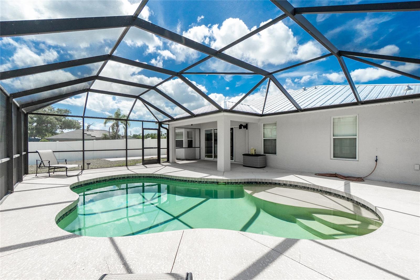Beautiful 3-Bedroom Pool Home on an Oversized Corner Lot in Englewood East! Welcome to your Florida dream home! This charming 3-bedroom, 2-bathroom pool home is packed with features that make it a standout—starting with its oversized corner lot, attractive paver driveway, durable metal roof, and X flood zone location (no flood insurance required). Step out back and you’ll find a private, fully fenced yard with a sparkling pool and a spacious pavered lanai—ideal for relaxing or entertaining. There’s even a separate concrete pad, perfect for catching some sun, grilling out, or tucking away your toys with ease. Inside, you’ll love the open layout with beautiful wood-look tile flooring throughout and a light-filled living area that overlooks the pool deck. The kitchen includes stainless steel appliances, ample cabinet space, recessed lighting, and a cozy dinette area with pool views. The split floor plan offers great functionality and privacy. The primary suite features a walk-in closet and an en-suite bathroom with a walk-in shower and pocket door. The second bedroom and full guest bath (with tub/shower combo) are located on the opposite side of the home. The third bedroom is currently set up with a Murphy bed, making it a versatile flex space perfect for a home office or guest room. Whether you're searching for a full-time residence or a seasonal escape, this home checks all the boxes. Enjoy quick access to Gulf beaches, boating, golf, shopping, dining, healthcare, and more. It’s the best of the Florida lifestyle at a great value. Don’t miss your chance to own this gem—schedule your private showing today!