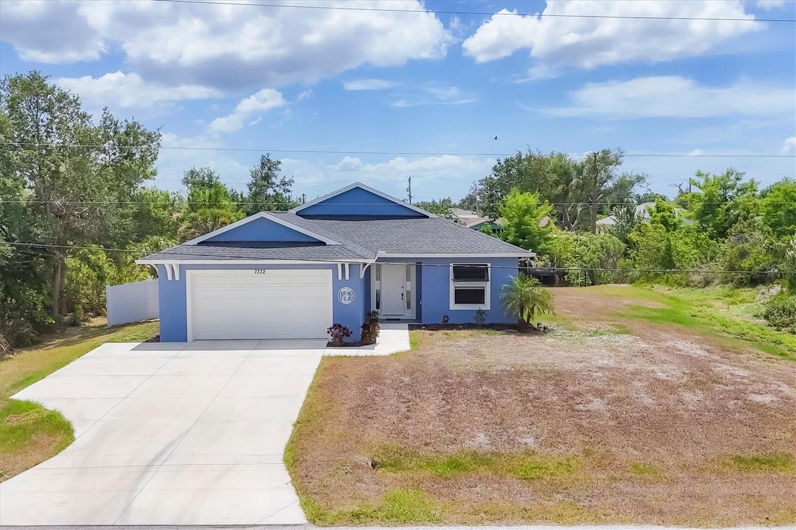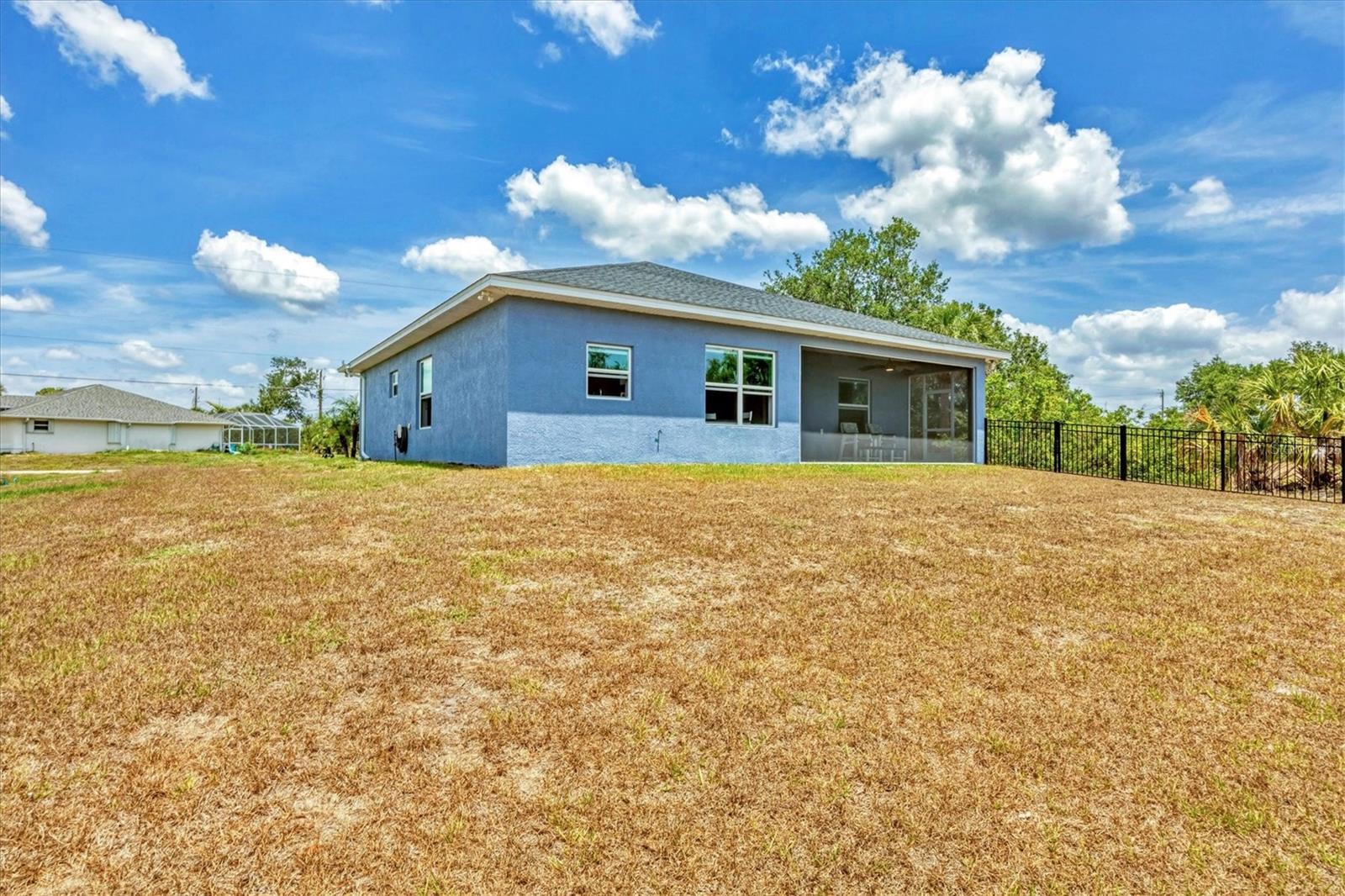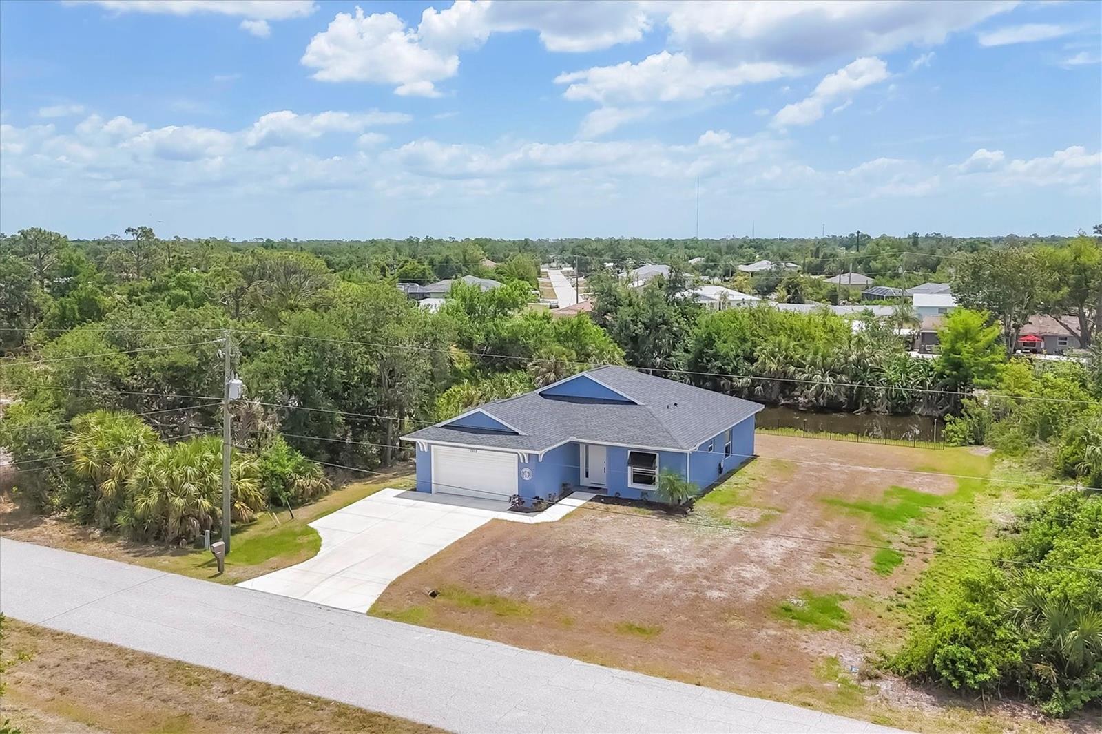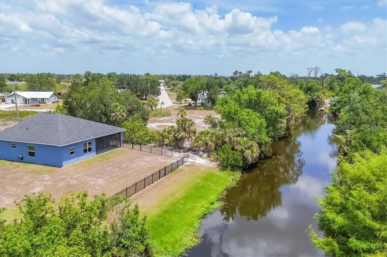Move-In Ready Waterfront Home – Built in 2021! This beautifully maintained 3-bedroom, 2-bath canal-front home sits on a double lot. Enjoy serene water views from your screened back porch, accessible via a triple sliding door. Inside, the home features luxury vinyl plank flooring throughout, impact windows and doors, and a spacious living room with a coffered ceiling, recessed lighting, and an oversized ceiling fan. The kitchen is a chef’s dream with granite countertops, soft-close cabinetry, a farmhouse sink, stainless steel appliances, and a picturesque window over the sink overlooking the canal. The primary suite boasts a generous walk-in closet and a luxurious bath with dual granite vanities, a walk-in shower, and a separate walk-in tub. Additional highlights include a tile-surround second bath, inside laundry, and ample space to add a detached garage or park your RV, boat, or other recreational vehicles. Located in an X flood zone with no HOA—this home offers both peace of mind and freedom. Don’t miss this rare opportunity!