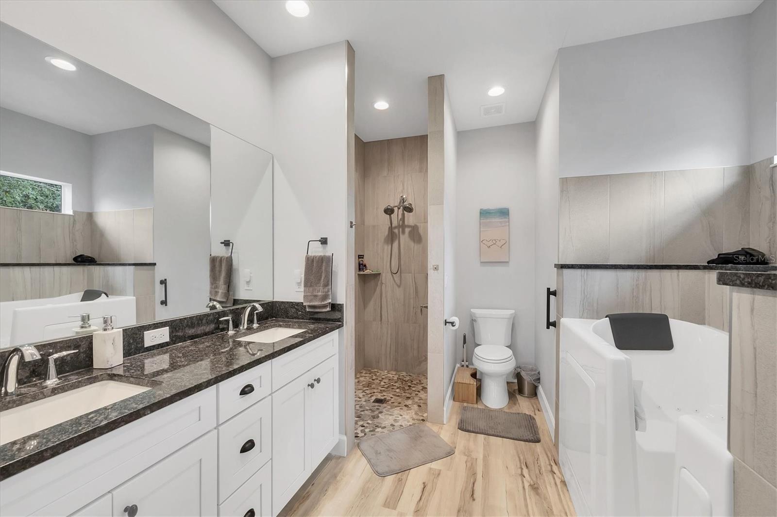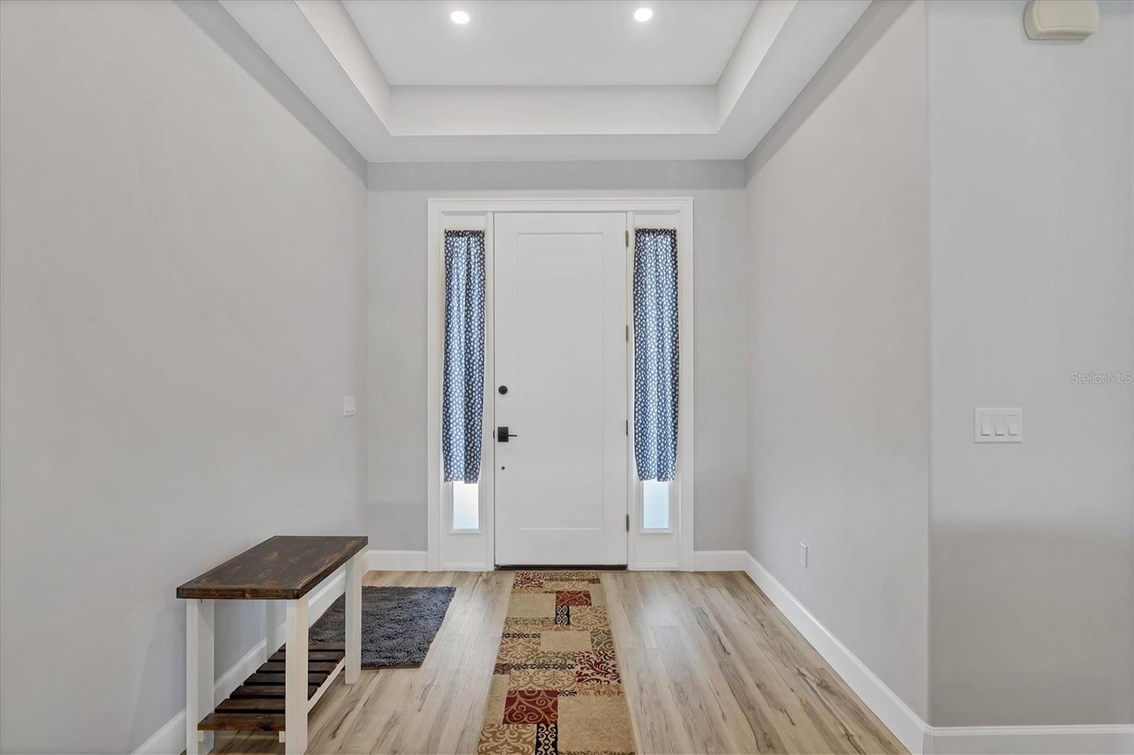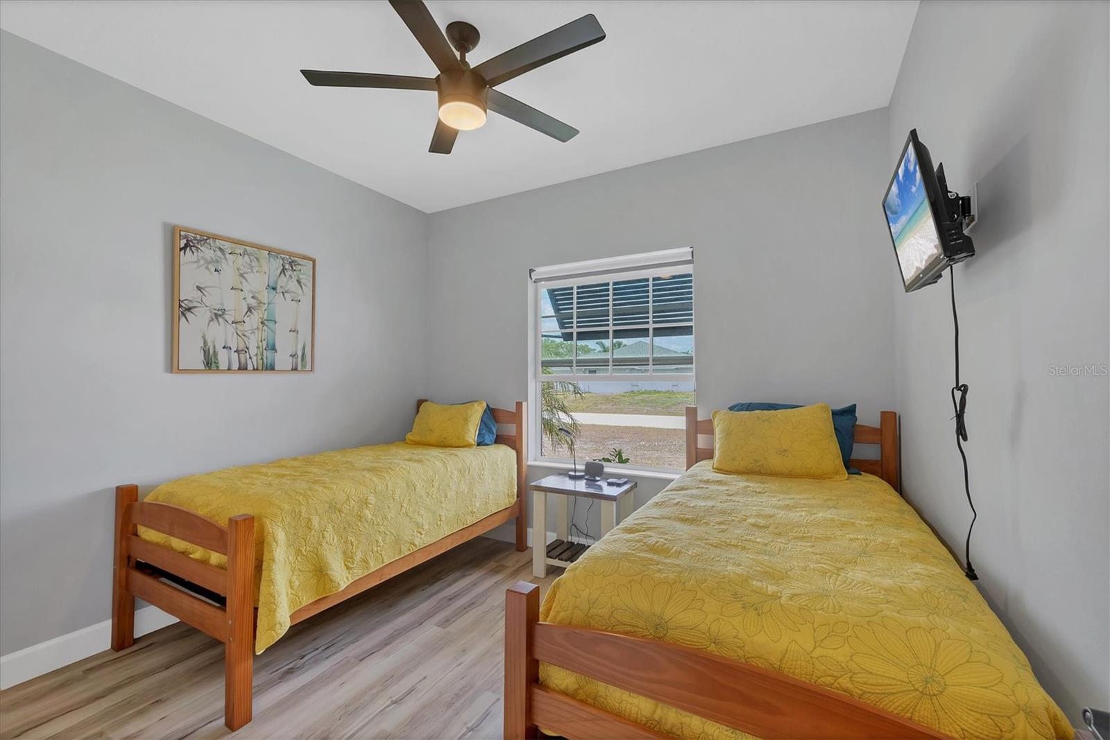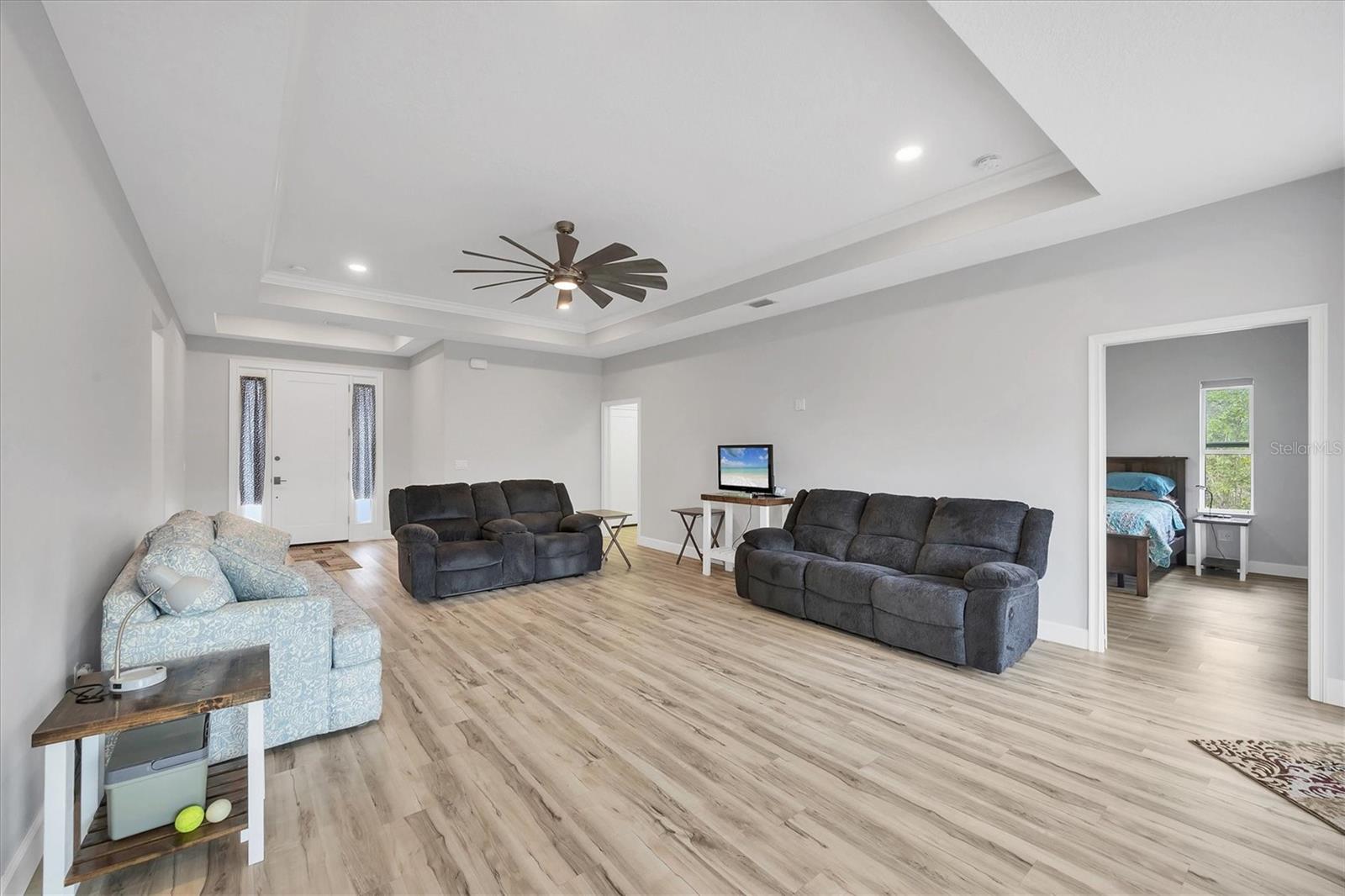Move-In Ready Waterfront Home – Built in 2021! This beautifully maintained 3-bedroom, 2-bath canal-front home sits on a double lot. Enjoy serene water views from your screened back porch, accessible via a triple sliding door. Inside, the home features luxury vinyl plank flooring throughout, impact windows and doors, and a spacious living room with a coffered ceiling, recessed lighting, and an oversized ceiling fan. The kitchen is a chef’s dream with granite countertops, soft-close cabinetry, a farmhouse sink, stainless steel appliances, and a picturesque window over the sink overlooking the canal. The primary suite boasts a generous walk-in closet and a luxurious bath with dual granite vanities, a walk-in shower, and a separate walk-in tub. Additional highlights include a tile-surround second bath, inside laundry, and ample space to add a detached garage or park your RV, boat, or other recreational vehicles. Located in an X flood zone with no HOA—this home offers both peace of mind and freedom. Don’t miss this rare opportunity!