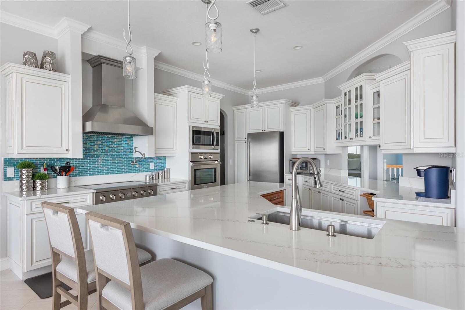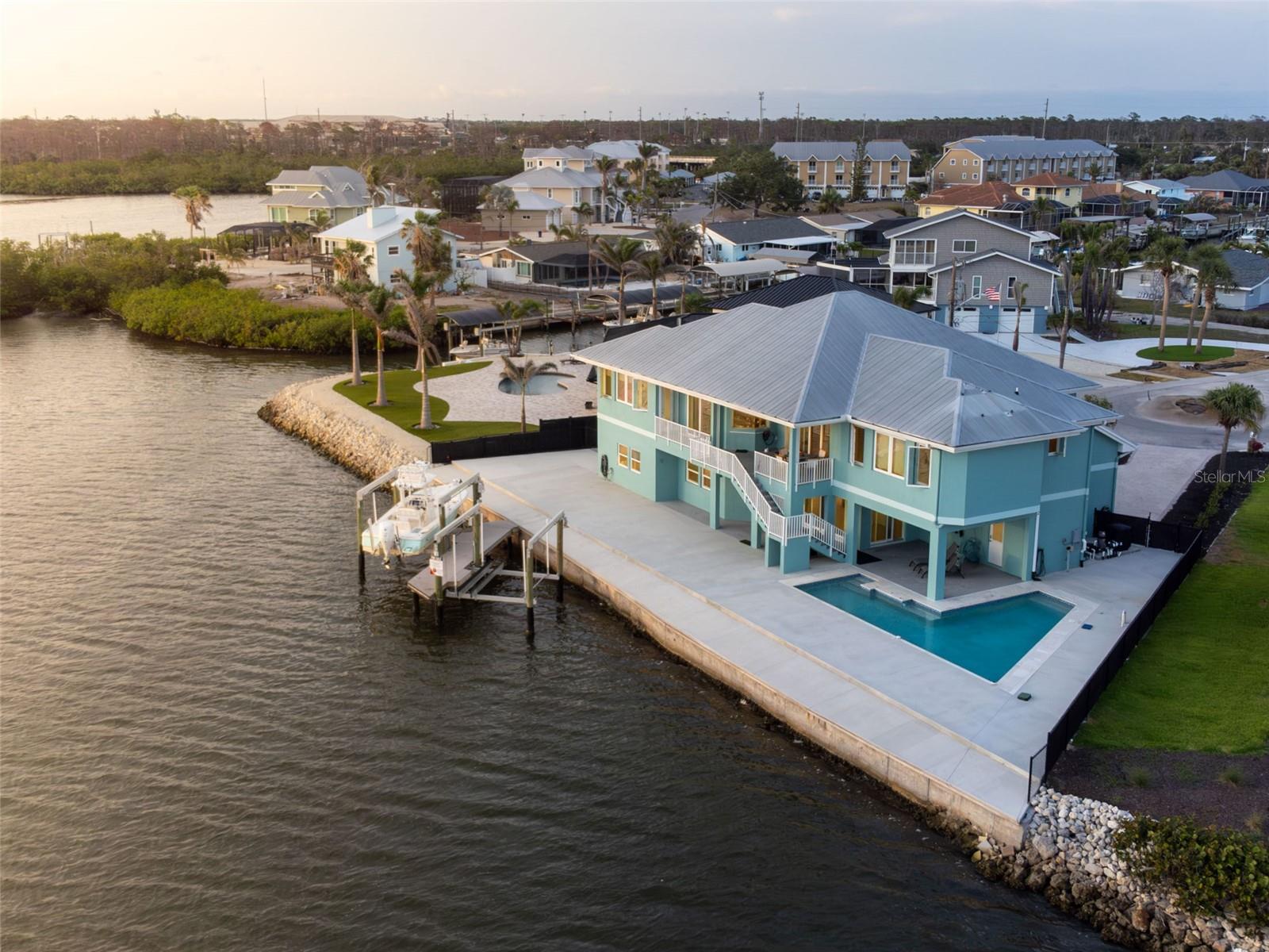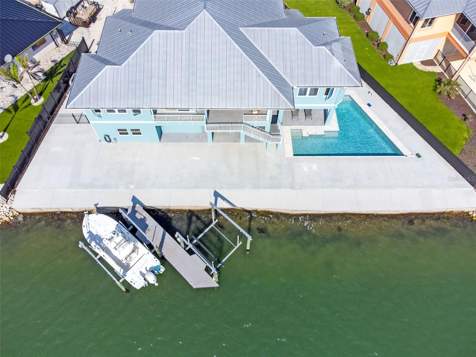 This exceptional WATERFRONT home isn't just a residence, it's a lifestyle crafted for those who live for the call of the OPEN WATER, who appreciate the beauty of the coastal landscape, and who demand uncompromising luxury. Just a few minutes by boat and less than 4 miles to the beautiful sandy beaches! Your boating adventures begin here. Imagine a life where the shimmering expanse of the INTRACOASTAL Waterway is your constant companion, where the day begins with breathtaking sunrises painting the sky and ends with fiery sunsets reflecting on the water. Pull into your circular driveway and note the thoughtful addition of a dedicated parking pad, perfect for your boat trailer or RV. Crafted with a durable METAL ROOF and ROBUST custom concrete construction, this residence boasts HURRICANE IMPACT WINDOWS AND DOORS! The centrally connected dual six-car garage, complete with epoxy flooring and a workshop, offers ample space for your vehicles and hobbies. A convenient half bath, plumbed and ready for completion, offers direct access to the outdoor oasis. Step outside and discover your private paradise: an L-shaped, SALT WATER POOL installed in 2022 (also wired for a hot tub), beckoning for refreshing dips on warm Florida days. The fenced backyard provides a secure and serene environment. But the true allure lies beyond – 152 feet of concrete SEAWALL leading to your private boat dock, equipped with not one, but TWO BOAT LIFTS (13,000 lb and 10,000 lb capacities), ready to cradle your prized vessels. Imagine the ease of setting off for a day on the water whenever the mood strikes, AND within minutes of the Gulf via STUMP PASS. An expansive second-floor terrace, finished with epoxy flooring, offers an elevated vantage point to soak in the PANORAMIC Intracoastal VIEWS. Best of all, with no deed restrictions, your waterfront dreams are truly your own to command. Inside, discover a haven of refined elegance. Ascend via the staircase or utilize the convenience of a PRIVATE ELEVATOR. Throughout the home, 24” x 24” ceramic tile flooring flows seamlessly, accented by sophisticated marble window sills and smooth bullnose corners. Five-inch crown molding and baseboards add a touch of classic luxury, while casement windows adorned with UV shades bathe the interiors in natural light. The open-concept kitchen, living, and dining areas maximize the breathtaking water vistas. The kitchen features built-in stainless steel appliances, solid wood cabinets, and elegant quartz countertops. The dining room, with its tray ceilings and zero-edge glass window framing the water, is perfect for elegant gatherings. Sliding glass doors also lead to the terrace, extending your entertaining space. The well-appointed utility room features a free-standing freezer, a walk-in food pantry, a laundry area with a stackable washer and dryer. Retreat to the primary bedroom suite, where WATER VIEWS greet you each morning. Built-in closets and a spacious walk-in closet offer ample storage, and a private door leads to the terrace. The second bedroom also boasts captivating water views, with its own access to the terrace. The adjacent second bathroom features granite countertops, recessed lighting, and a floor-to-ceiling tiled walk-in shower. The third bedroom guest suite offers privacy, with an en-suite bathroom. The fourth room, with its double pocket sliding doors, offers the flexibility to suit your needs. Don’t wait another day. Call today for your private showing!