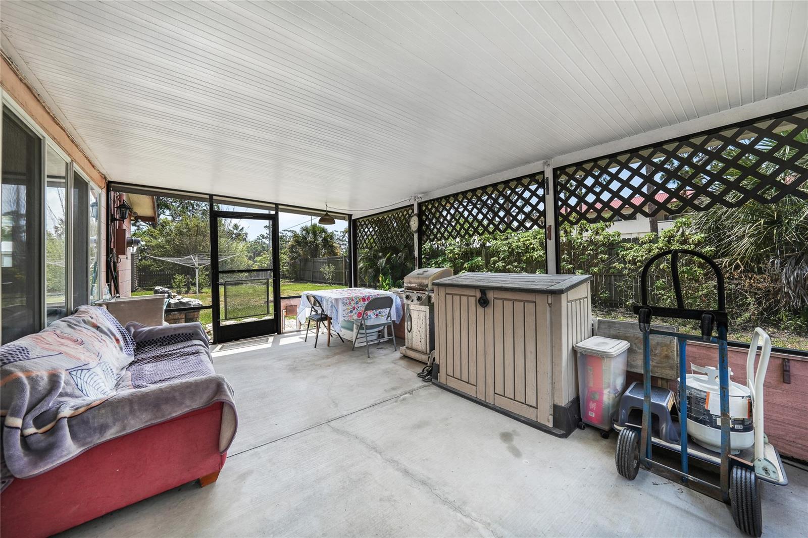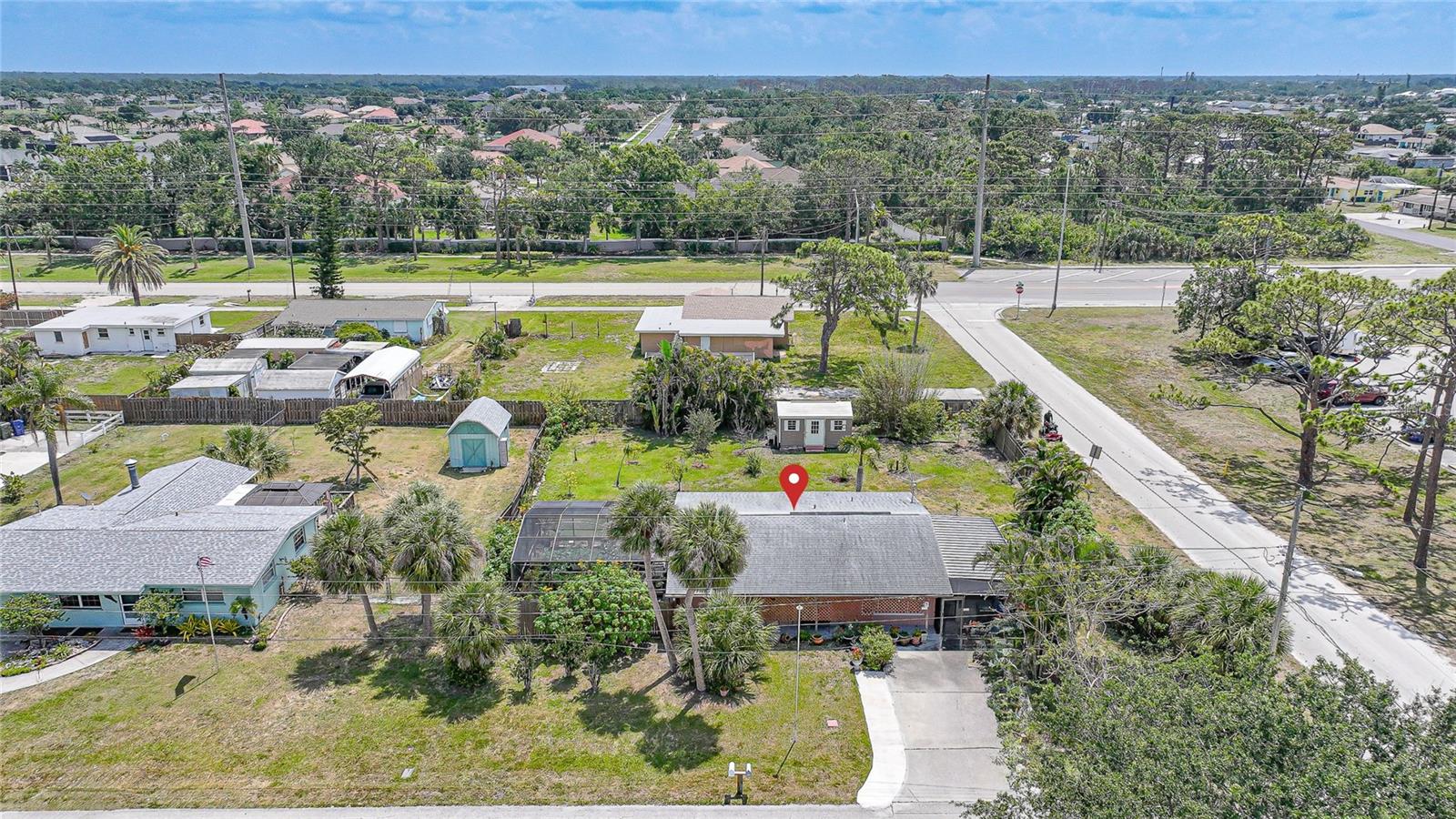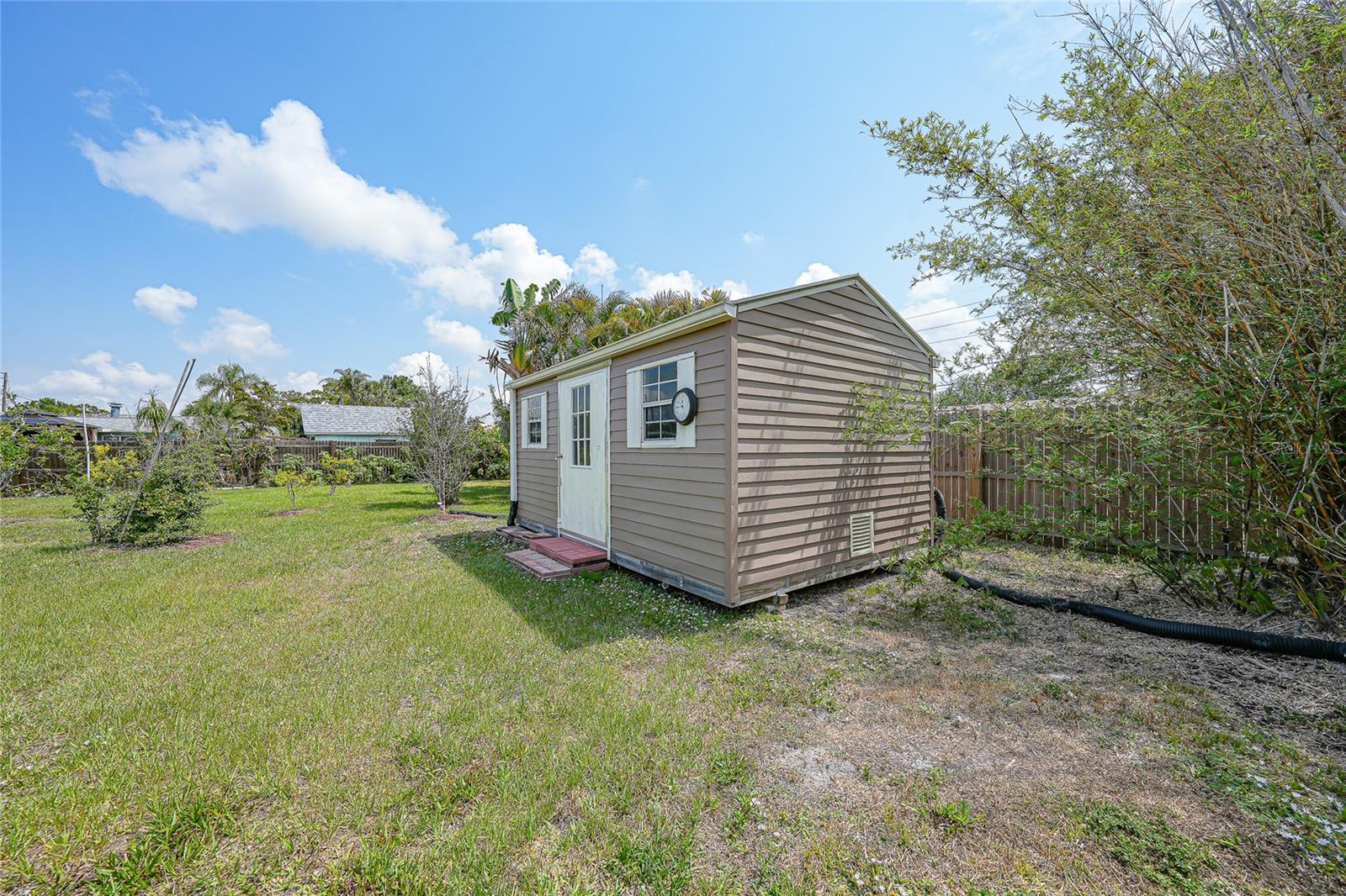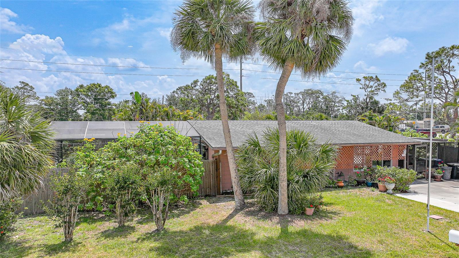Discover this charming 2-bedroom, 1-bathroom home situated on an oversized, fully fenced lot in the heart of Englewood. Featuring a spacious open floor plan with low-maintenance wood laminate flooring throughout (except the bathroom and laundry areas), this home offers comfort and style. Hurricane impact windows provide peace of mind, while the air-conditioned Florida Room adds year-round living space. Enjoy outdoor living with two screened-in lanais—one covered, the other nestled in a serene garden within a screened enclosure. A large backyard shed offers ample storage. Located just minutes from Englewood Beach, shopping, dining, Englewood Hospital, and local medical offices, this coastal retreat blends convenience and tranquility—perfect for full-time living or a vacation getaway.