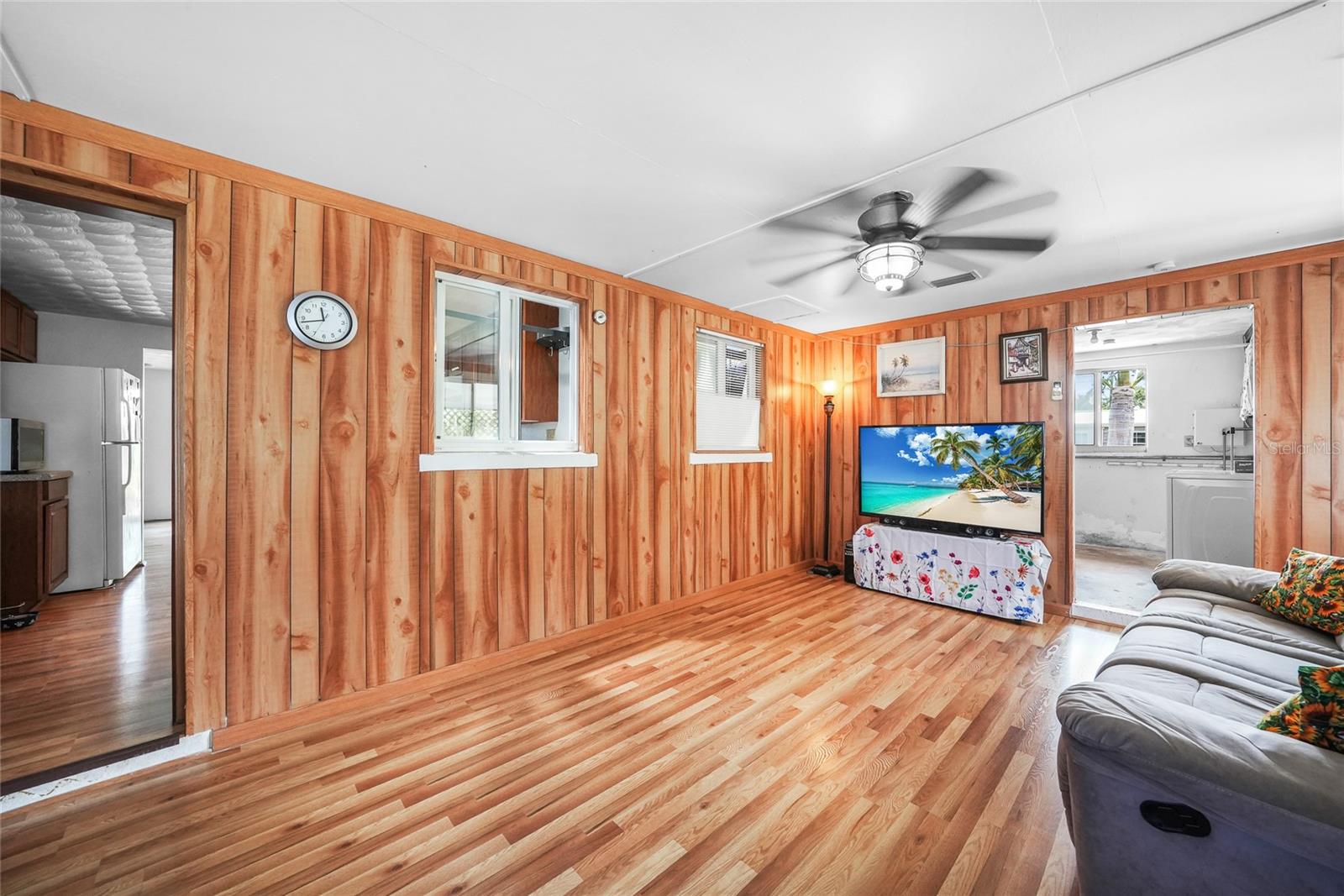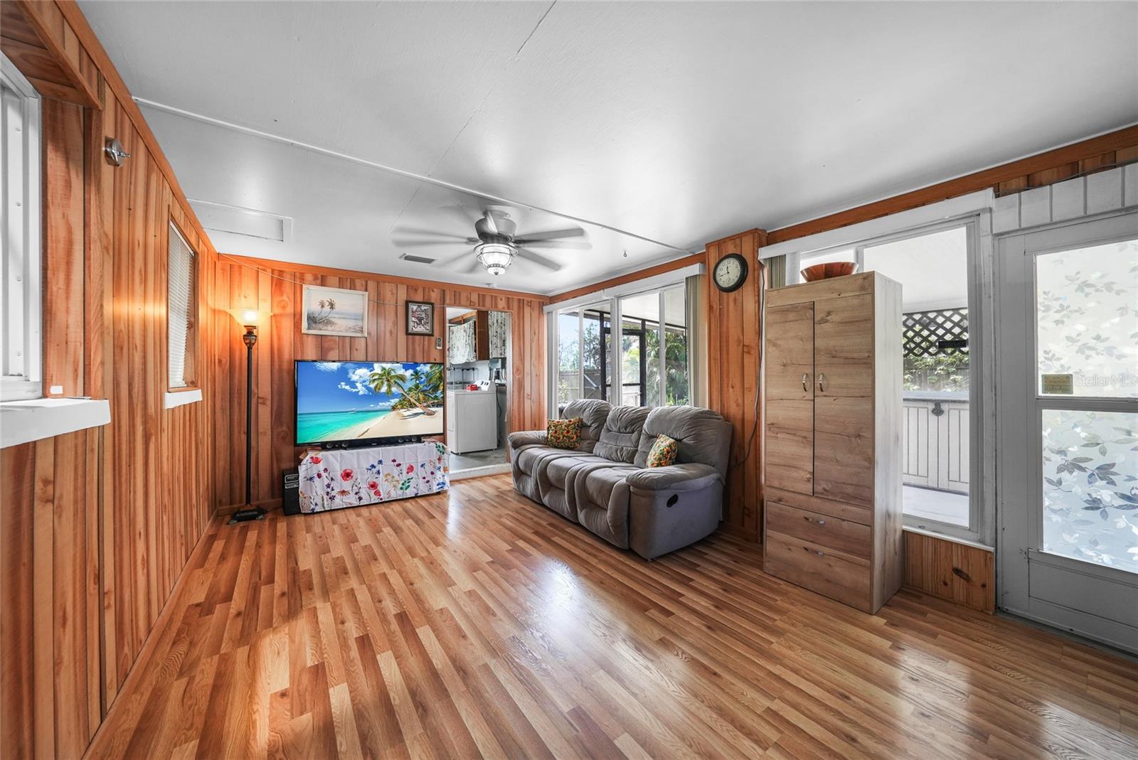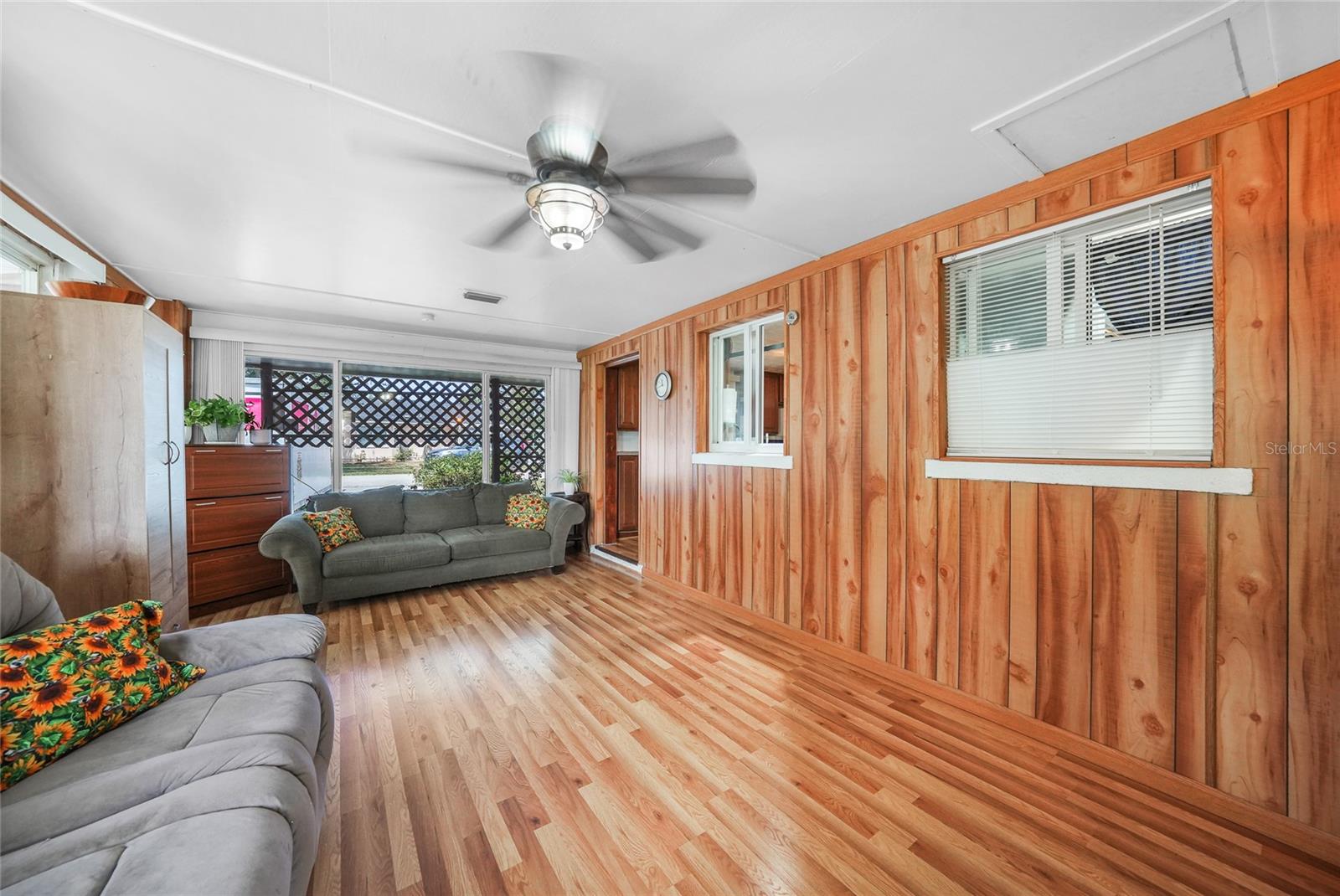 Discover this charming 2-bedroom, 1-bathroom home situated on an oversized, fully fenced lot in the heart of Englewood. Featuring a spacious open floor plan with low-maintenance wood laminate flooring throughout (except the bathroom and laundry areas), this home offers comfort and style. Hurricane impact windows provide peace of mind, while the air-conditioned Florida Room adds year-round living space. Enjoy outdoor living with two screened-in lanais—one covered, the other nestled in a serene garden within a screened enclosure. A large backyard shed offers ample storage. Located just minutes from Englewood Beach, shopping, dining, Englewood Hospital, and local medical offices, this coastal retreat blends convenience and tranquility—perfect for full-time living or a vacation getaway.
