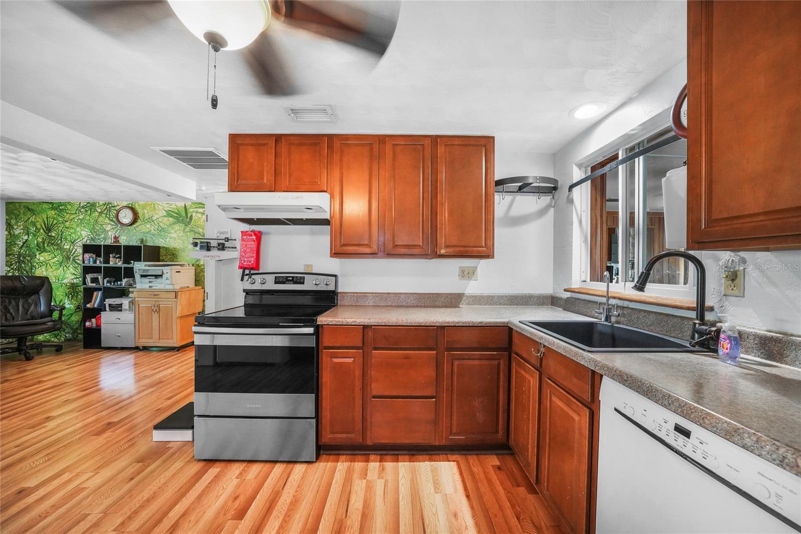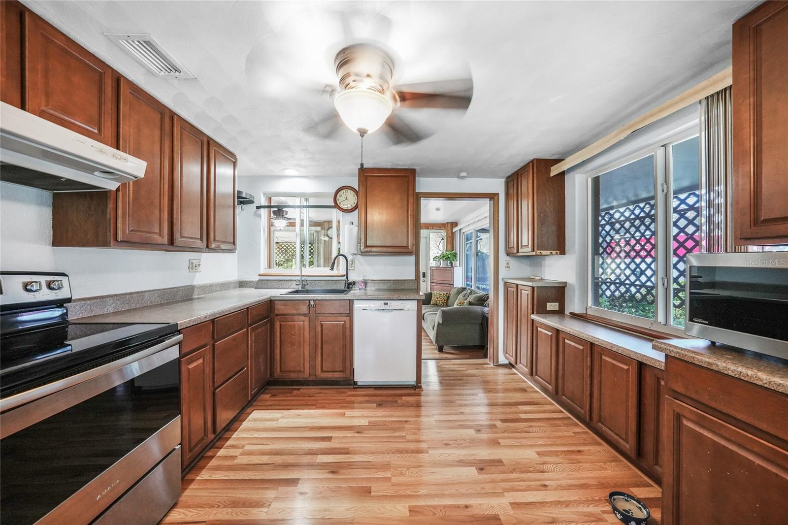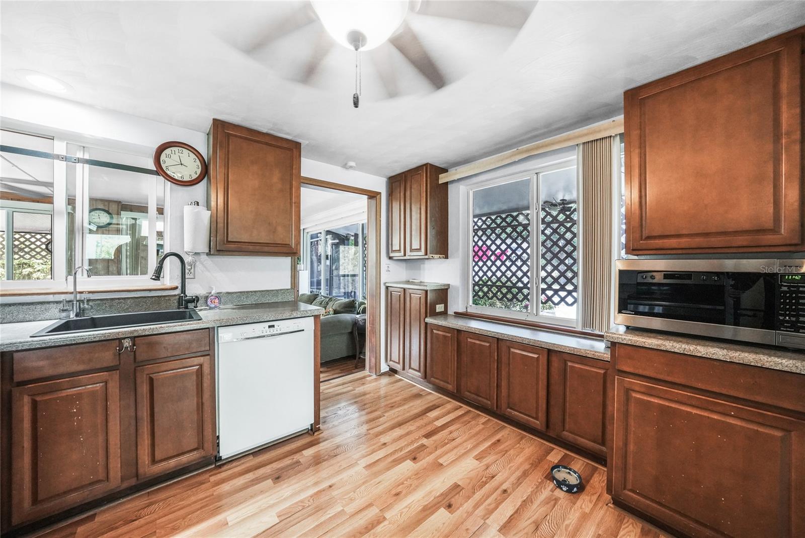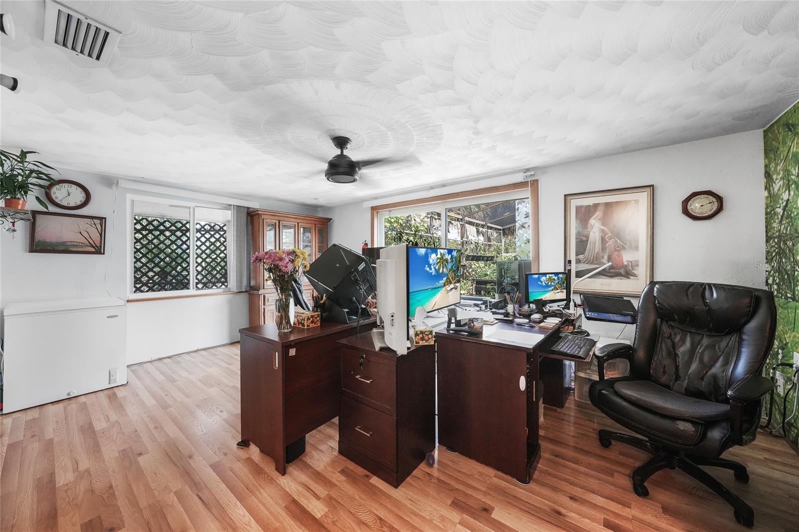 Discover this charming 2-bedroom, 1-bathroom home situated on an oversized, fully fenced lot in the heart of Englewood. Featuring a spacious open floor plan with low-maintenance wood laminate flooring throughout (except the bathroom and laundry areas), this home offers comfort and style. Hurricane impact windows provide peace of mind, while the air-conditioned Florida Room adds year-round living space. Enjoy outdoor living with two screened-in lanais—one covered, the other nestled in a serene garden within a screened enclosure. A large backyard shed offers ample storage. Located just minutes from Englewood Beach, shopping, dining, Englewood Hospital, and local medical offices, this coastal retreat blends convenience and tranquility—perfect for full-time living or a vacation getaway.