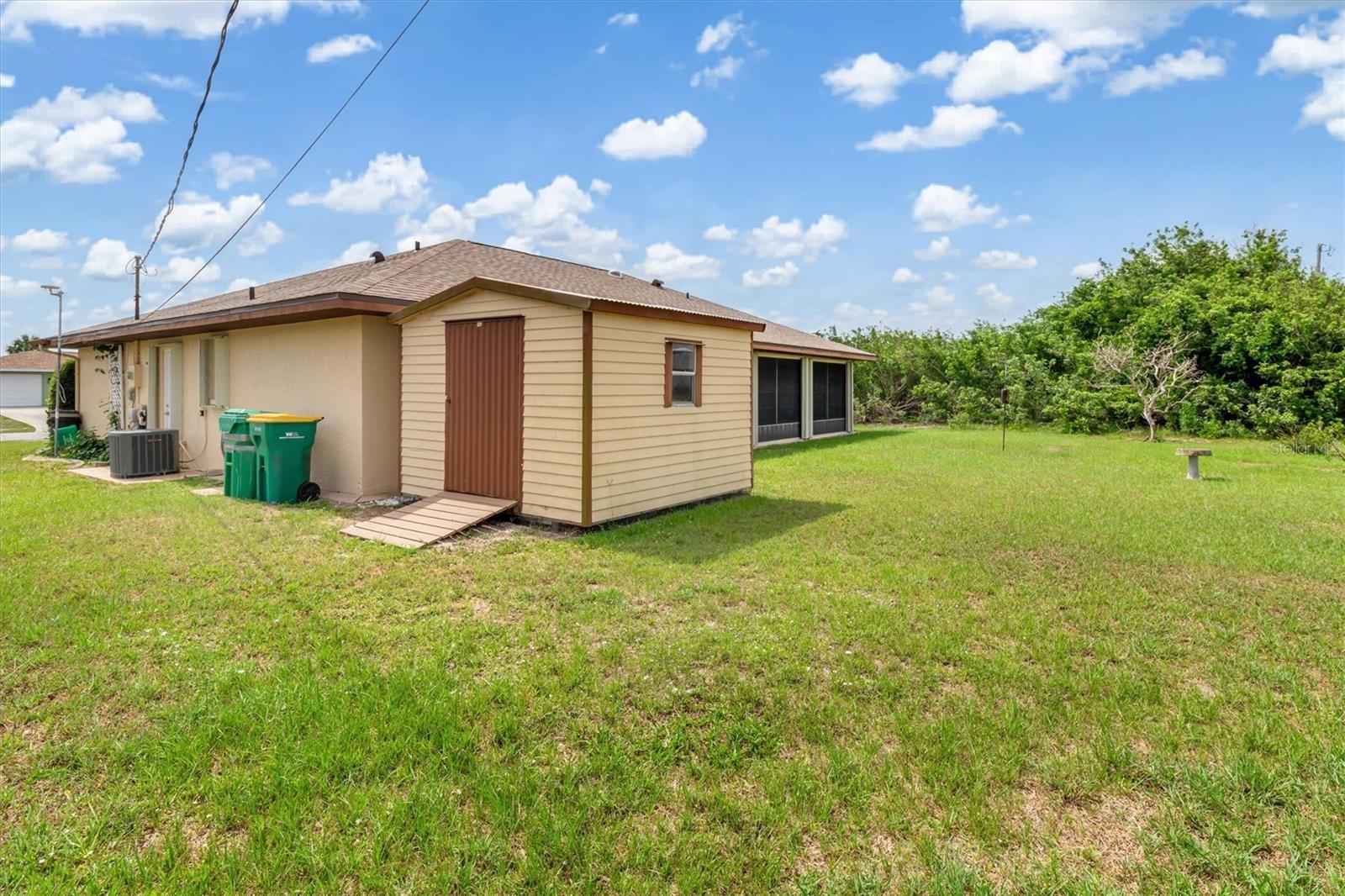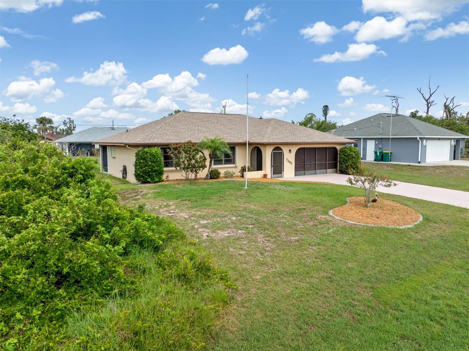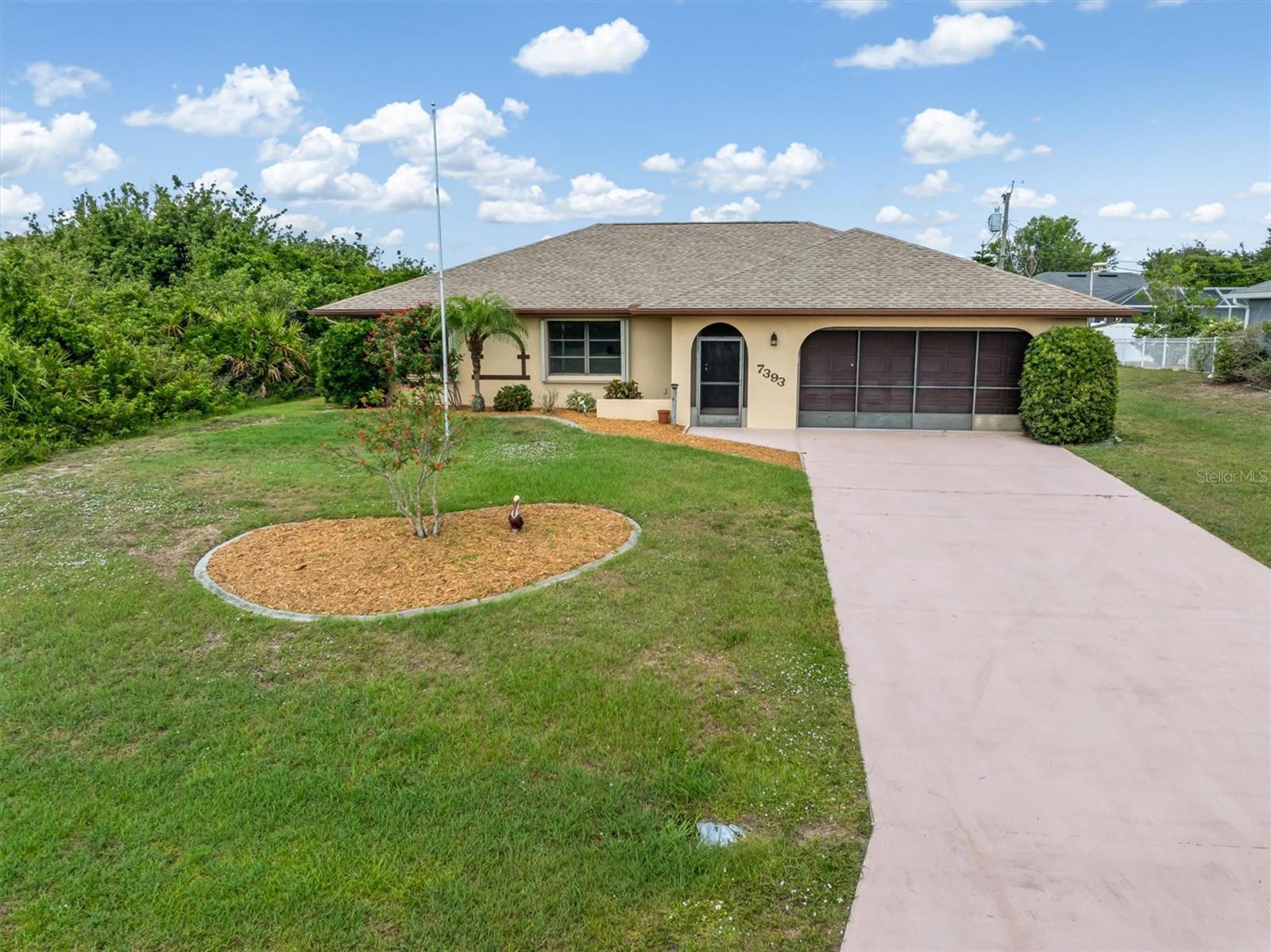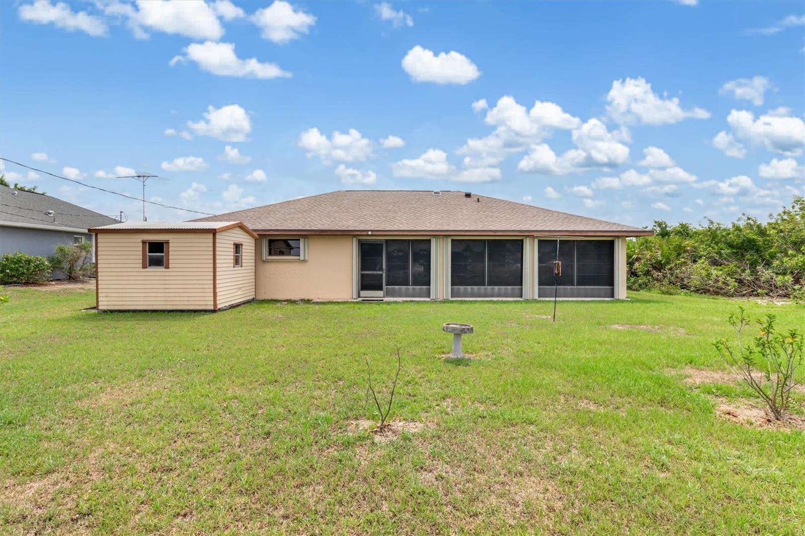 Under contract-accepting backup offers. This well-maintained 1987-built concrete block home has been lovingly cared for by its original owner, offering a solid foundation and timeless appeal. The split floor plan ensures privacy, while vaulted ceilings and a Florida room with air conditioning add to the home's spacious feel. Major updates include stainless steel kitchen appliances, a new roof installed in August 2023, a water heater replaced in 2018, and an air conditioning system upgraded in 2016. The property is situated in a quiet community within an "X" flood zone, offering low flood risk and no flood insurance requirement. Equipped with manual storm shutters, it's well-prepared for hurricane season. Additionally, the home features an irrigation system with its own well, providing cost-effective and chemical-free watering. This feature not only reduces water bills but also ensures a lush, healthy landscape year-round. Ideal as a starter or second home, this property combines affordability with Florida charm.